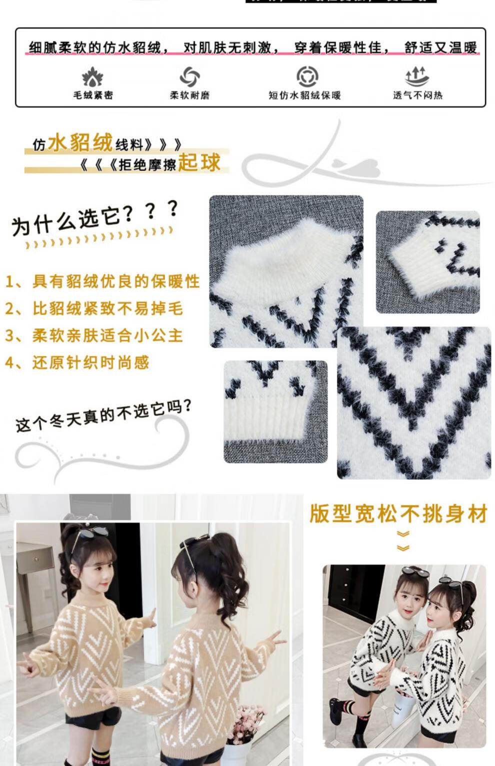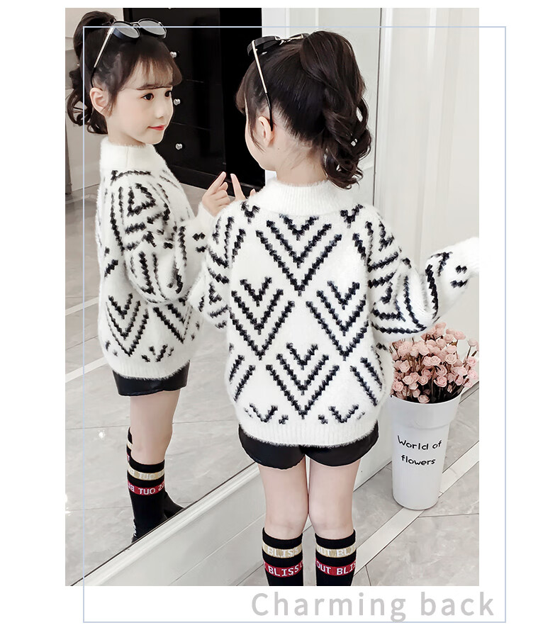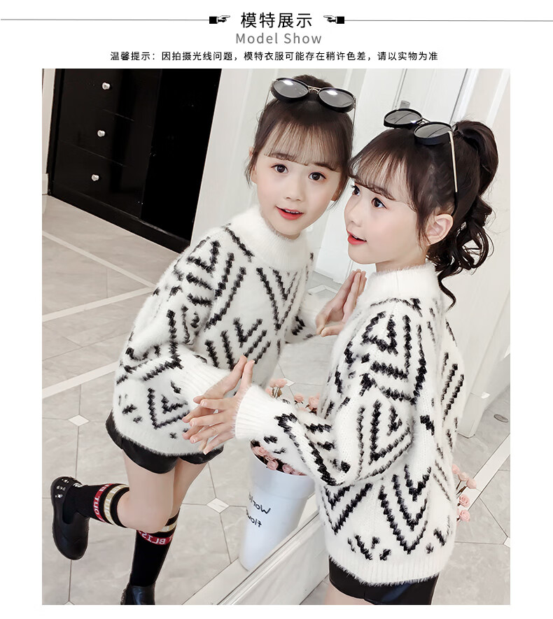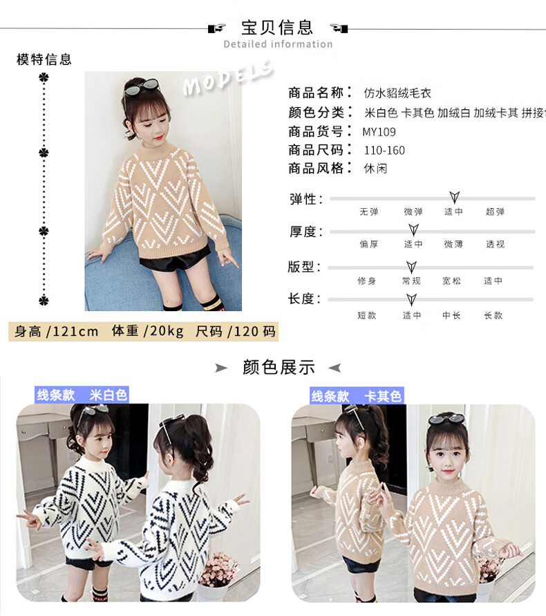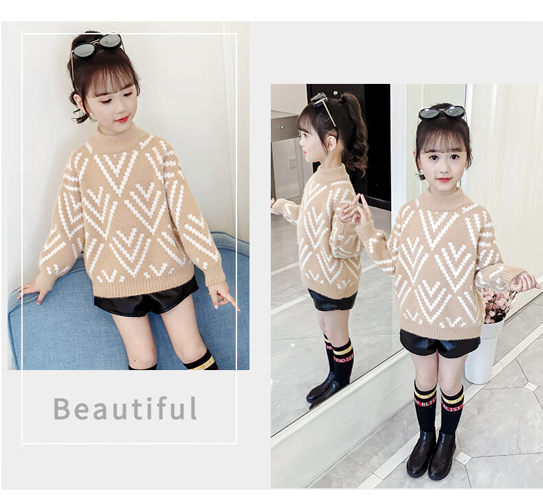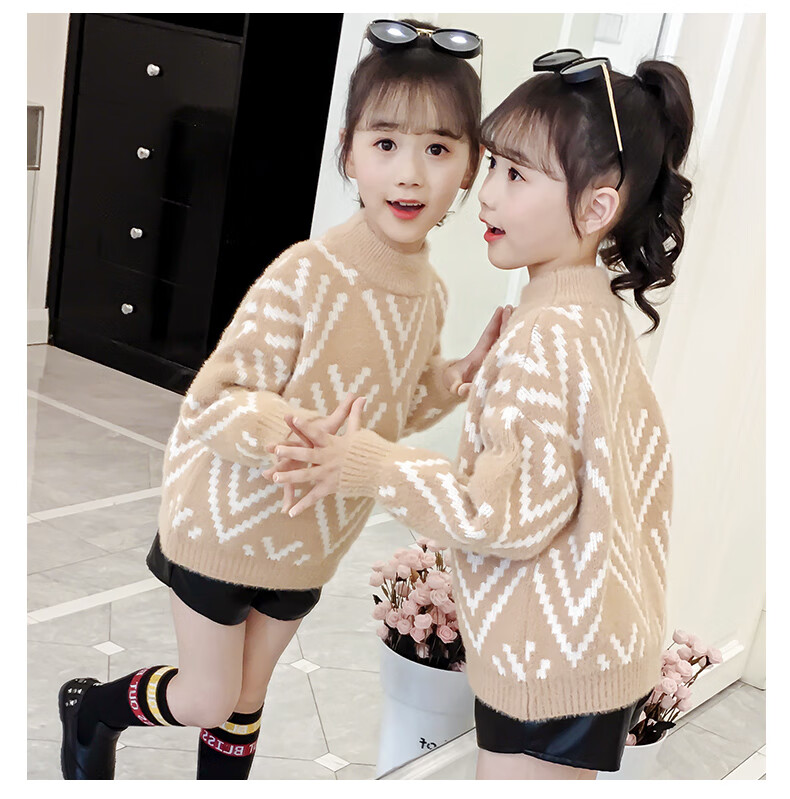 Jingkodi Japanese winter girls sweater 2025 new autumn and winter clothing, fashionable children's clothing, big children's winter plus off-white 110 cm