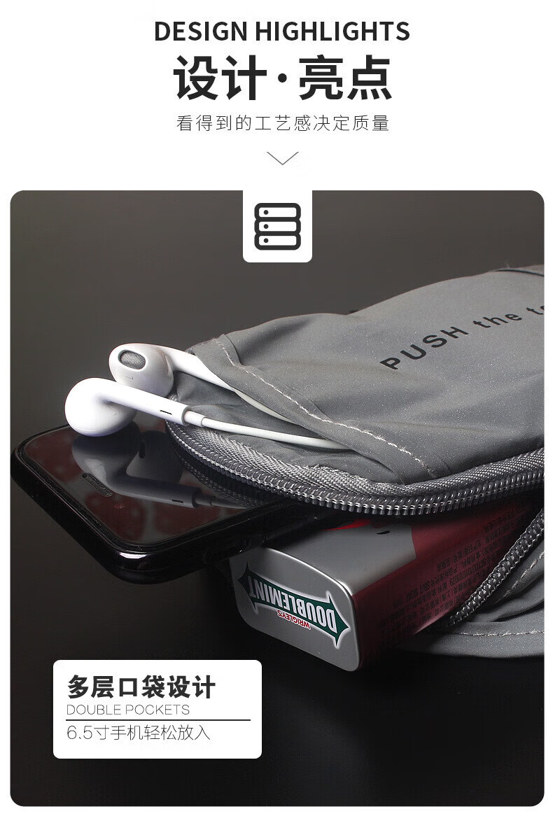 RU FENG Nufeng running mobile phone carrying artifact sports arm bag for mobile phone ultra-thin new outdoor wrist bag for men reflective black suitable for mobile phones within 6.5 inches