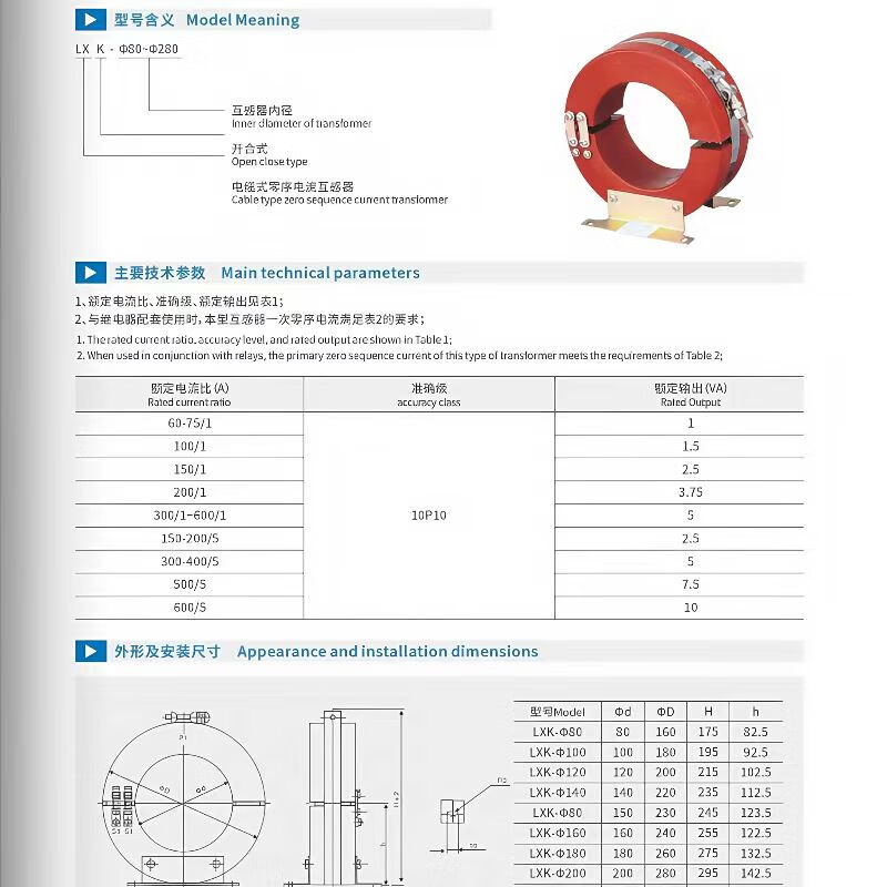 Zero sequence current transformer LXK-120 type open zero sequence transformer red 80mm