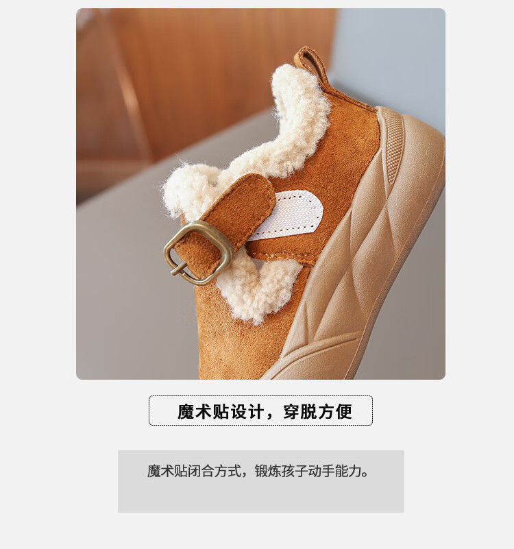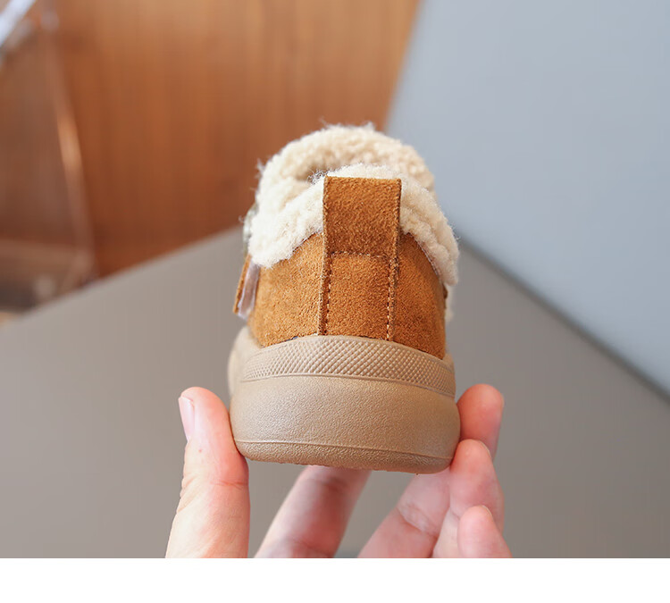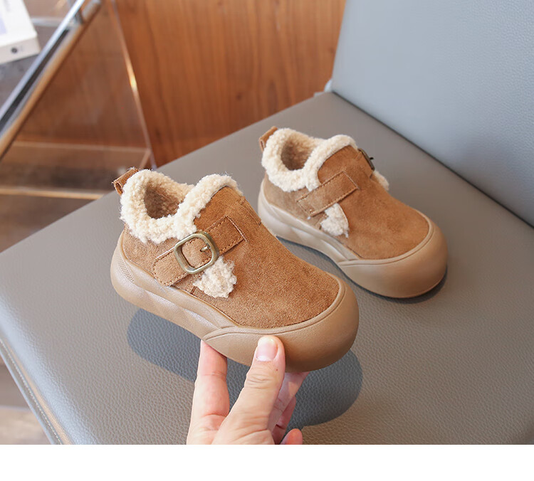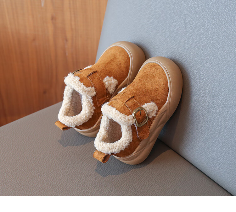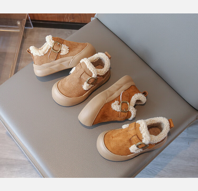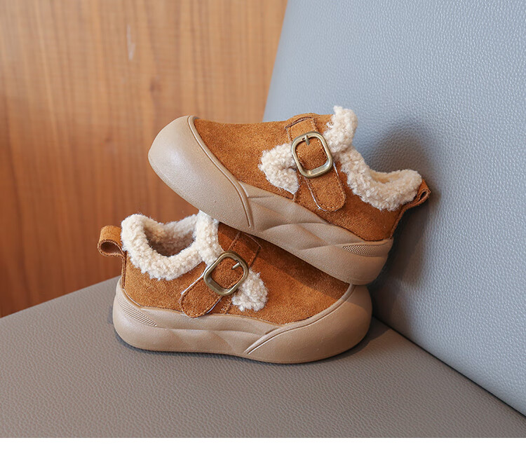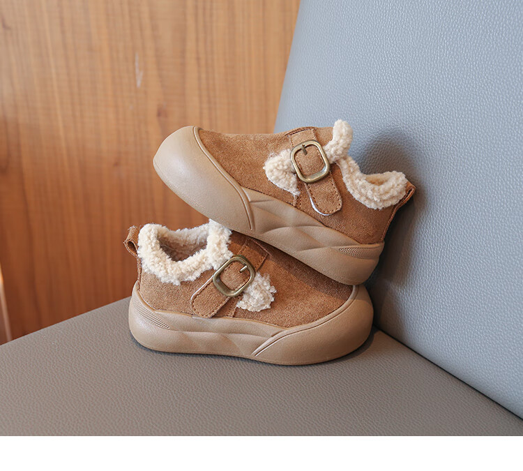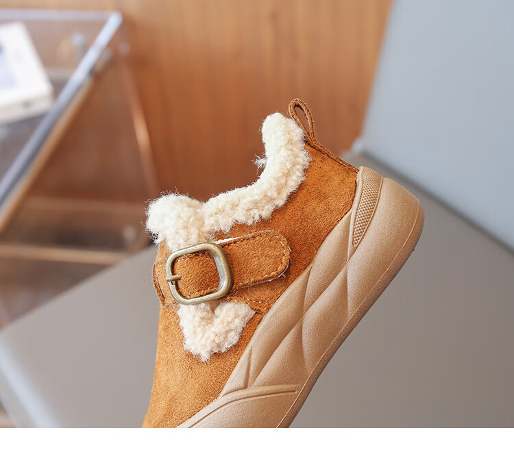 Ciyu Girls' Shoes Children's Cotton Shoes Snow Boots 2025 Winter New Plus Velvet Birkenstock Baby Furry Medium and Large Children's Shoes 935 Khaki 29 Inner Length About 17.9cm