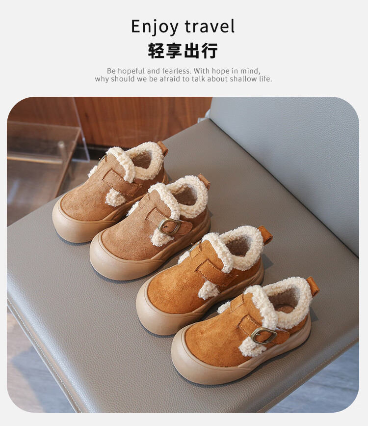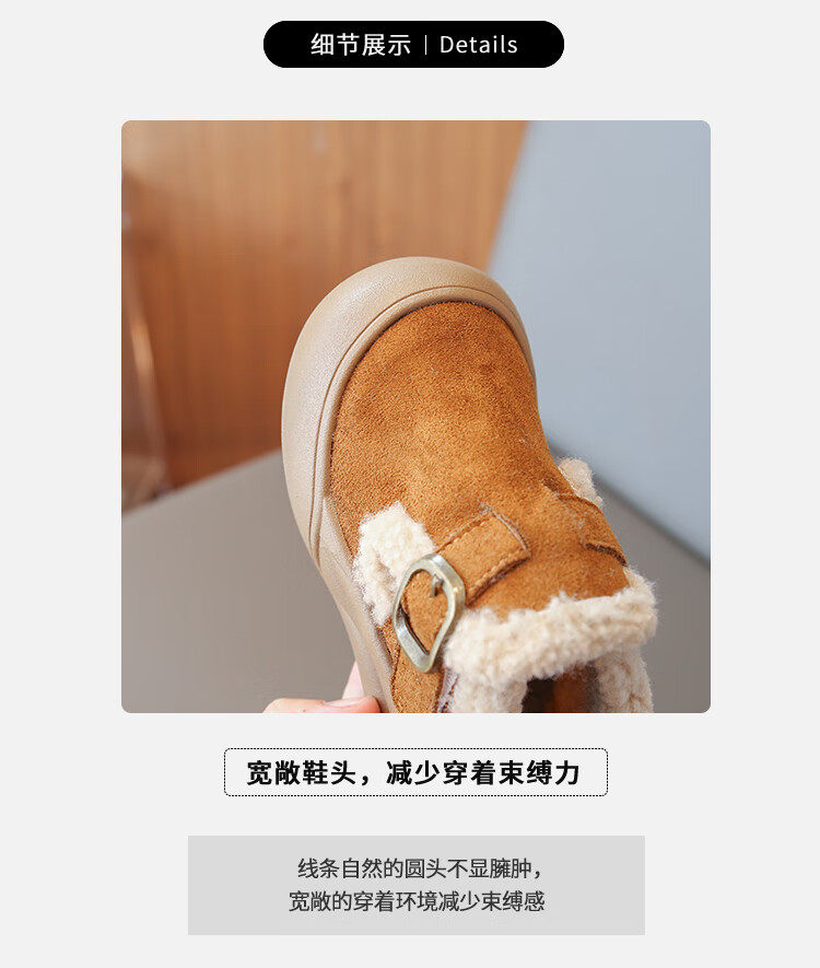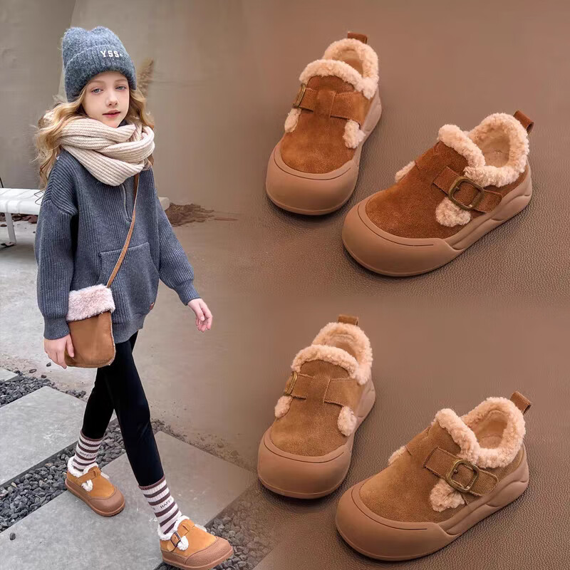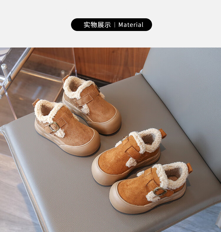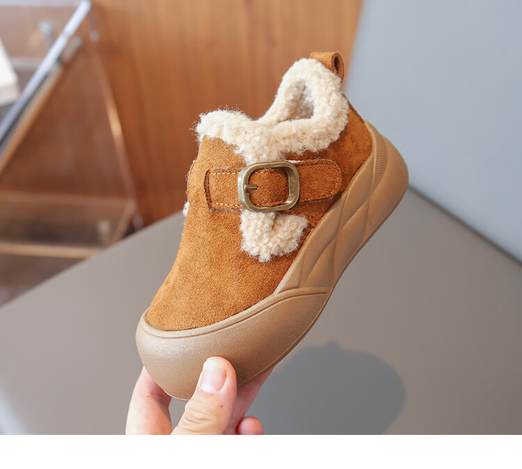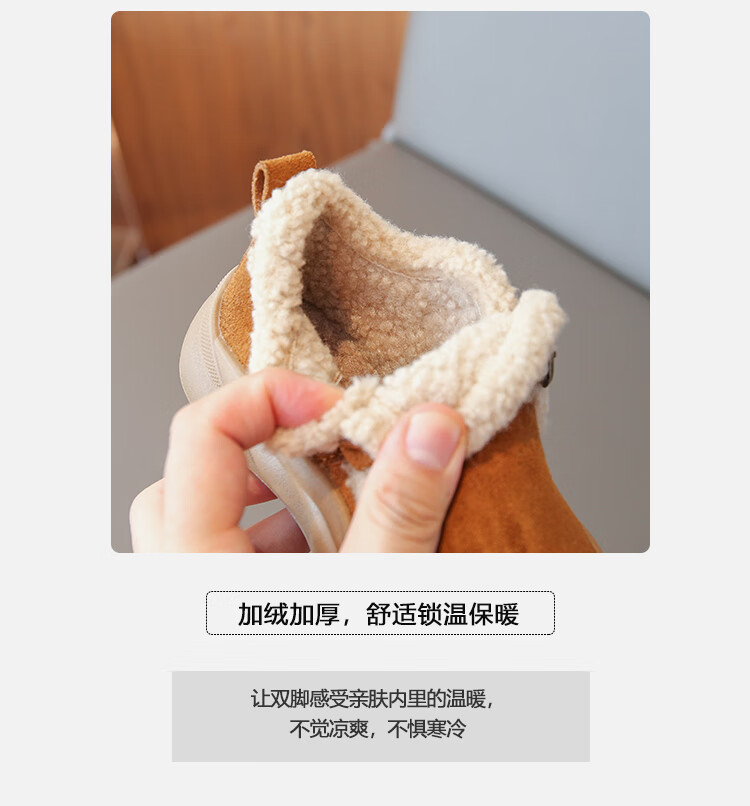 Ciyu Girls' Shoes Children's Cotton Shoes Snow Boots 2025 Winter New Plus Velvet Birkenstock Baby Furry Medium and Large Children's Shoes 935 Khaki 29 Inner Length About 17.9cm