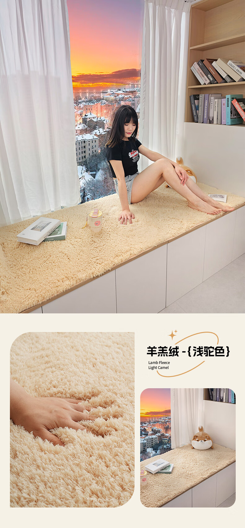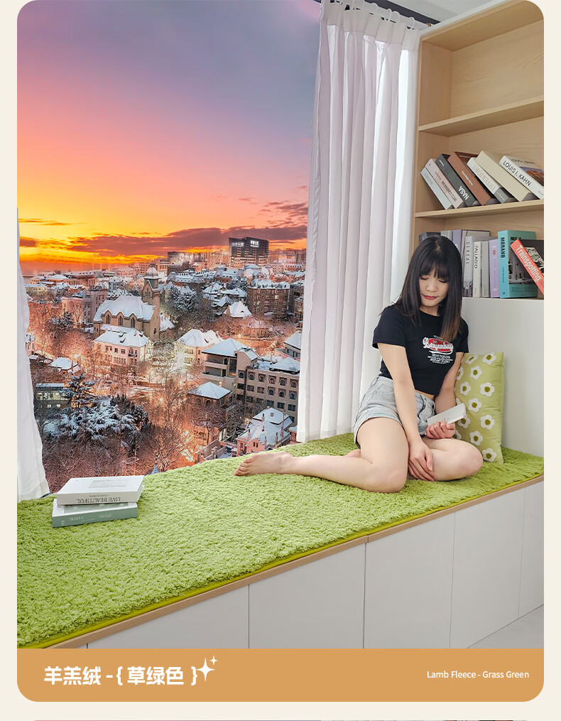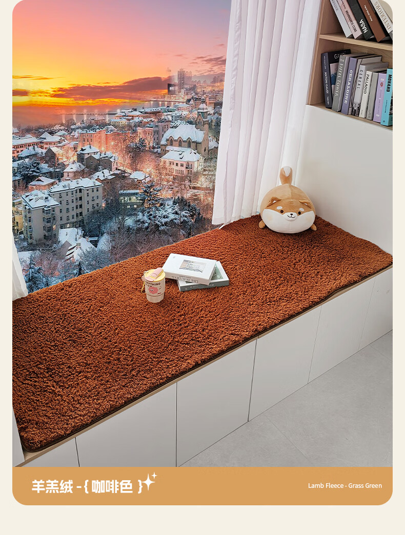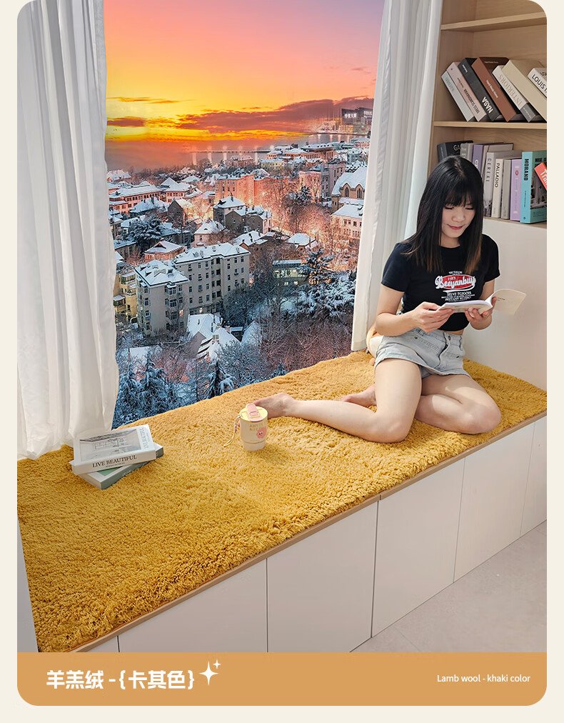 Yulu lambskin bedroom bay window mat living room balcony thickened plush window sill mat room decoration cushion non-slip customizable khaki color 60*160cm