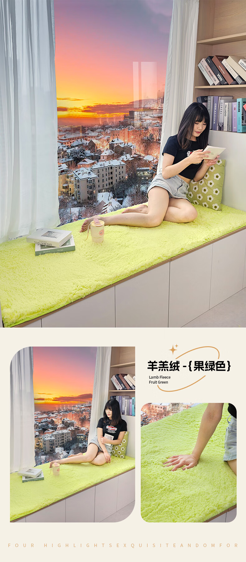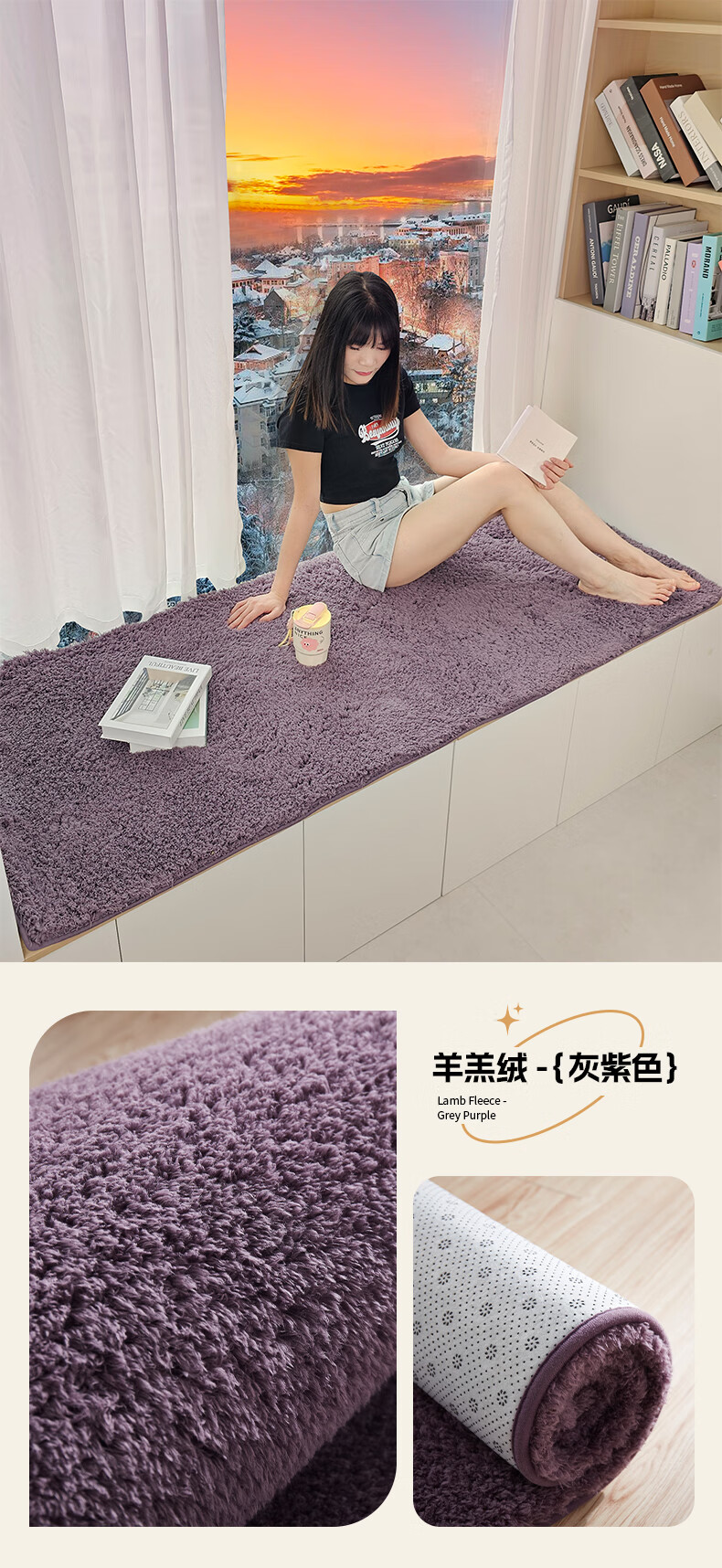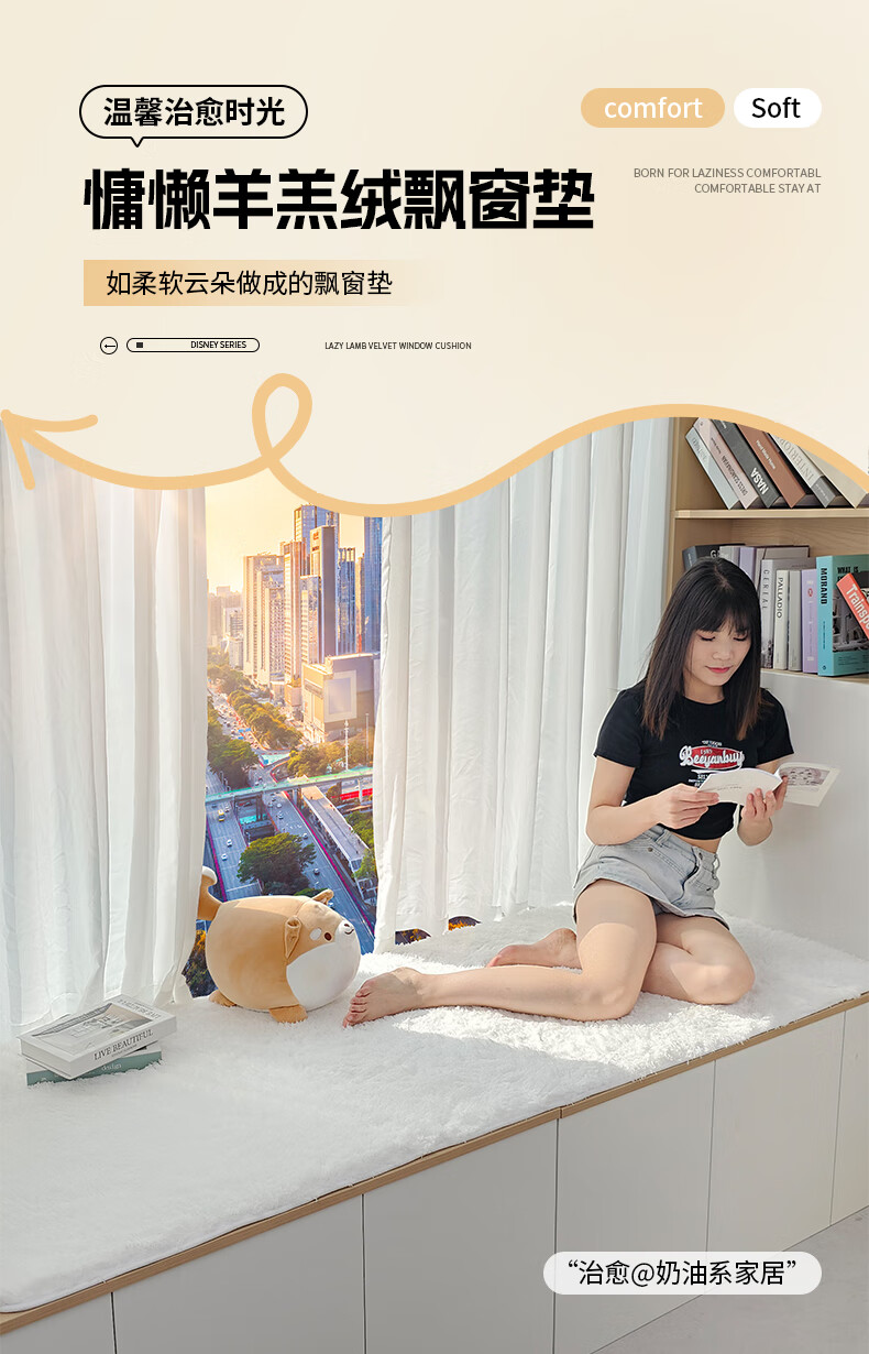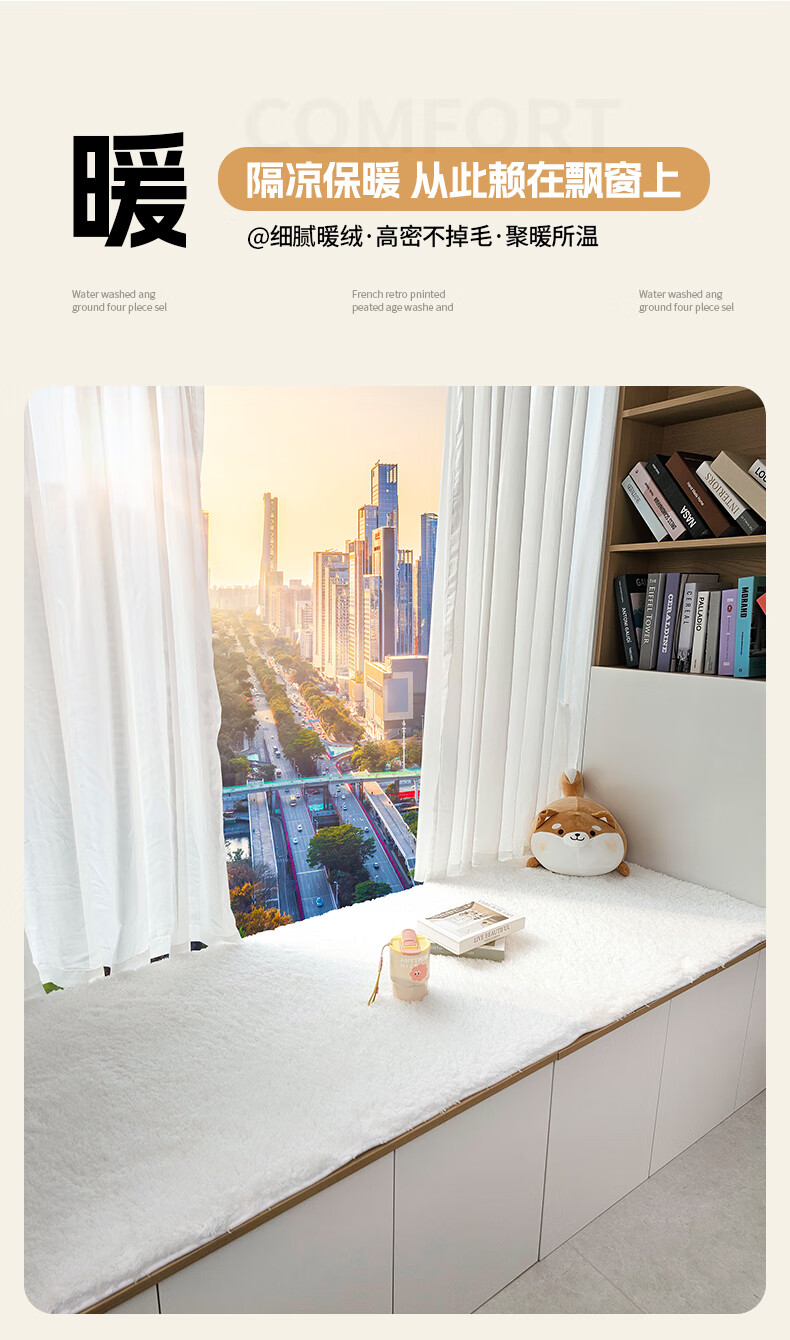 Yulu lambskin bedroom bay window mat living room balcony thickened plush window sill mat room decoration cushion non-slip customizable khaki color 60*160cm