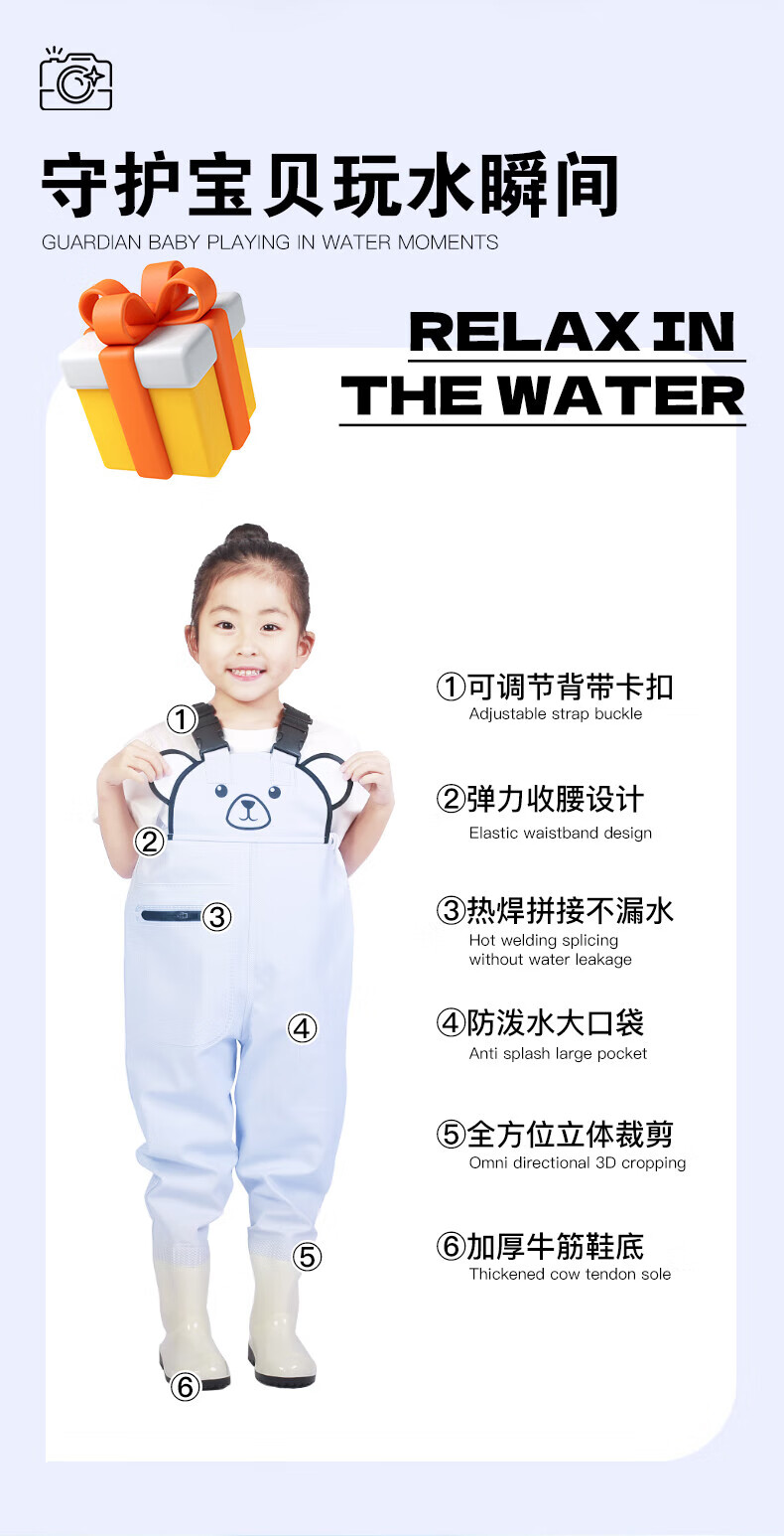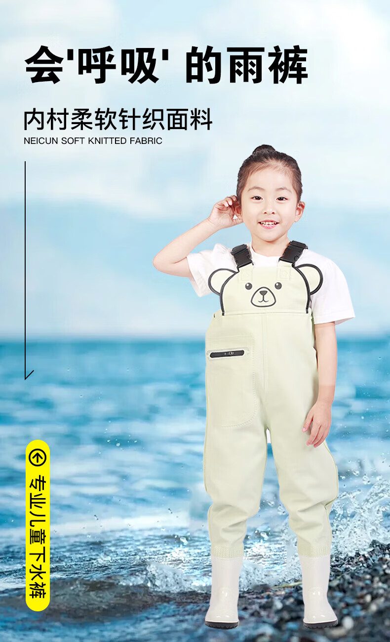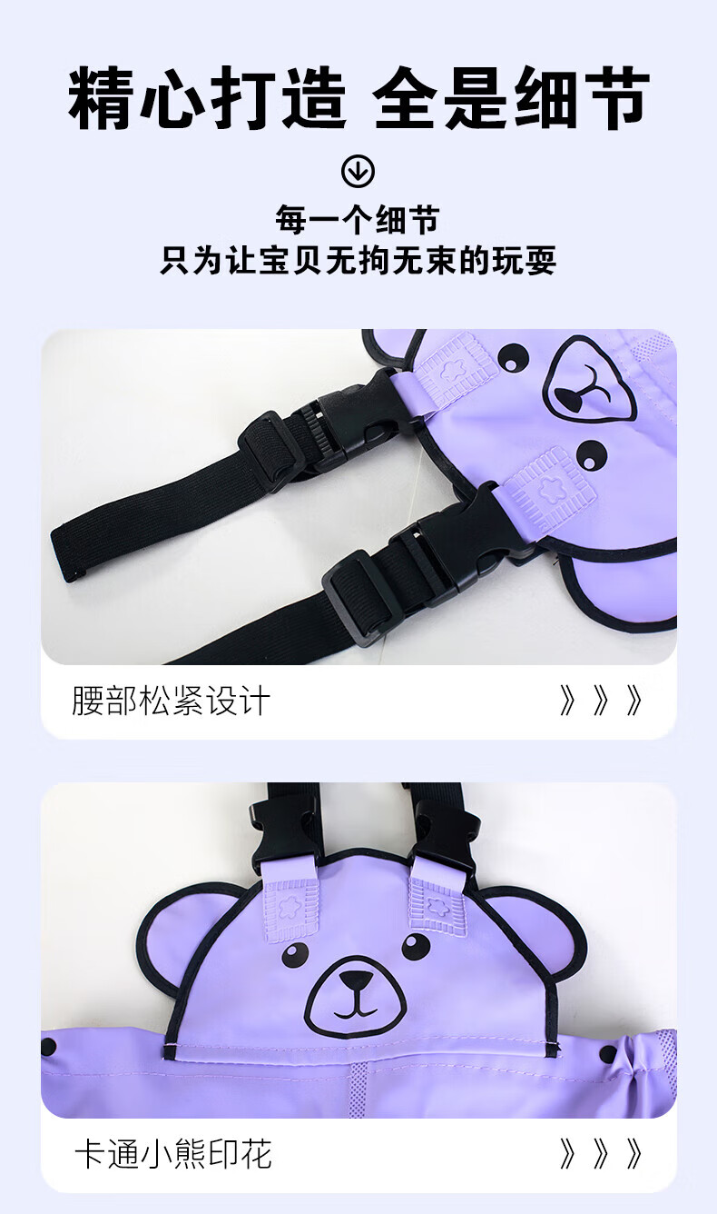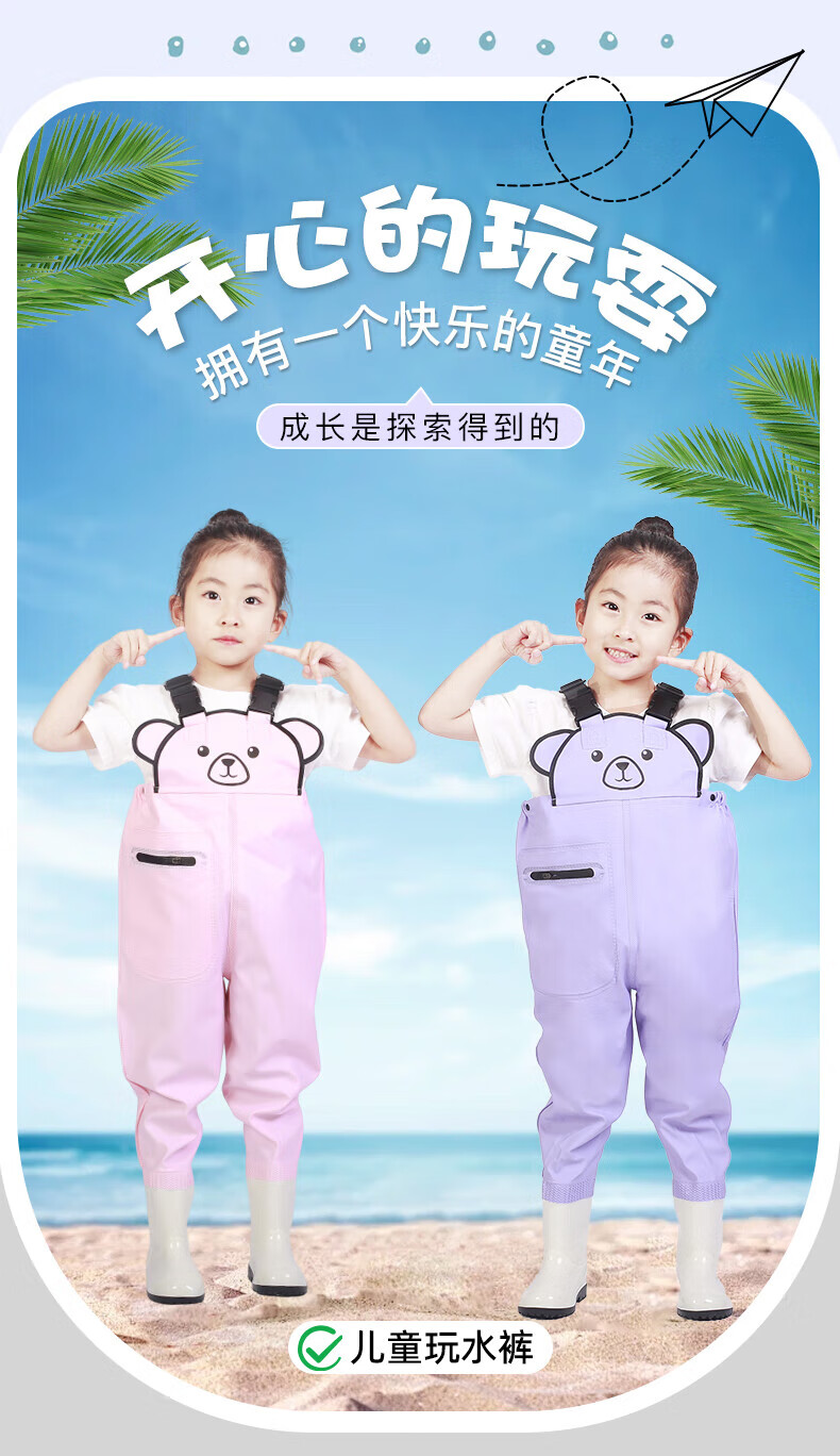 Lotto children's children's water play one-piece waders kindergarten beach equipment men's and women's half-length rain pants rain boots waterproof sand play pants children's cute bear overalls Sakura Pink 24