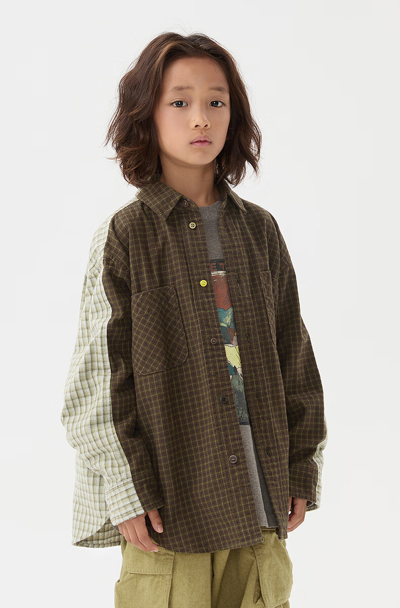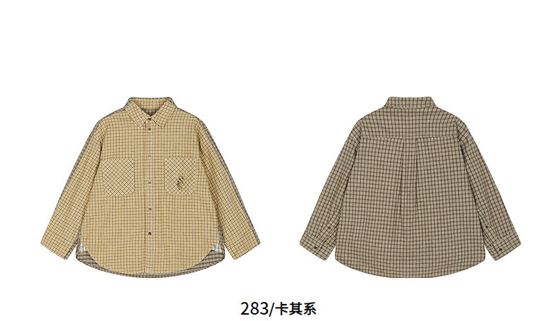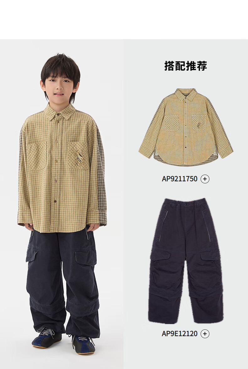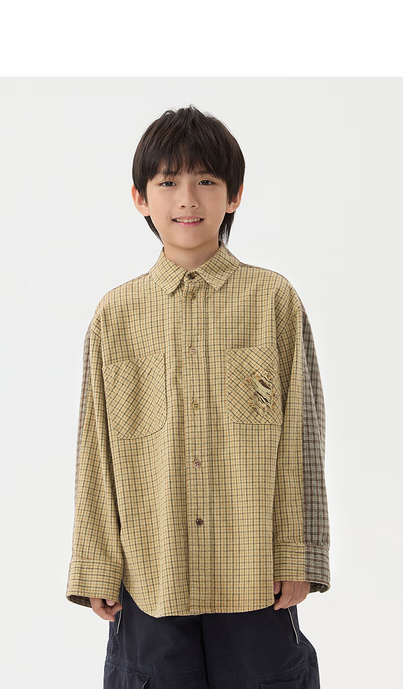 Pommedeterre new style Pengma big children's shirt cotton plaid splicing 25 autumn clothing for boys and girls AP9211750 283/khaki 130 cm