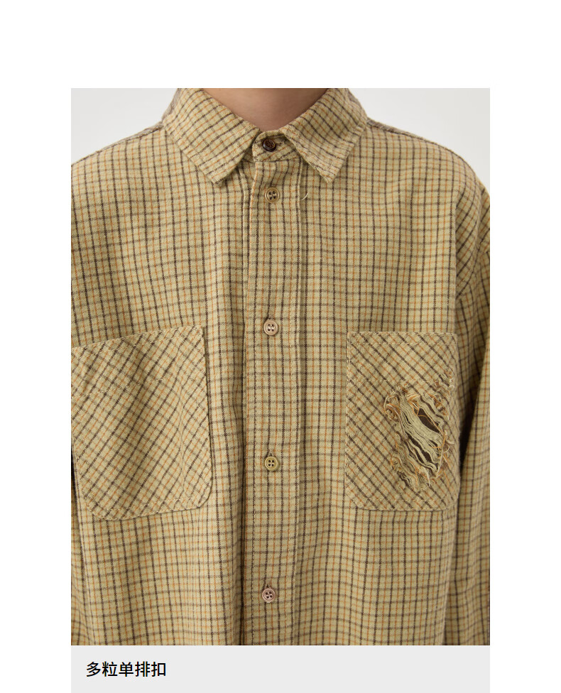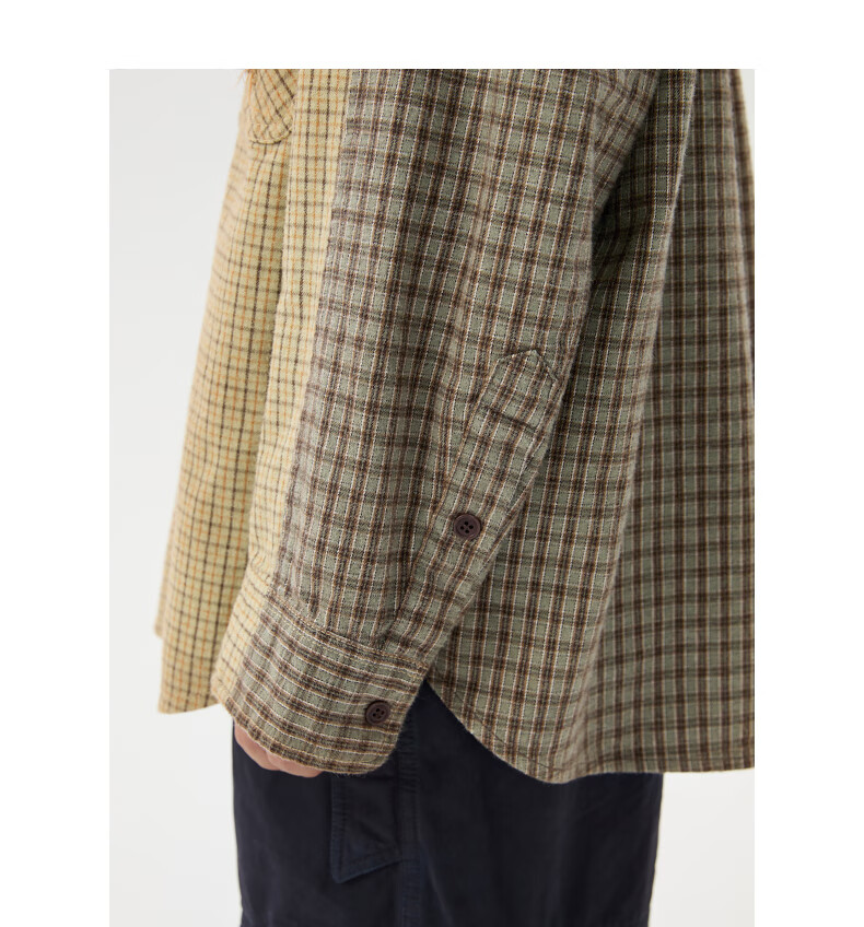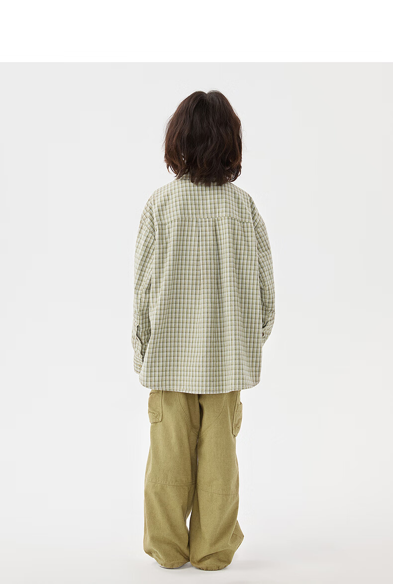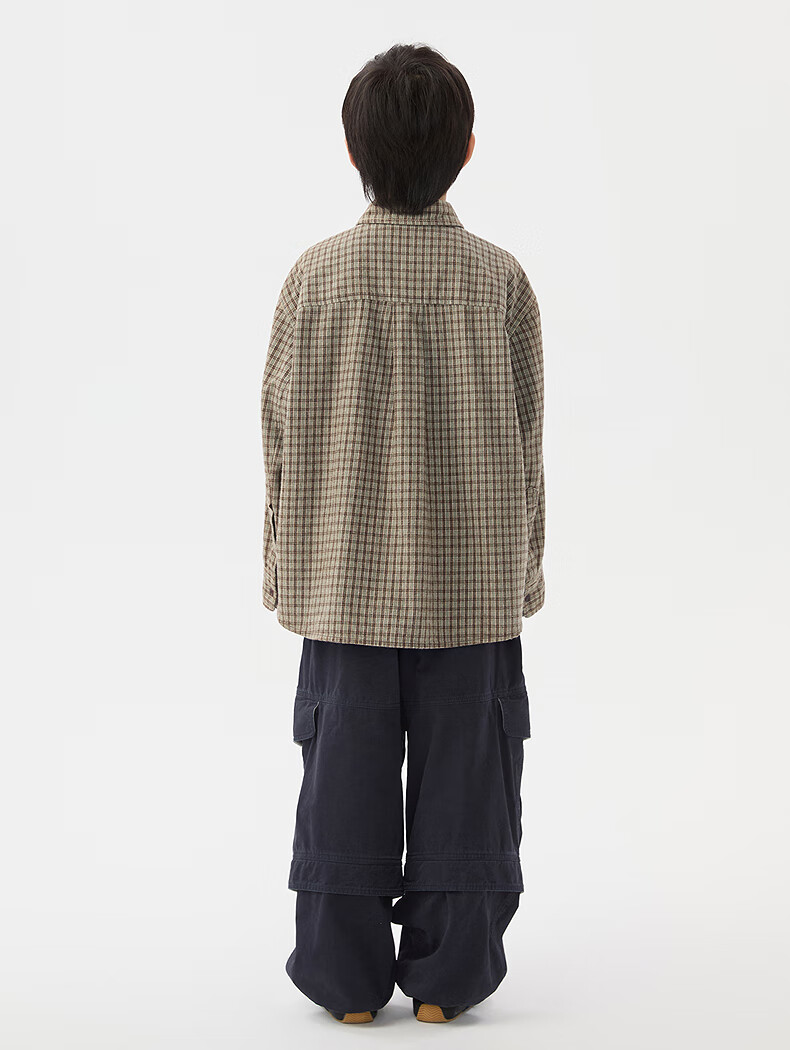 Pommedeterre new style Pengma big children's shirt cotton plaid splicing 25 autumn clothing for boys and girls AP9211750 283/khaki 130 cm