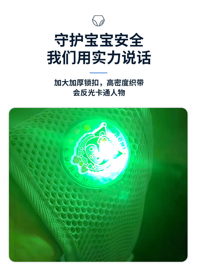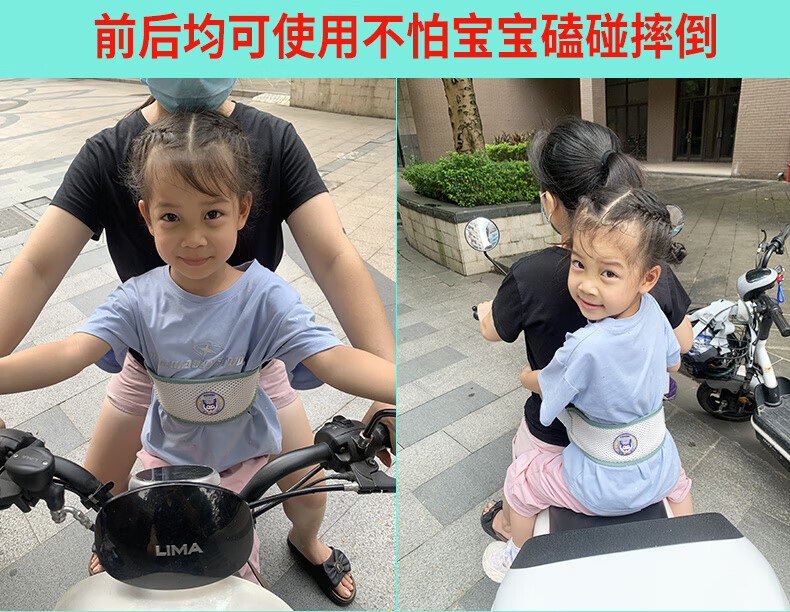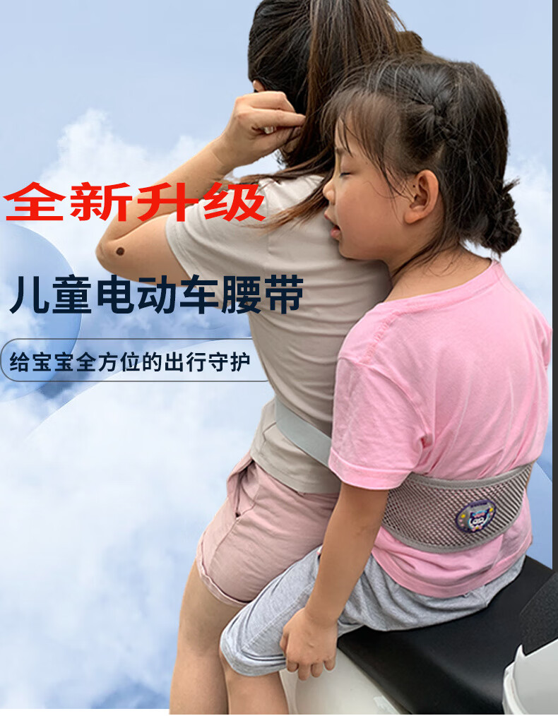 Zailu children's safety belt, men's and women's electric car belt, adjustable child straps, electric car baby anti-fall travel carrier, gray Kuromi flashing light upgraded version