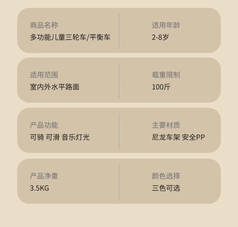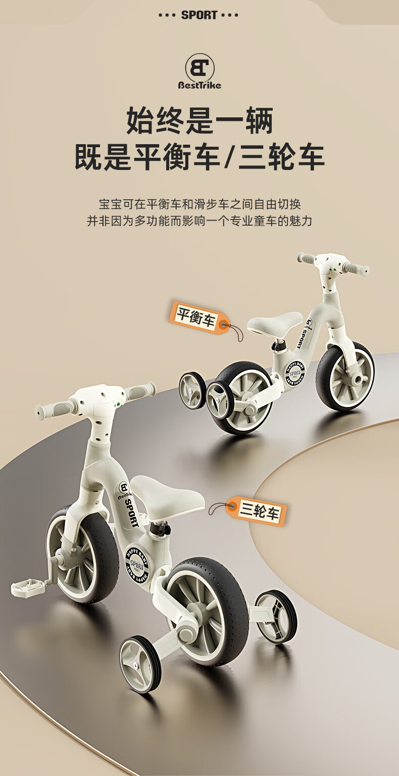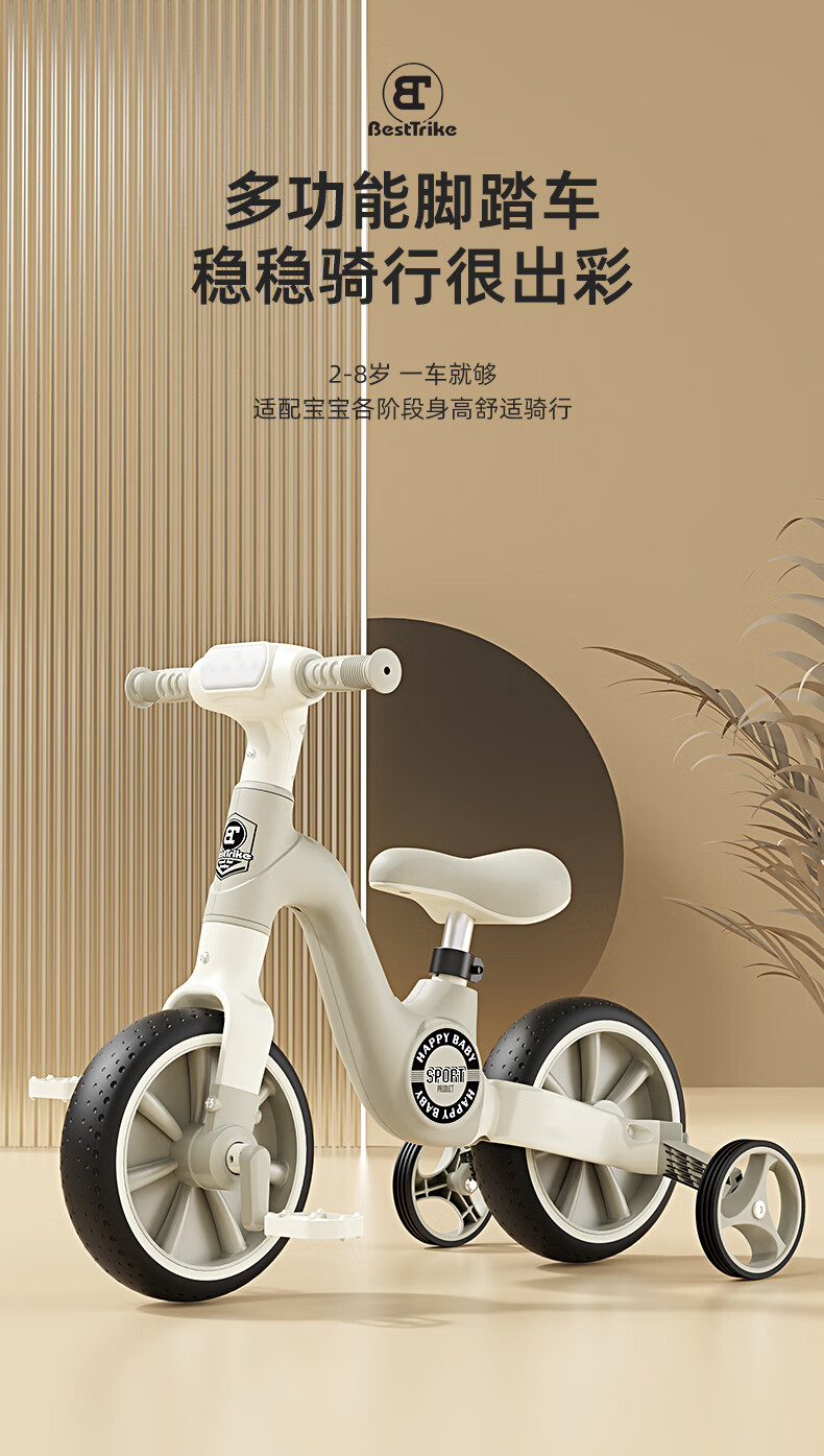 Children's balance car 2-6 years old boys and girls baby anti-rollover two-wheel sliding tricycle toy bicycle multi-functional balance car tricycle brown