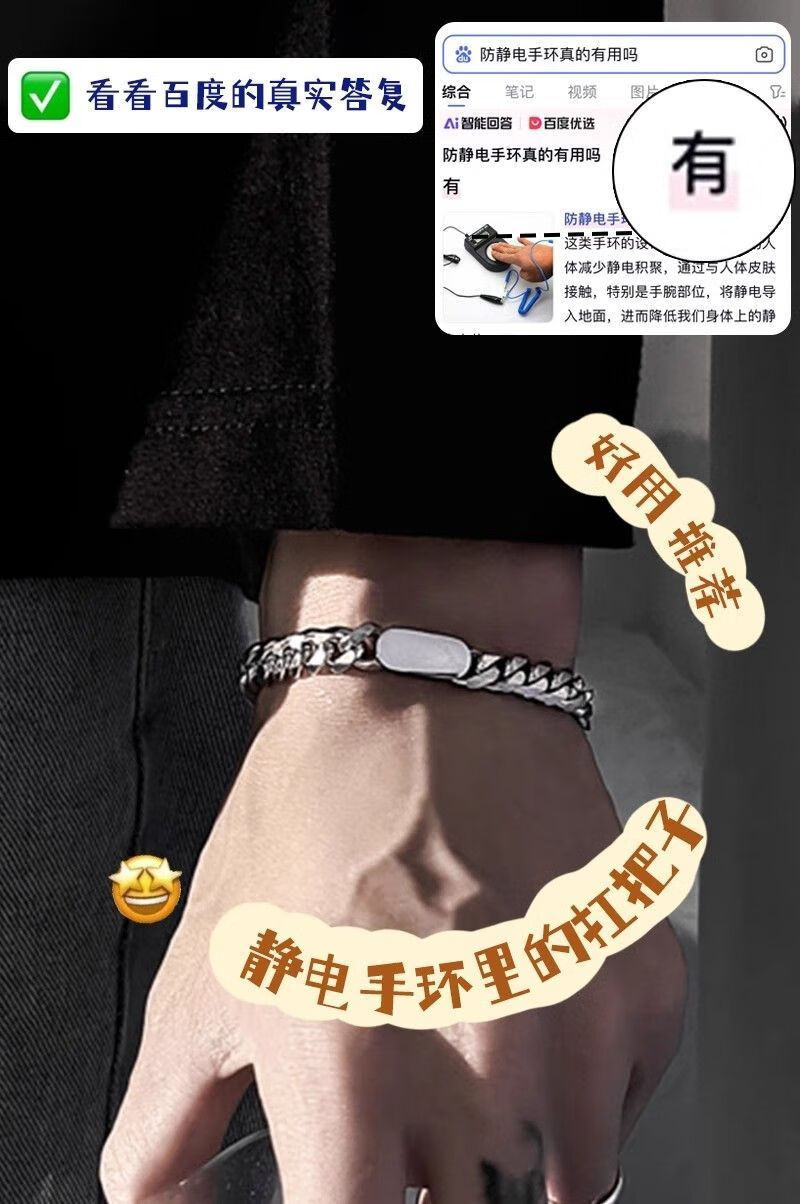 Yuan Japanese bracelet human body static eliminator wireless artifact bracelet men and women winter release device unisex/size adjustable/silver titanium steel bracelet (1 pack)