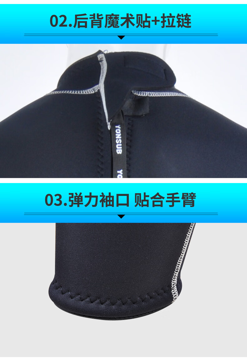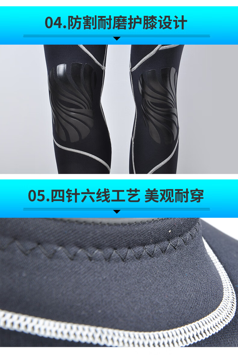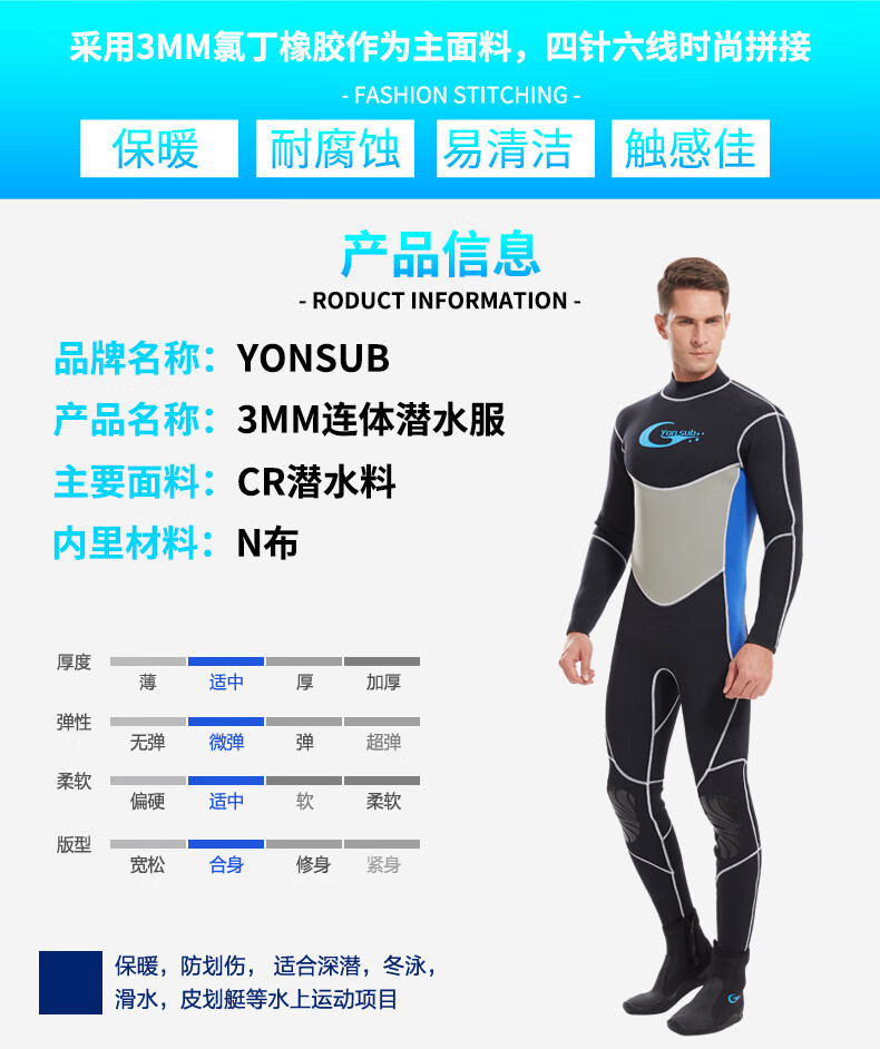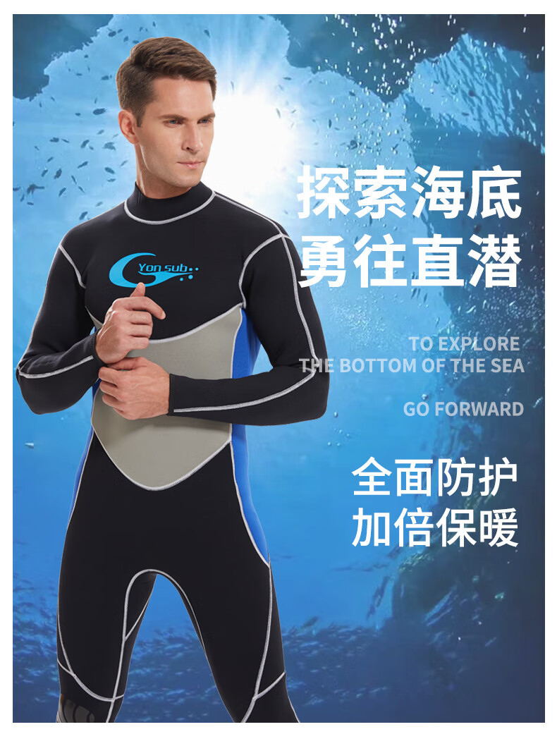 YonSub3MM men's adult diving suit one-piece snorkeling suit winter swimming supplies adult swimsuit free diving blue black 3XL
