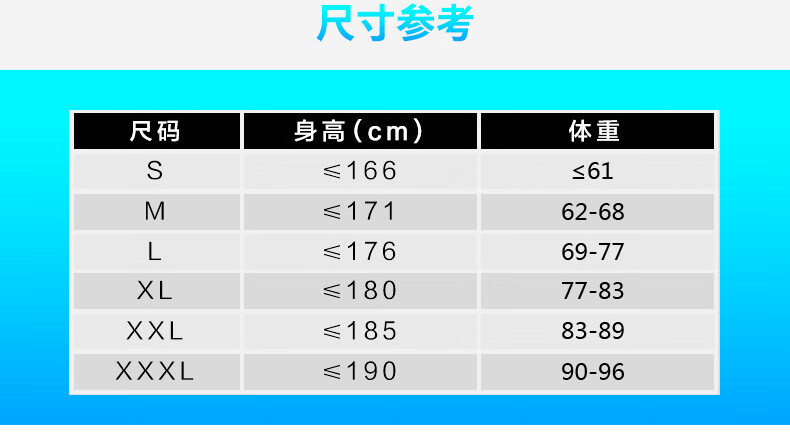 China (cm) 165 / 88-90 170 / 96-98 175 / 108-110 180 / 118-122 185 / 126-130