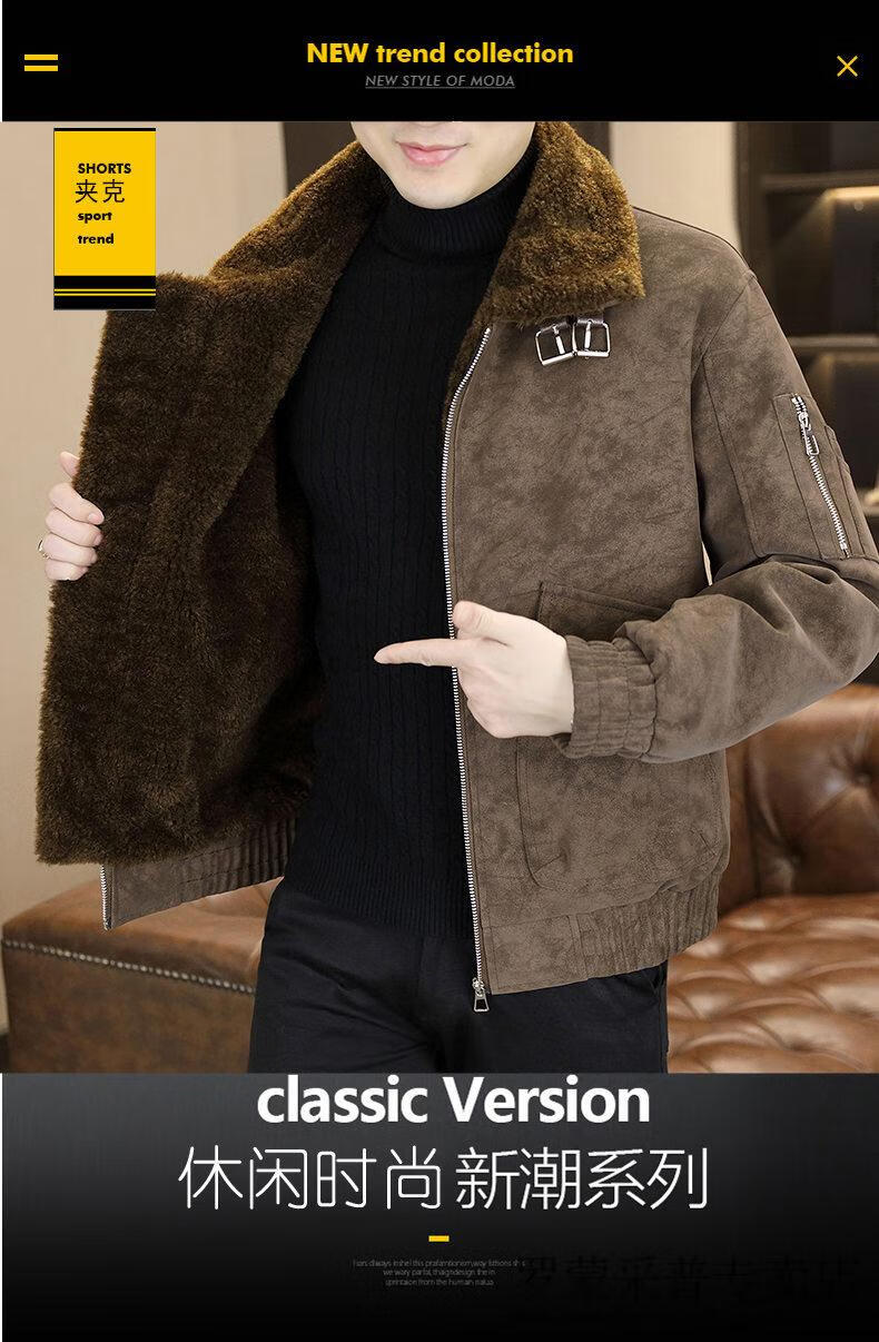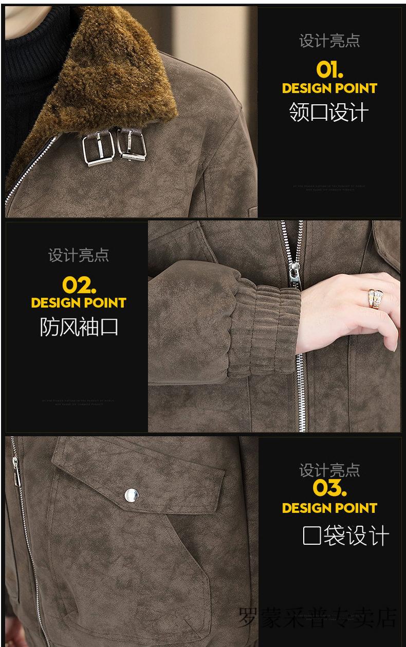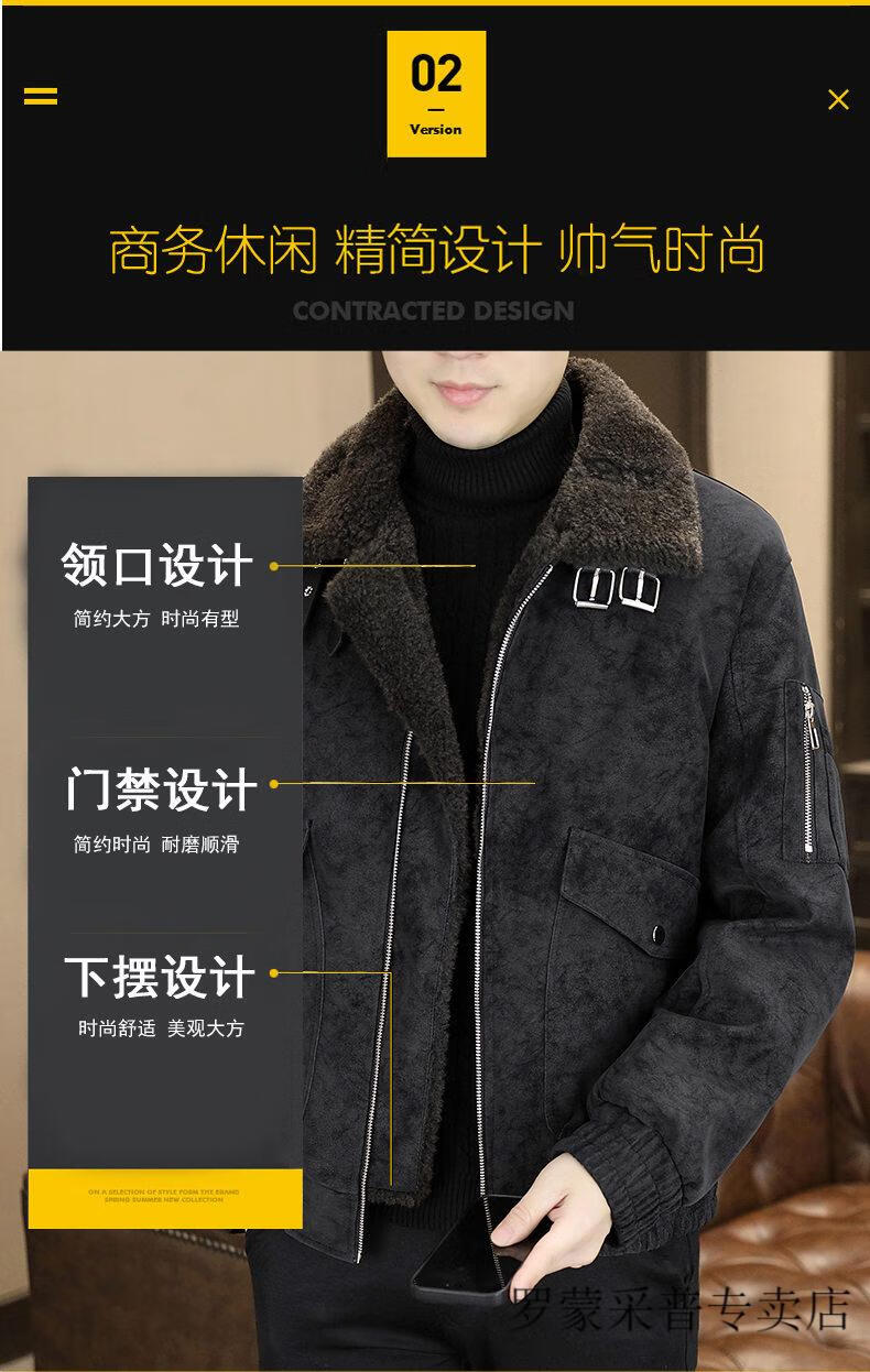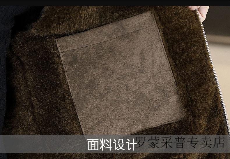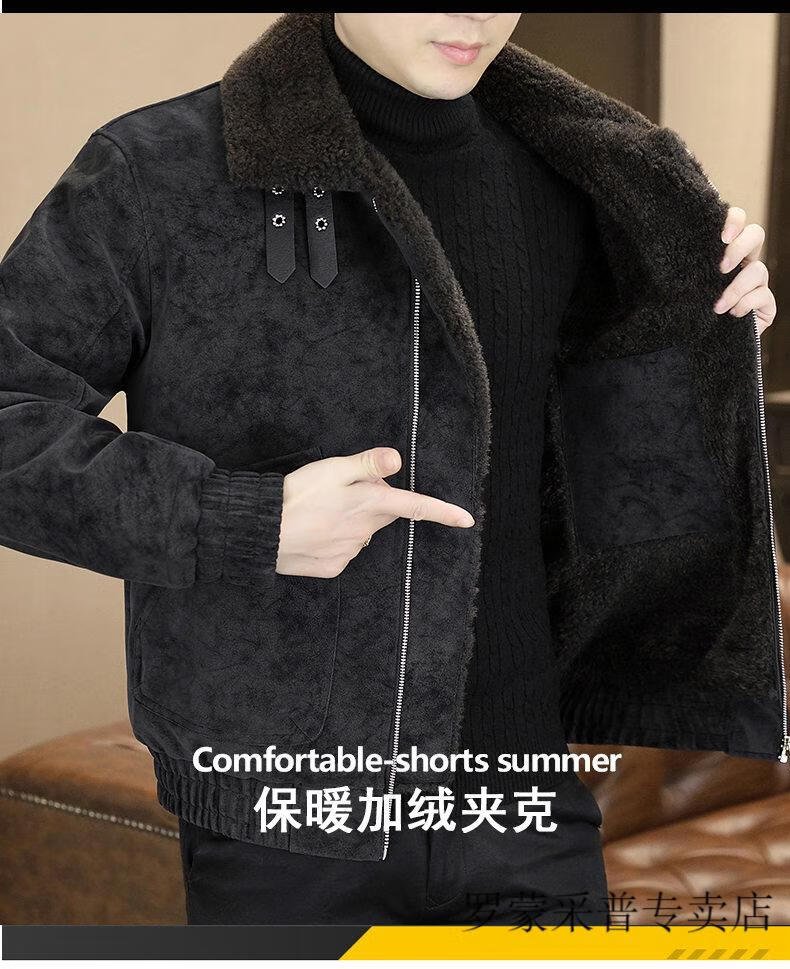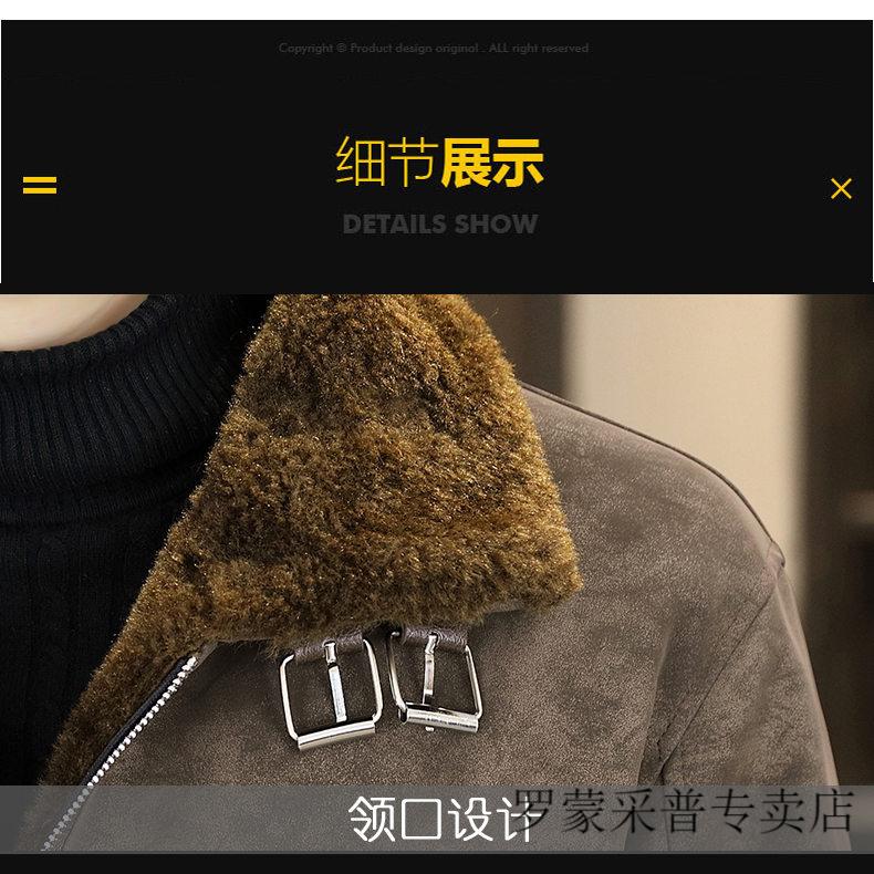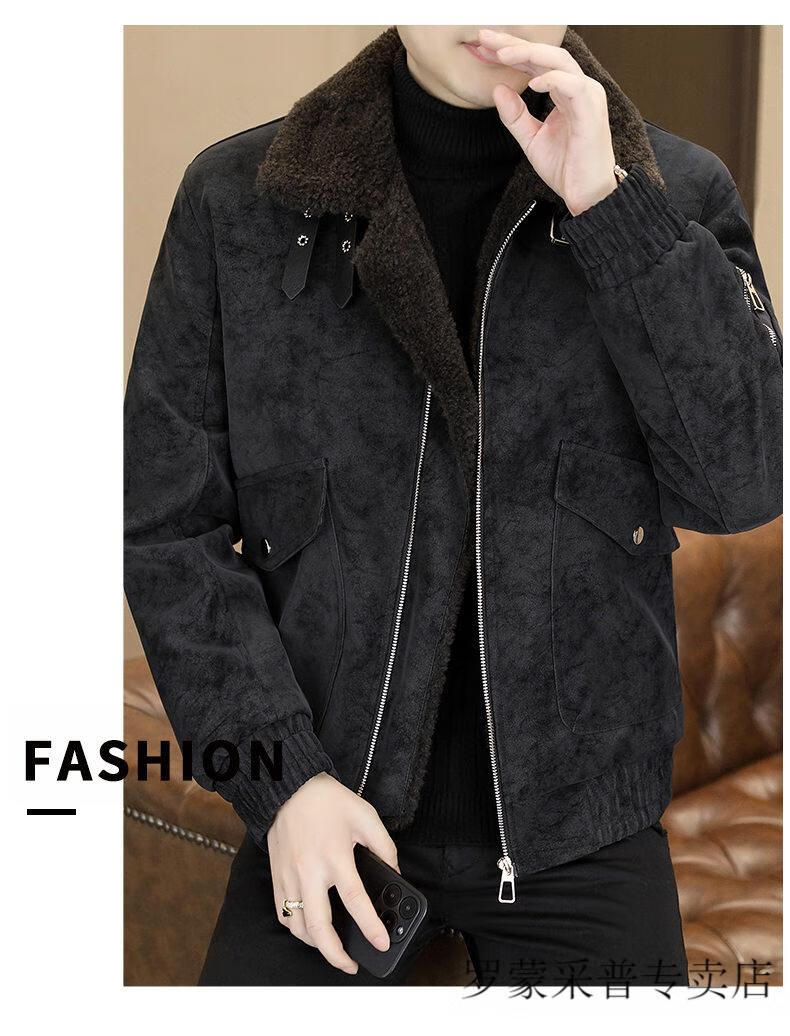 Romon fur collar fur all-in-one leather jacket for men 2025 velvet thickened lapel motorcycle leather jacket winter trendy brand warm jacket black L
