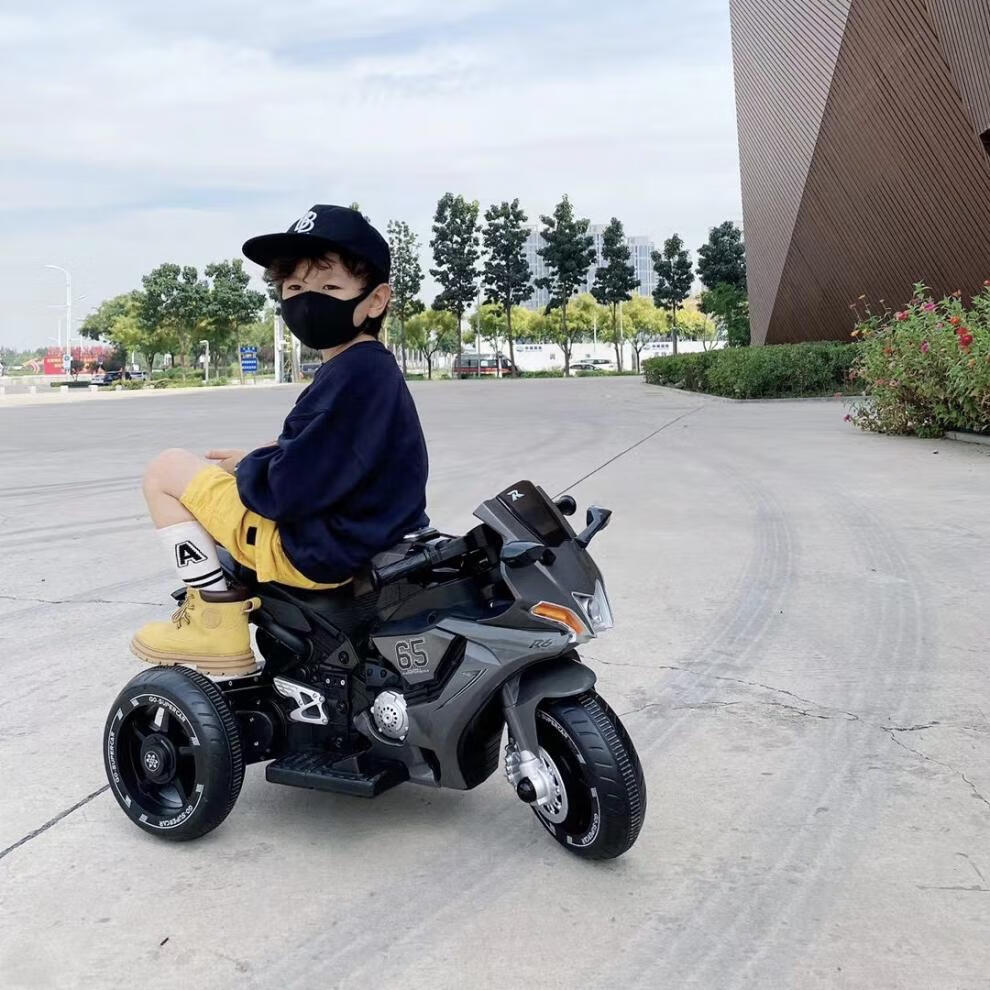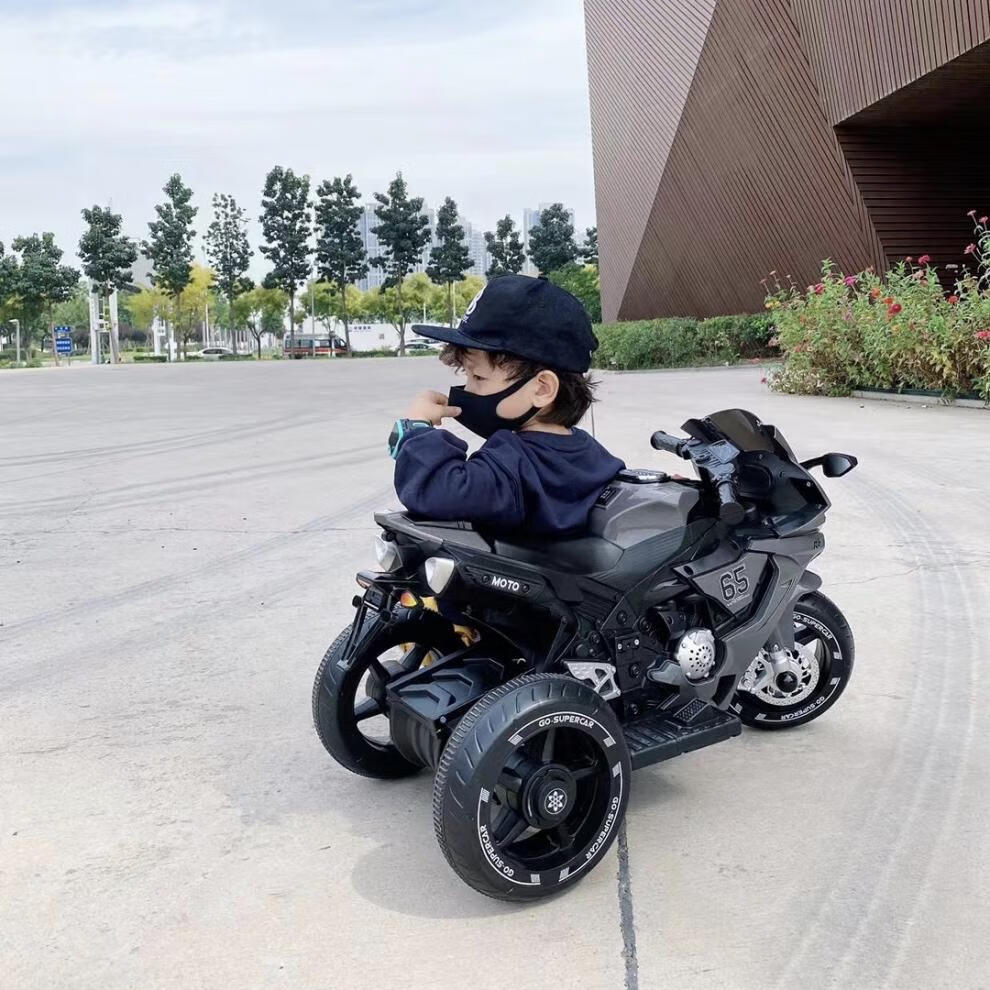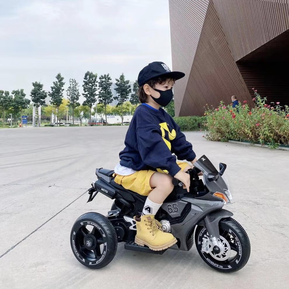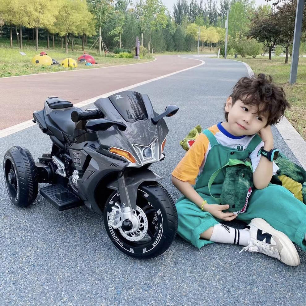 Dianmai can sit on people 1-5 years old, charging remote control children's electric motorcycle tricycle for boys and girls, toy car, high-grade gray - small battery - single drive - music and lighting
