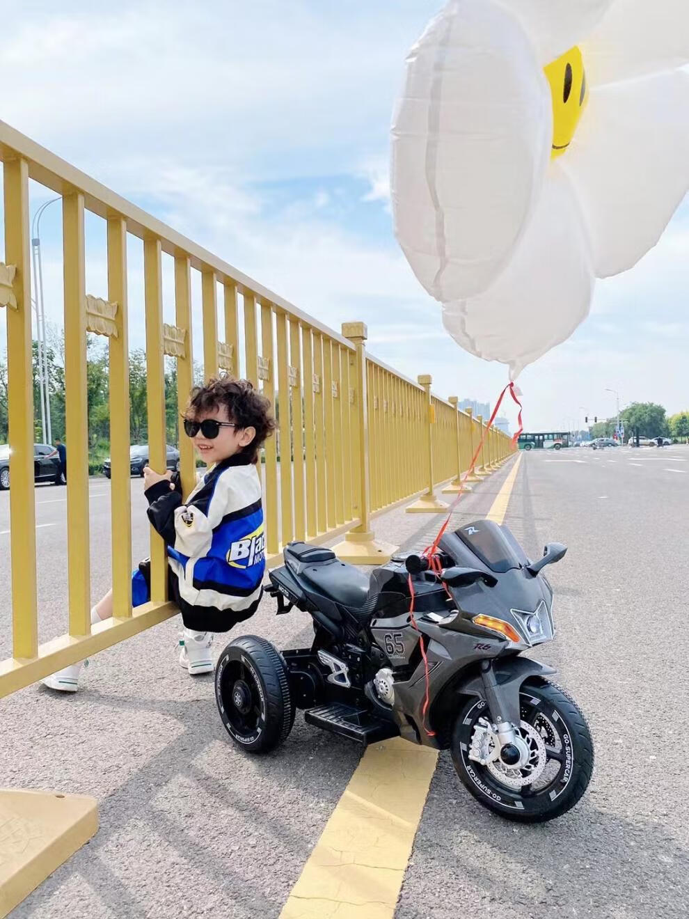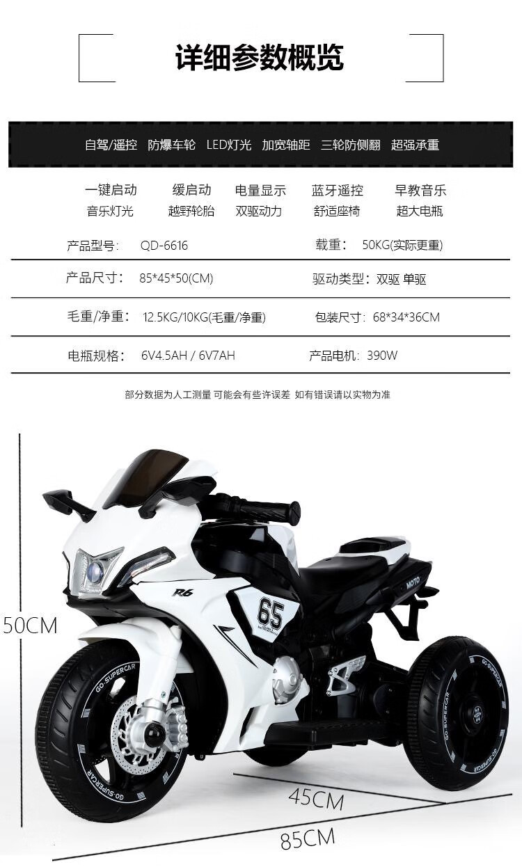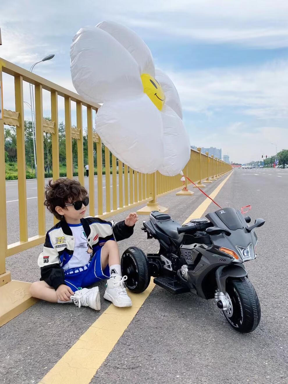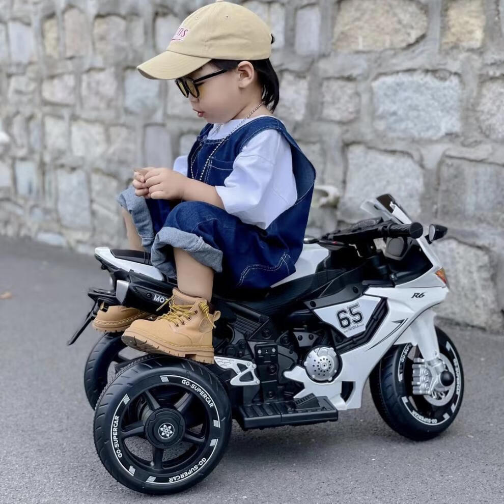 Dianmai can sit on people 1-5 years old, charging remote control children's electric motorcycle tricycle for boys and girls, toy car, high-grade gray - small battery - single drive - music and lighting