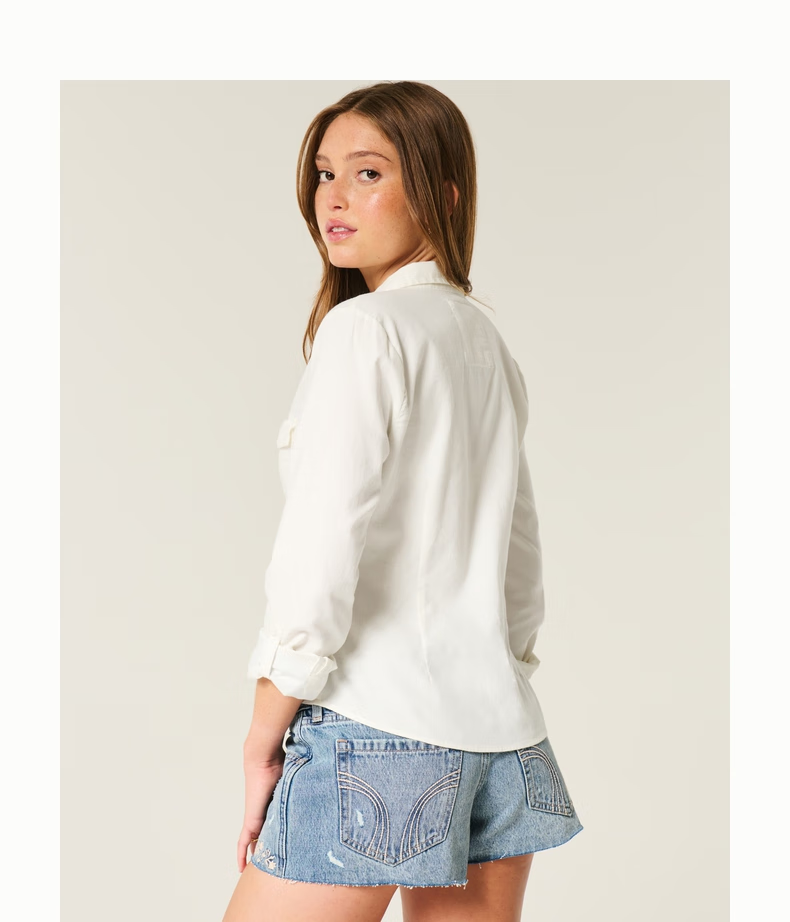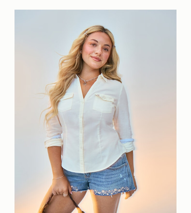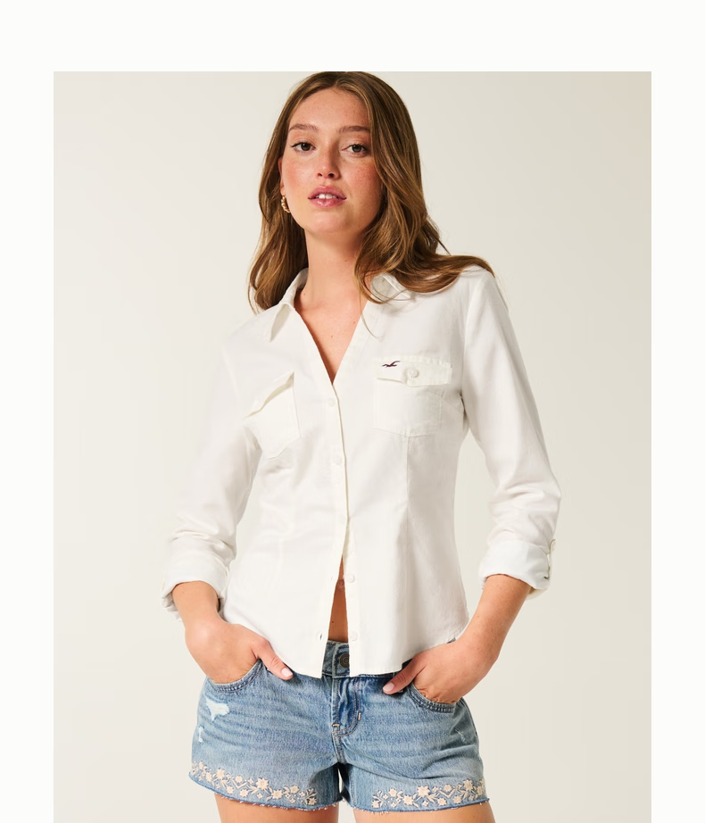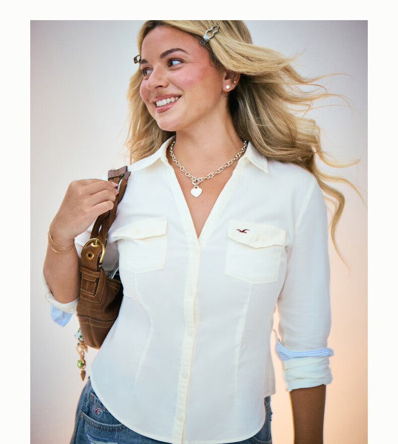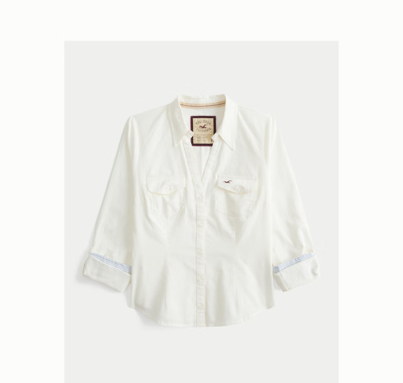 HOLLISTER American little seagull pattern classic Y2K slim waist V-neck shirt women's 340-5533 Cloud White XS (160/80A)