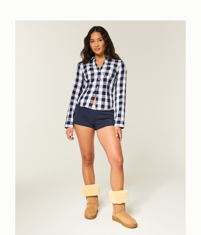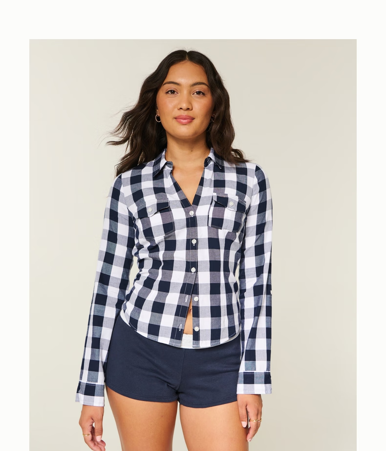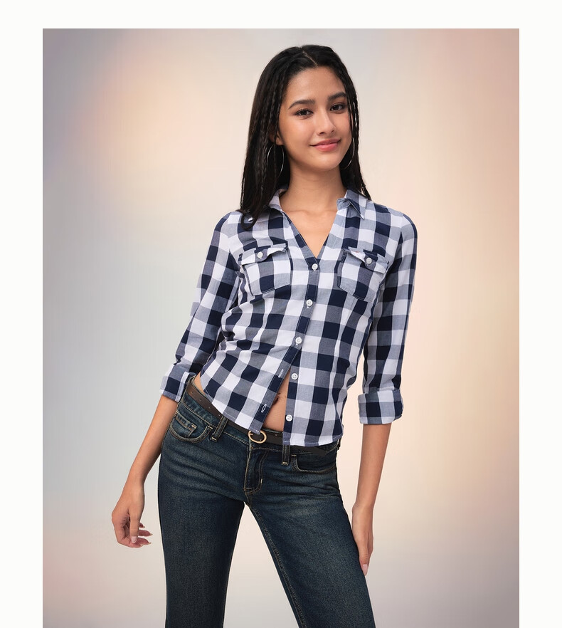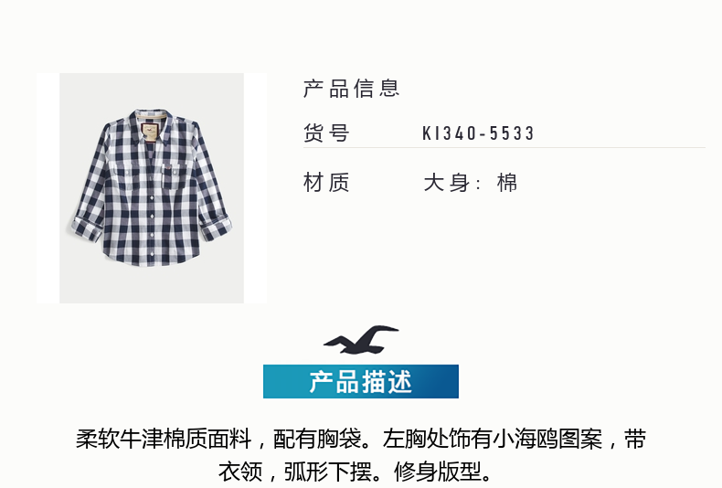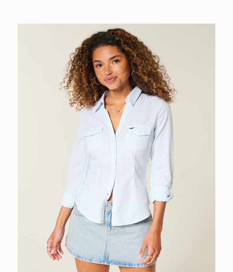 HOLLISTER American little seagull pattern classic Y2K slim waist V-neck shirt women's 340-5533 Cloud White XS (160/80A)