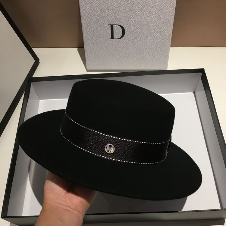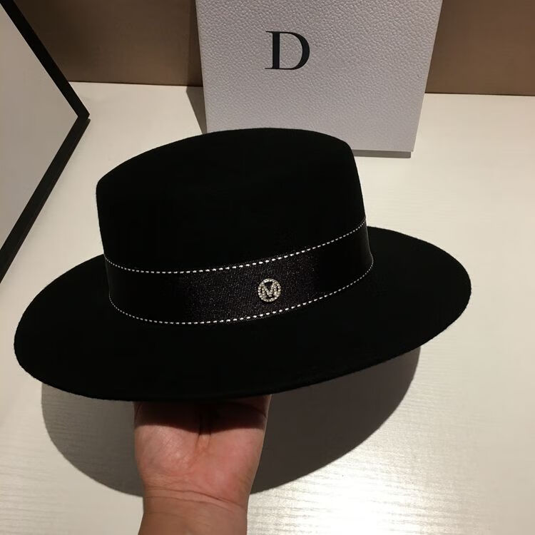 Chenyin Yanfangnuo's new white autumn and winter flat-top woolen hat women's flat-brimmed British versatile black jazz hat black adjustable