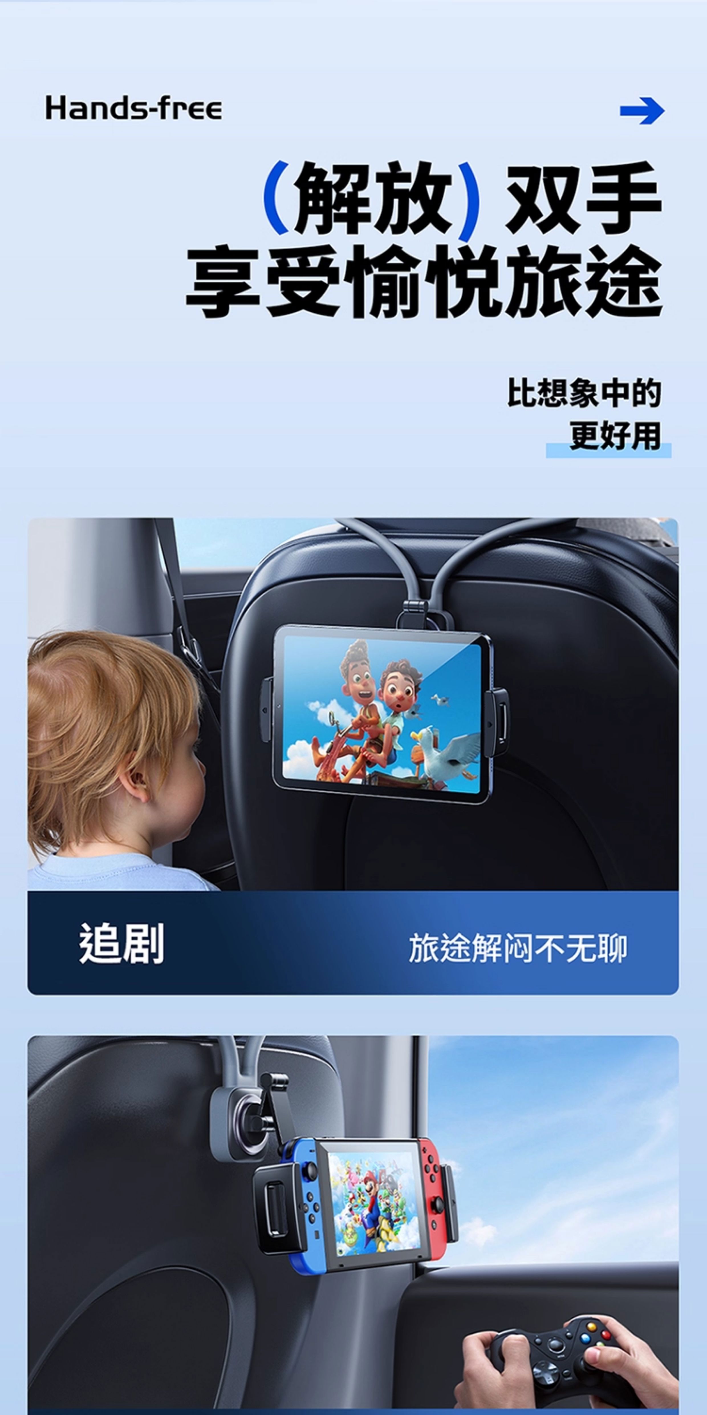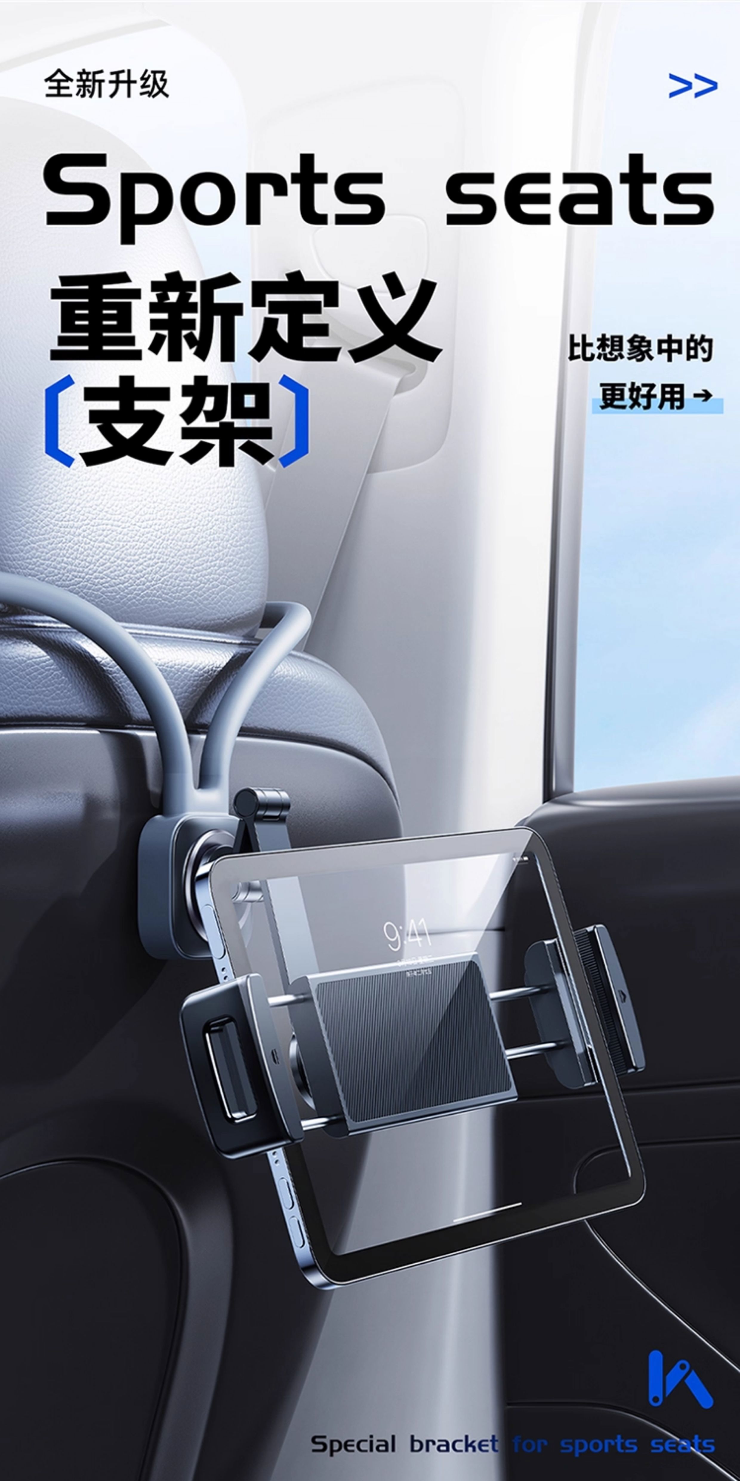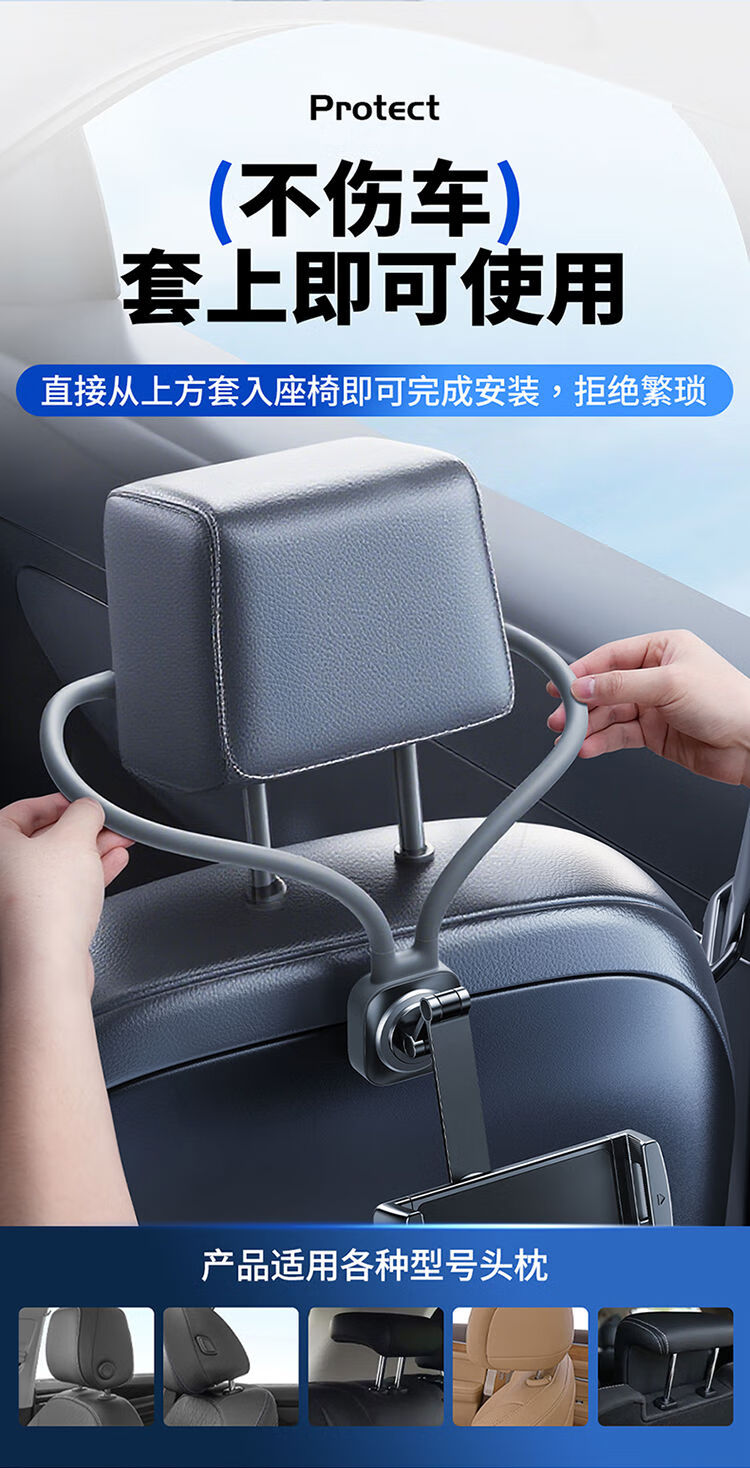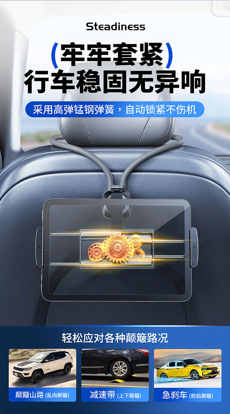 Zailu sports seat rear tablet bracket car headrest fixed mobile phone holder in car special ipad computer car headrest pole - enlarged version with double hooks left and right sliding universal cantilever can magnetically absorb mobile phones