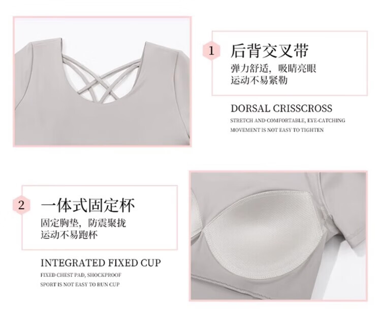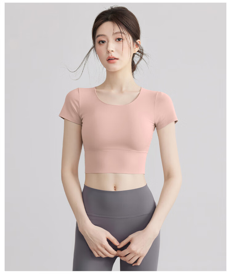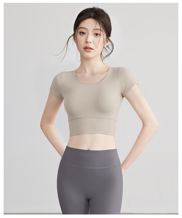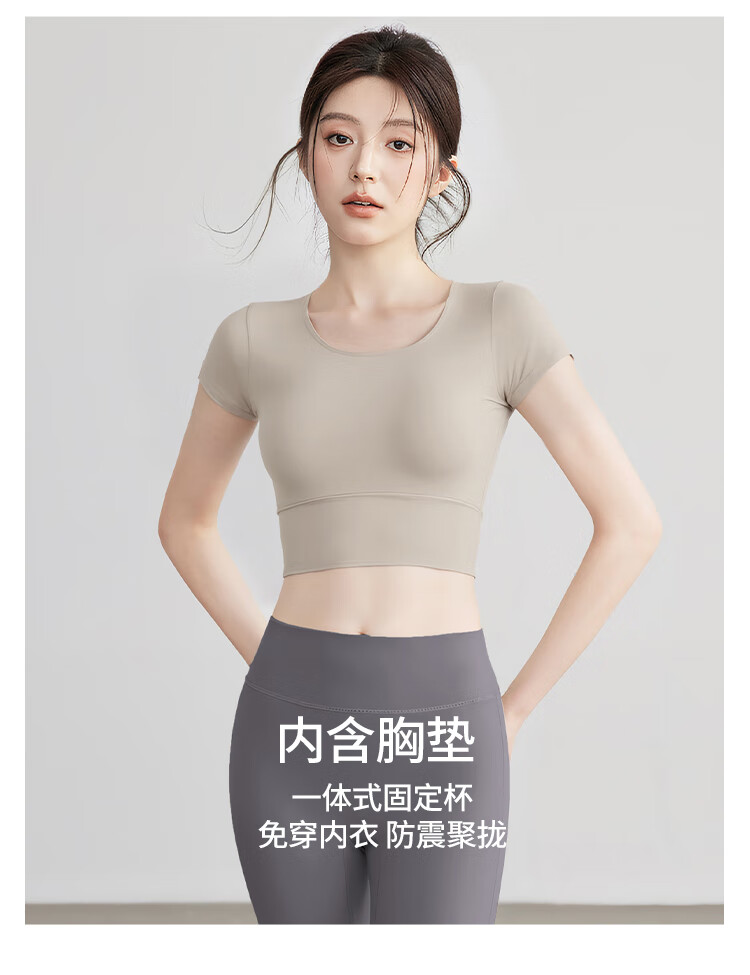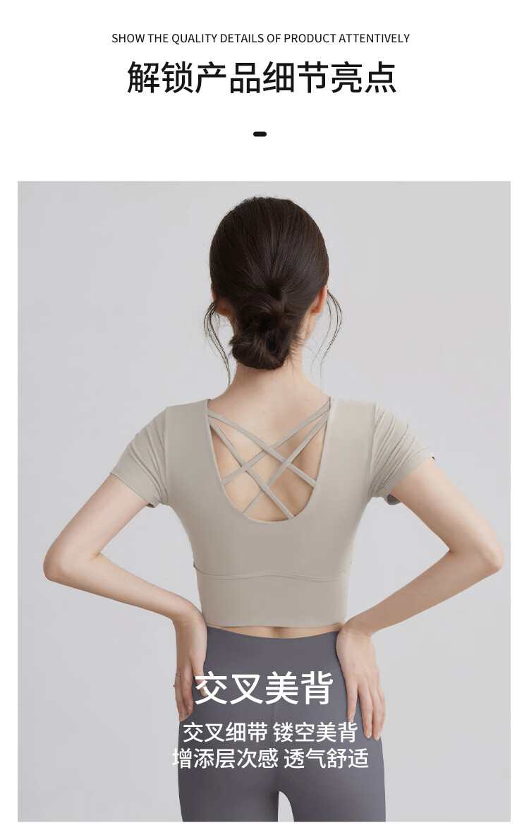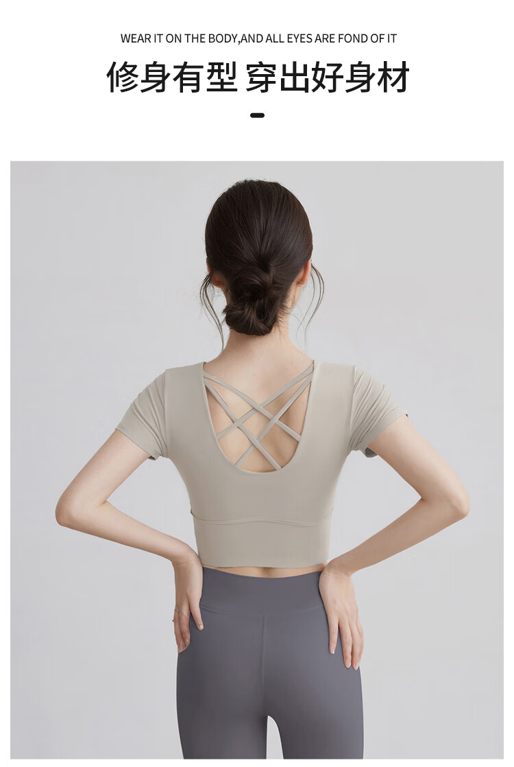 VOJ Yoga Wear Women's New Style Short-Sleeved Sports Fitness Pilates Training Wear with Breast Pads Women's Tops and Beautiful Back Set Ginkgo Super Stable Cup S Recommended Weight 95Jin Jin is equal to within 0.5kg