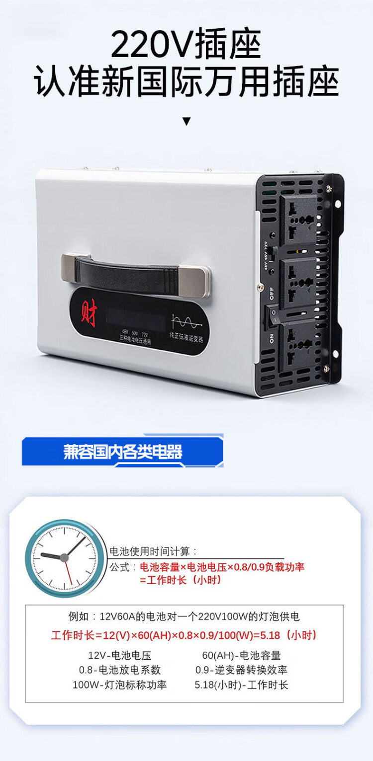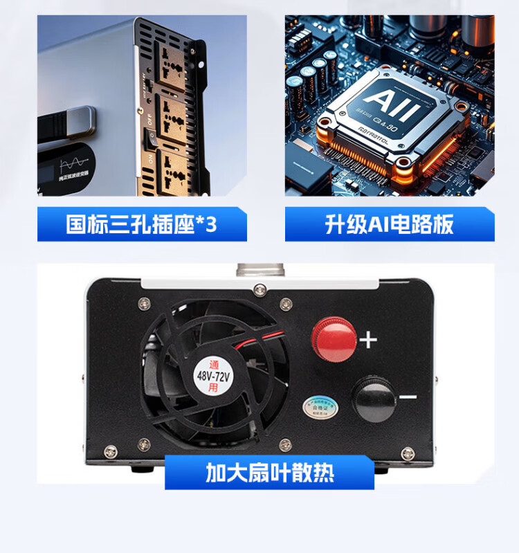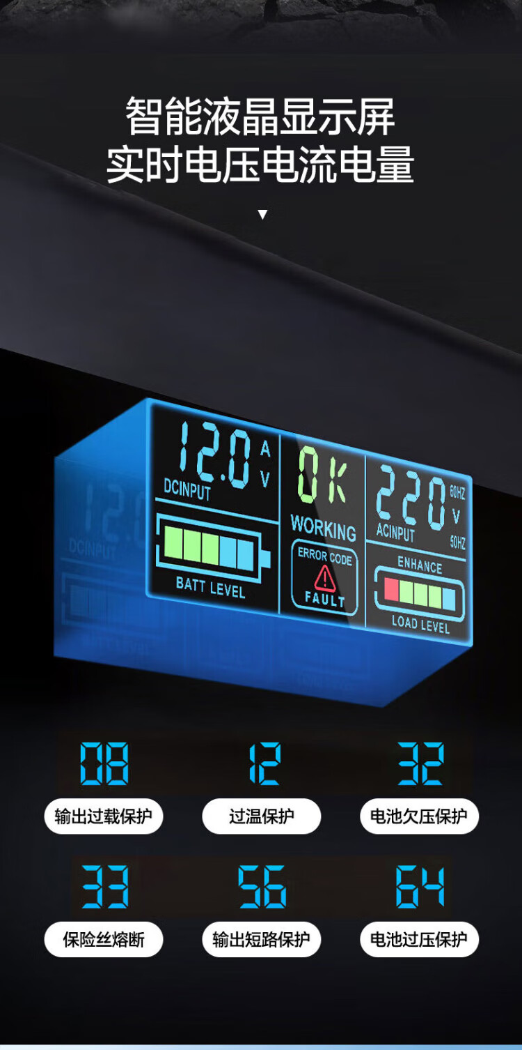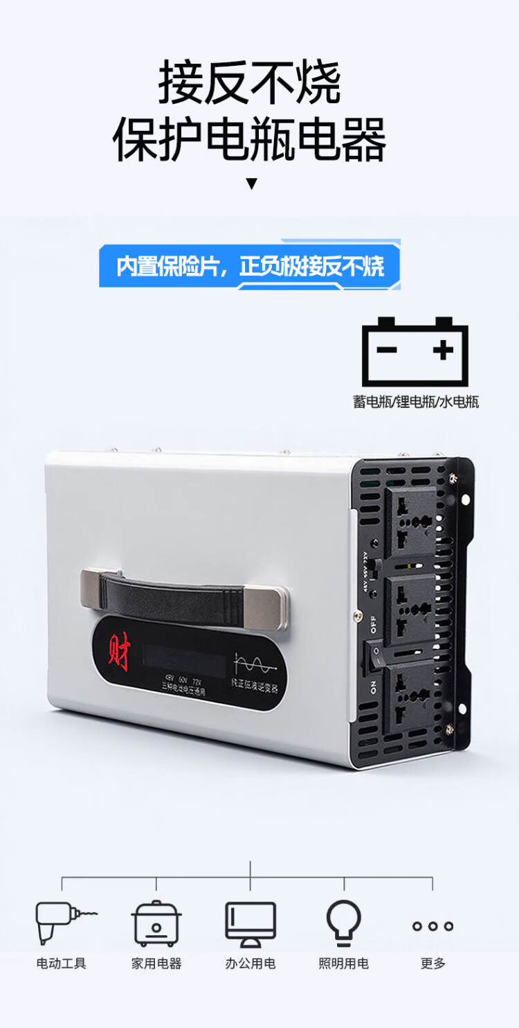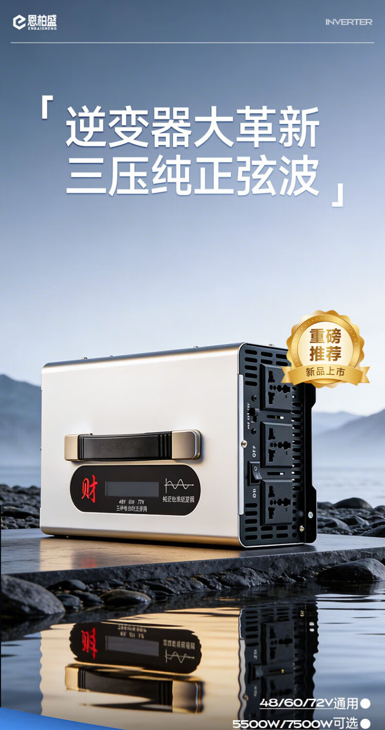 Enbosheng pure sine wave inverter 48V60V72V to 220V universal tricycle stall use 5000w vehicle-mounted high power 48-60-72V to 220V pure sine wave 7500W first release on the whole network pure sine wave three-voltage universal inverter丨intelligent cooling