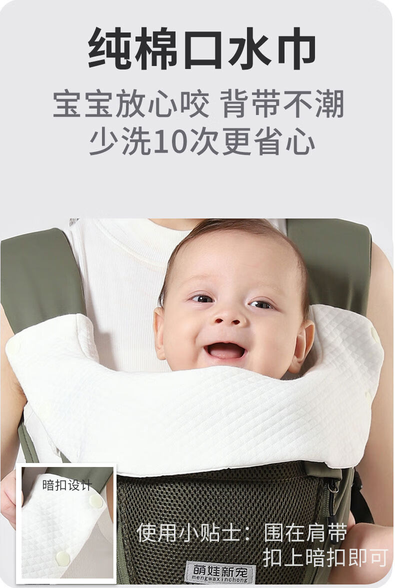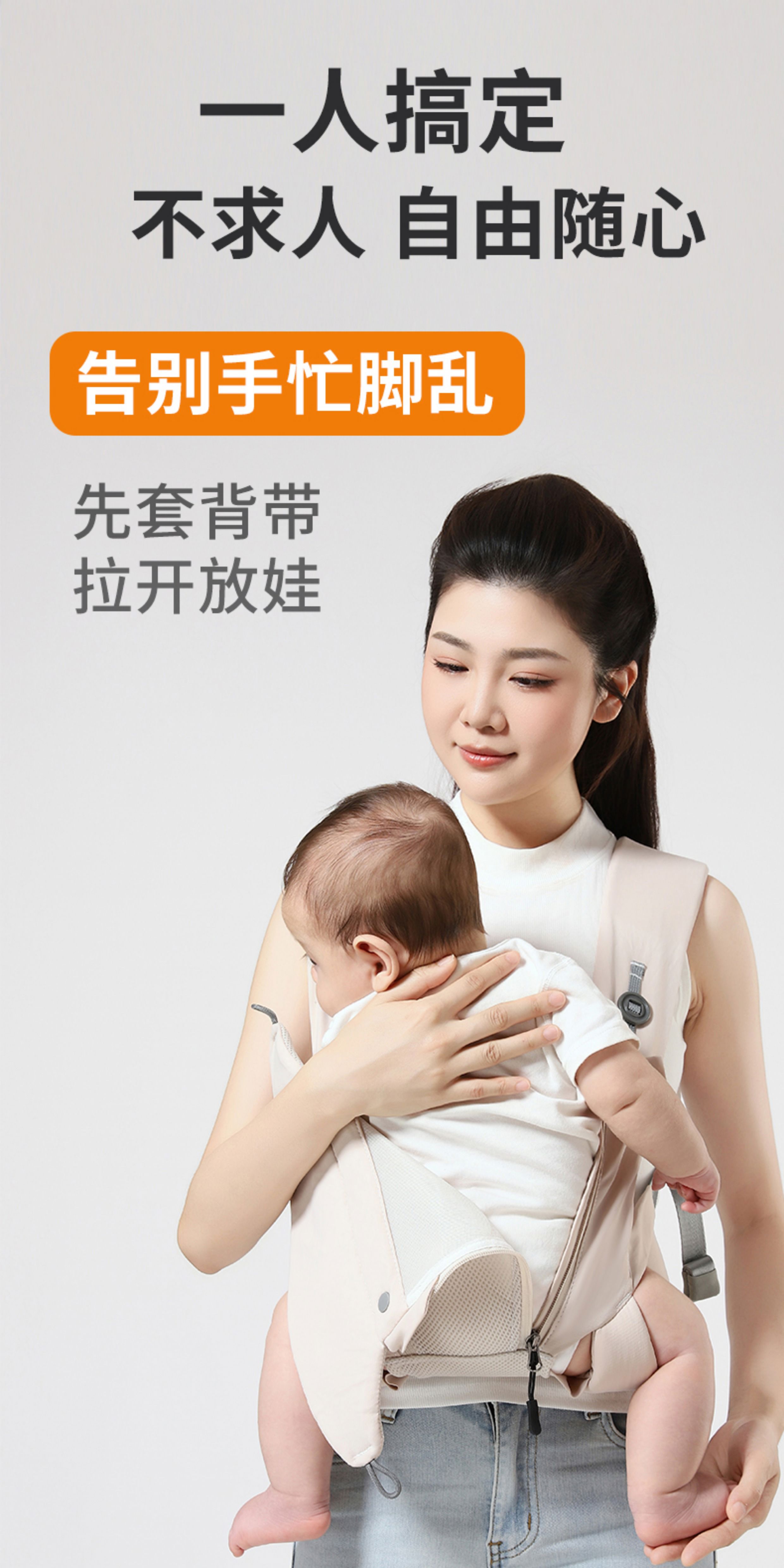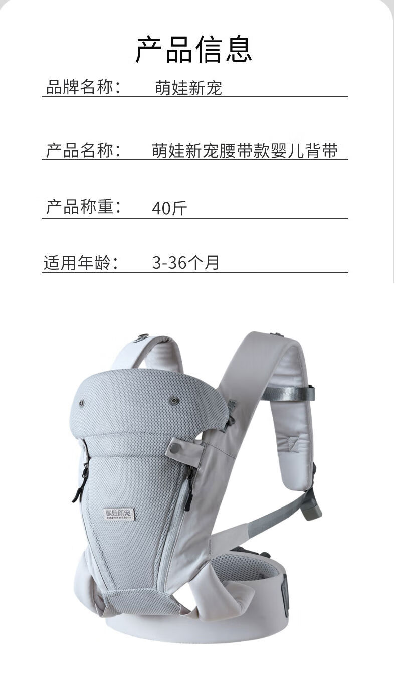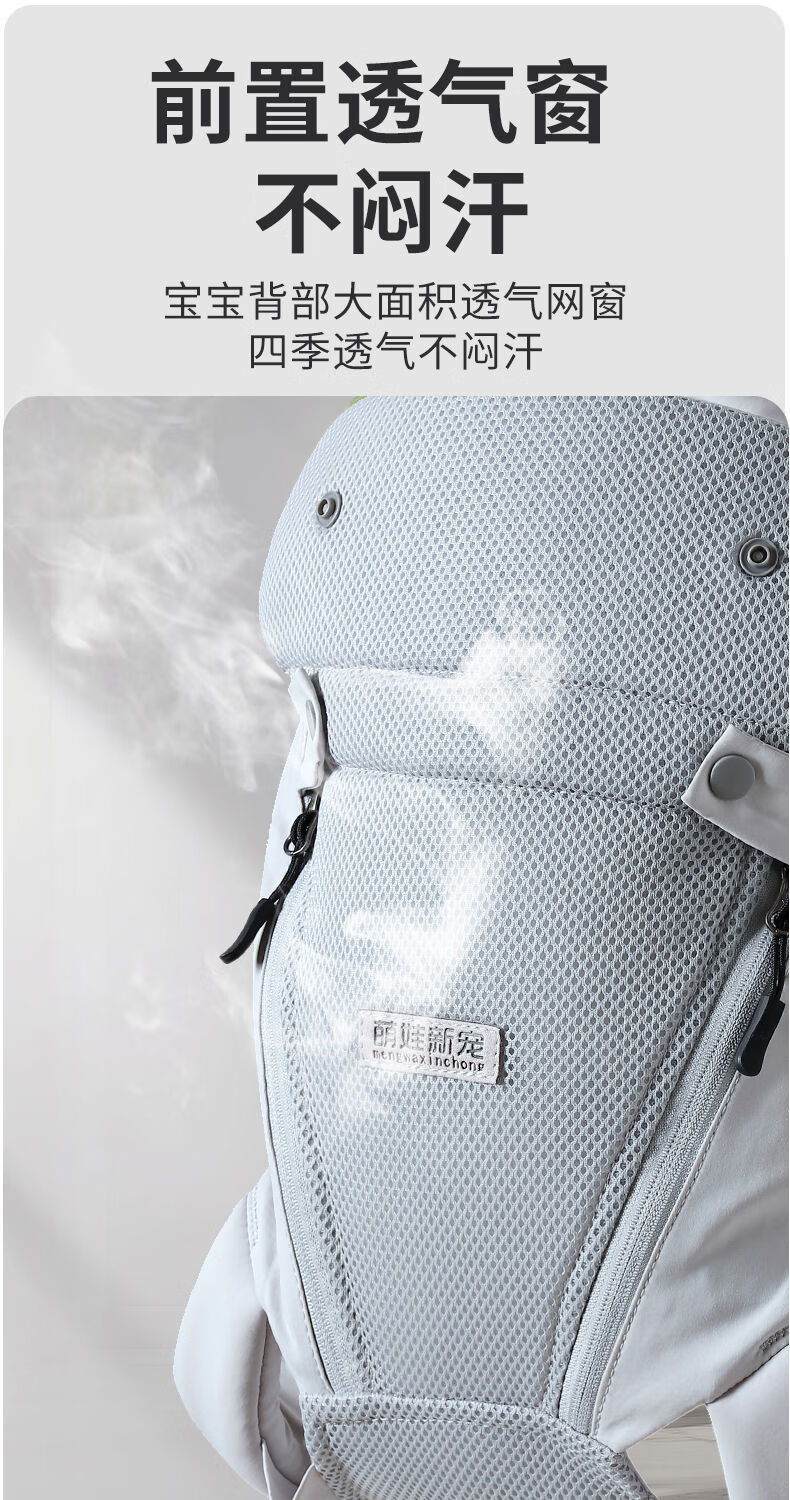 Baby carrier for small months old baby, front and back, dual-use for carrying baby out and back, freeing hands, gray belt, windproof hood + storage bag