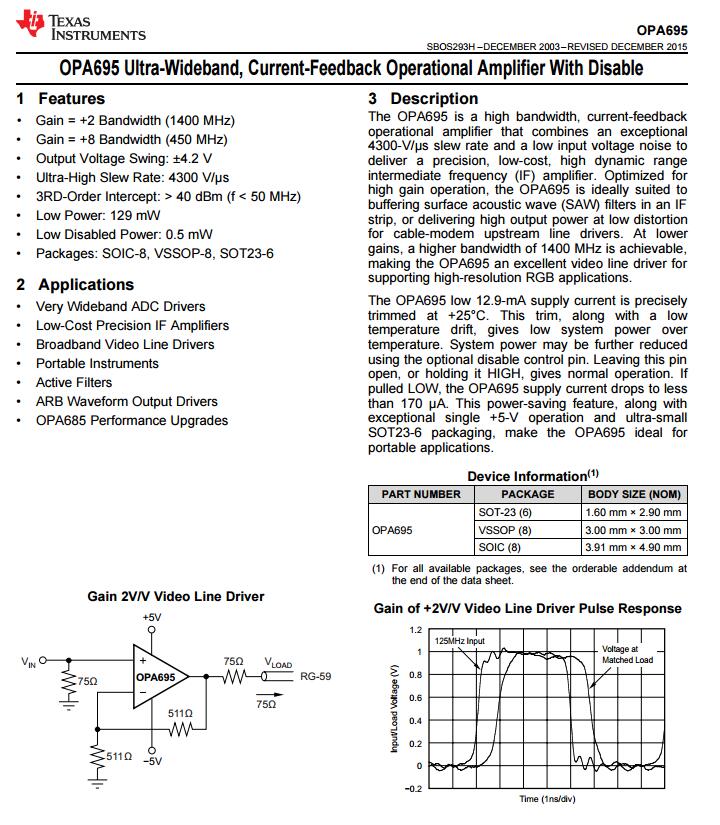 OPA695 module 2800MHZ amplifier ultra-wideband current feedback operational amplifier dual power supply