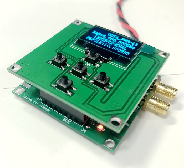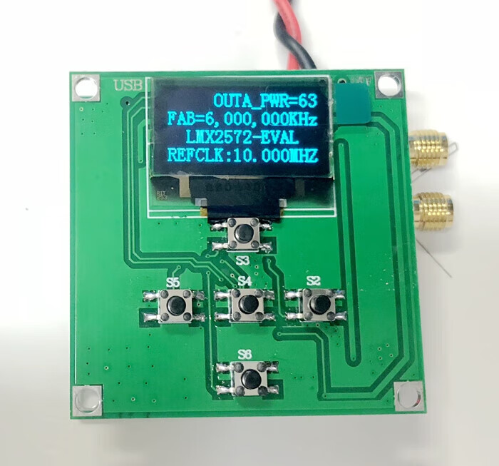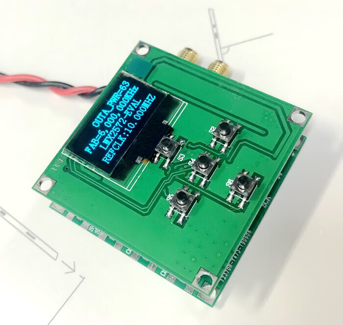 LMX2572 phase locked loop low power consumption low noise phase locked loop module 80mA 12.5M-6.4GHZ FSK LMX2572+STM32 main control+1.3 inch TFT