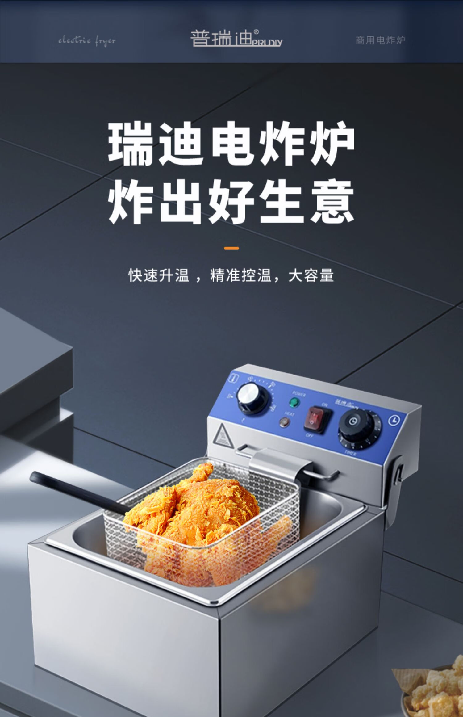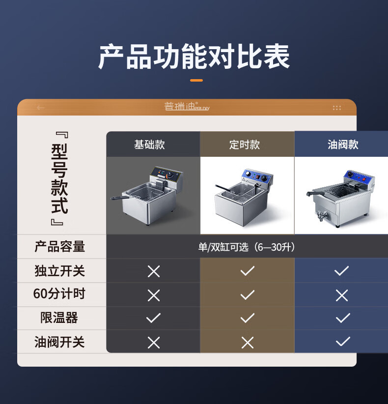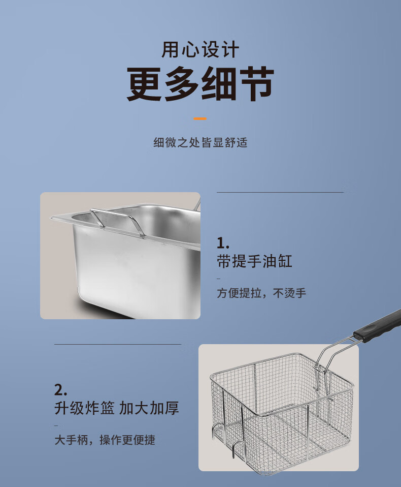 Electric fryer commercial fryer large capacity constant temperature electric fryer fried chicken french fries fried skewers single and double cylinder B timed double cylinder 30L PD-152 5 inches