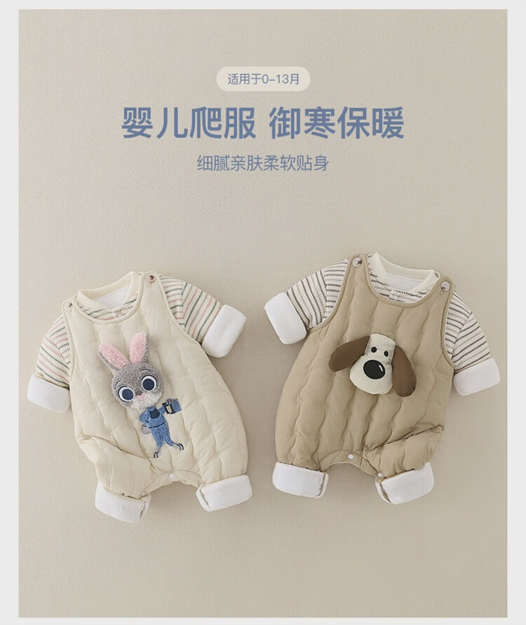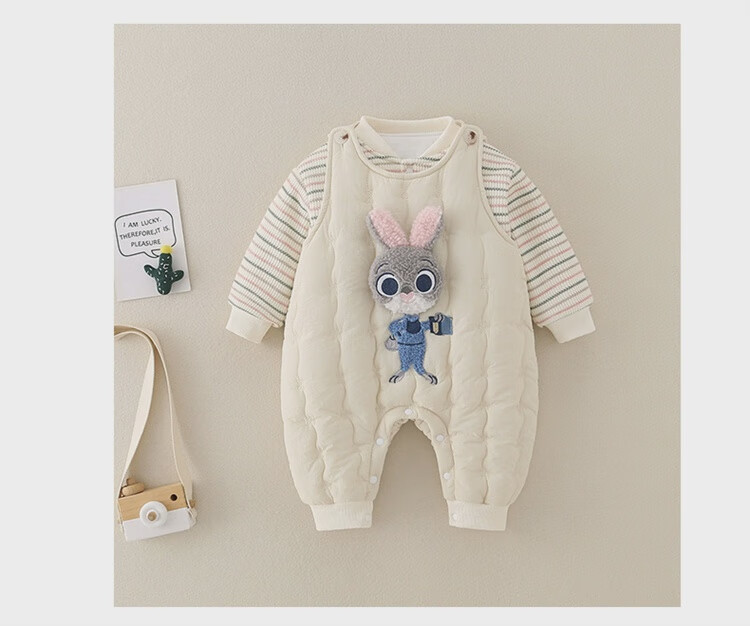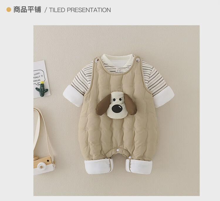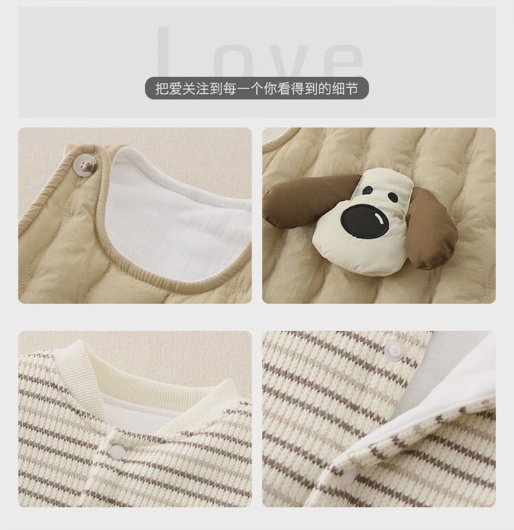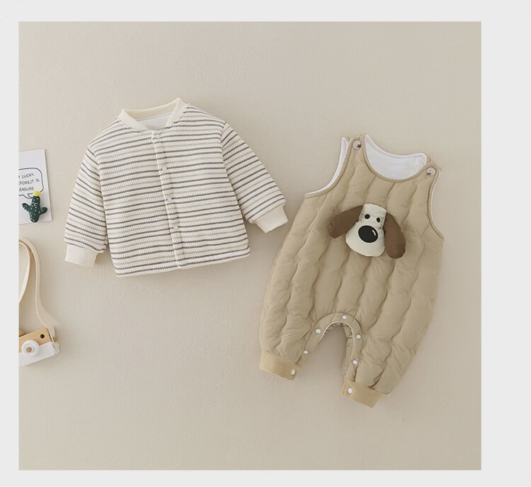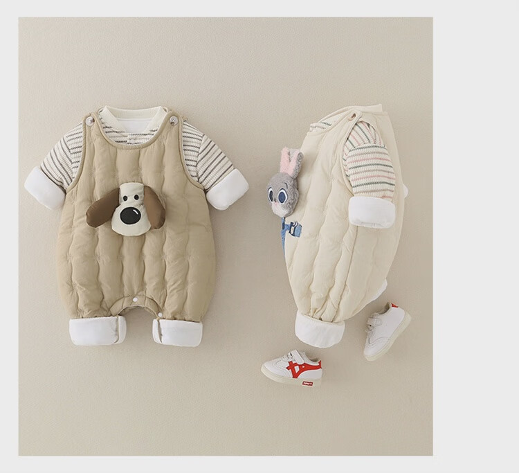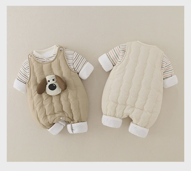 Baby autumn and winter thickened split suit for men and women, quilted sweatshirt, one-piece overalls, two beige, lining is pure cotton, 36cm 73CM, suitable for 12-17 Jin Jin equals 0.5 kg