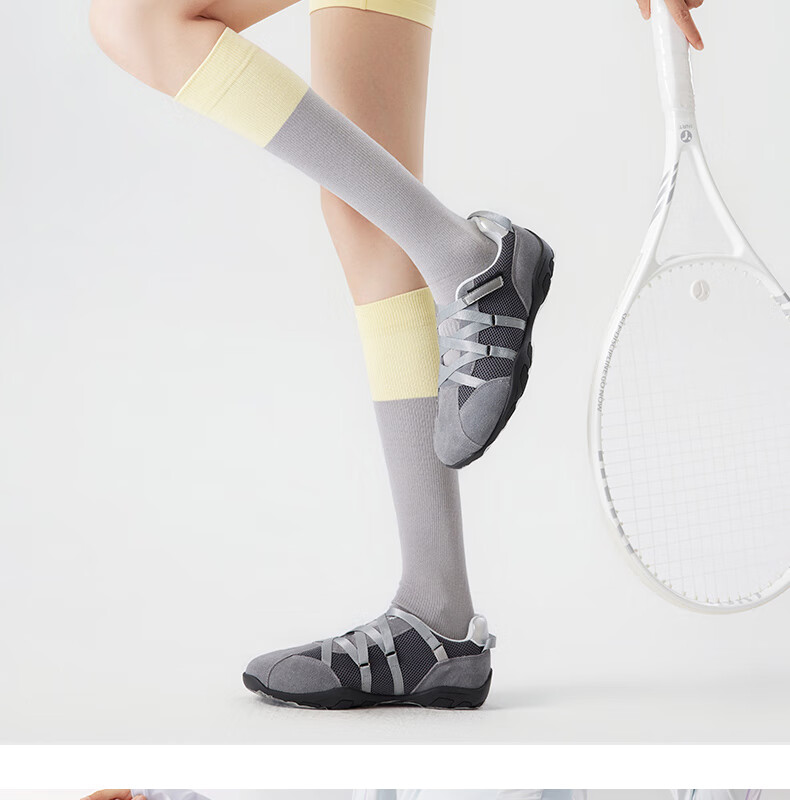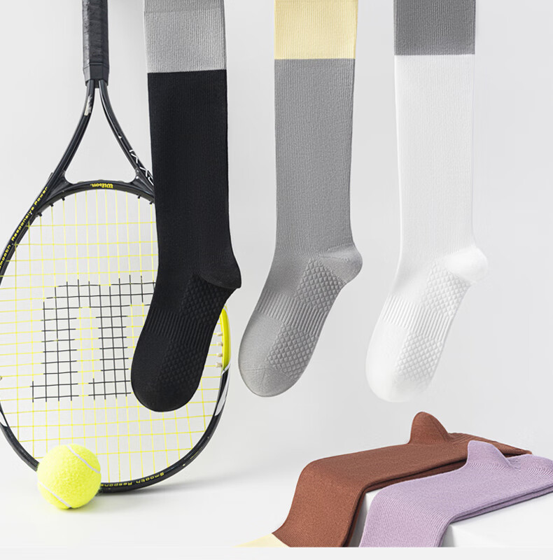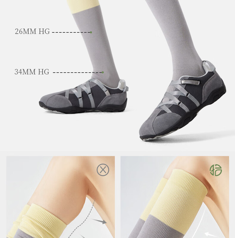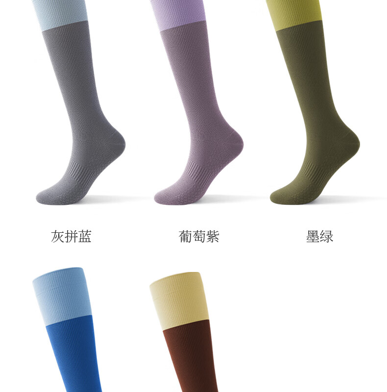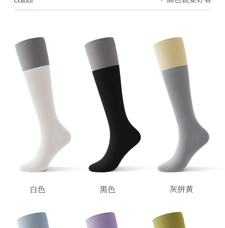 Pick Up Socks Contrast Color Sports Pressure Calf Socks Slimming Compression Socks Outdoor Hiking Mountain Cycling Long Socks White + Gray and Yellow One Size (Strong Pressure Slimming_Sweat Absorbent Breathable_10A)