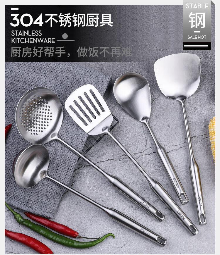 German 304 stainless steel spatula household soup spoon all-steel anti-scald cooking kitchen utensils stir-fry spatula colander 304 ultra-thick anti-scald spatula
