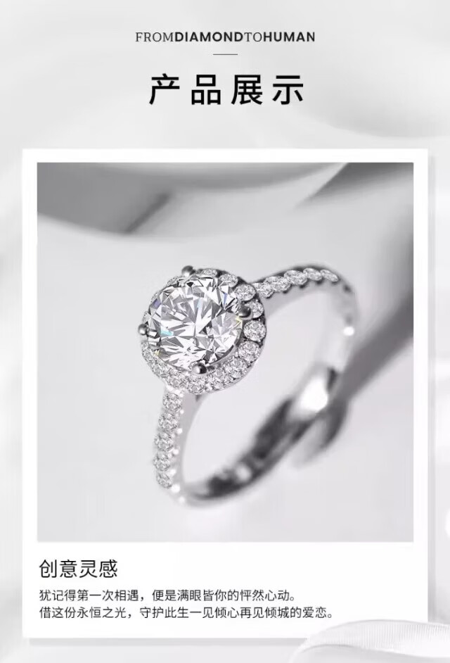 I Do platinum PT950 diamond ring 1 carat classic round cultivated diamond wedding ring proposal wedding anniversary gift for wife classic round 50 points diamond opening adjustable