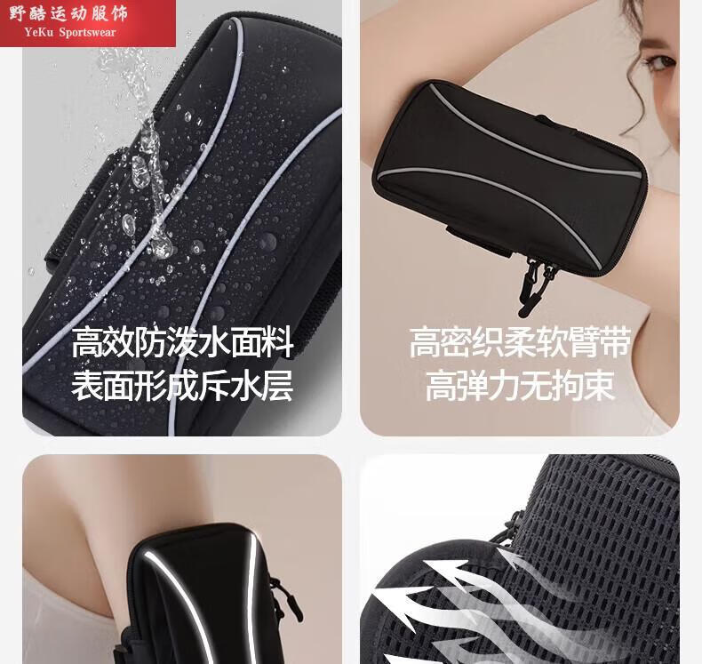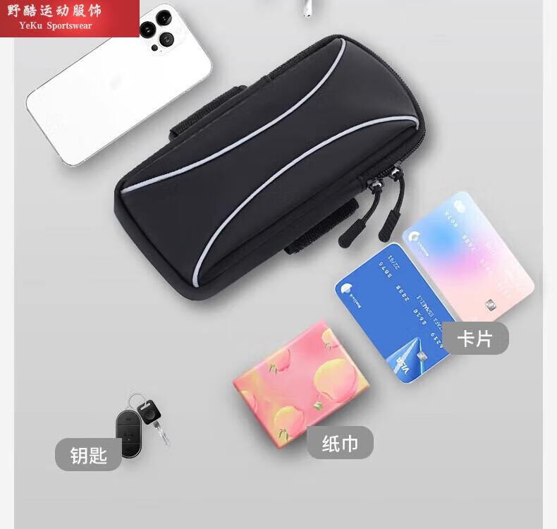 Running mobile phone arm bag for men and women, fitness waterproof storage artifact, Apple arm sleeve, classic black upgraded model 6 points 8 inches, light and breathable