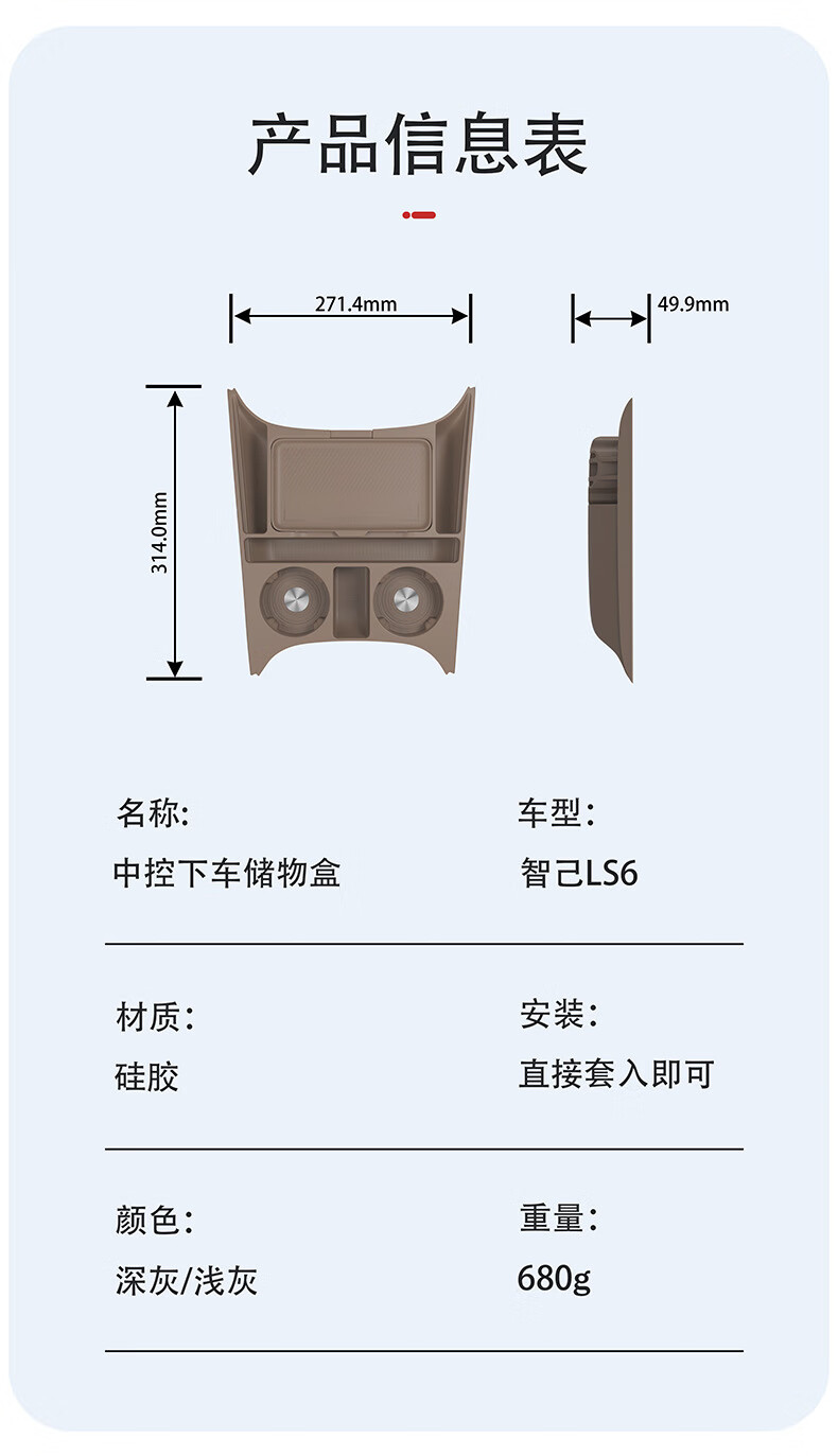 Suitable for 26 models of Zhiji LS6 central control lower storage box storage box lower car supplies glasses case modification accessories Earth Elephant Gray (light gray)