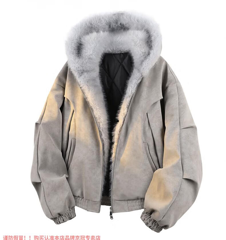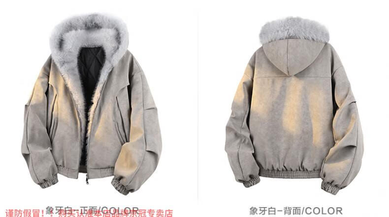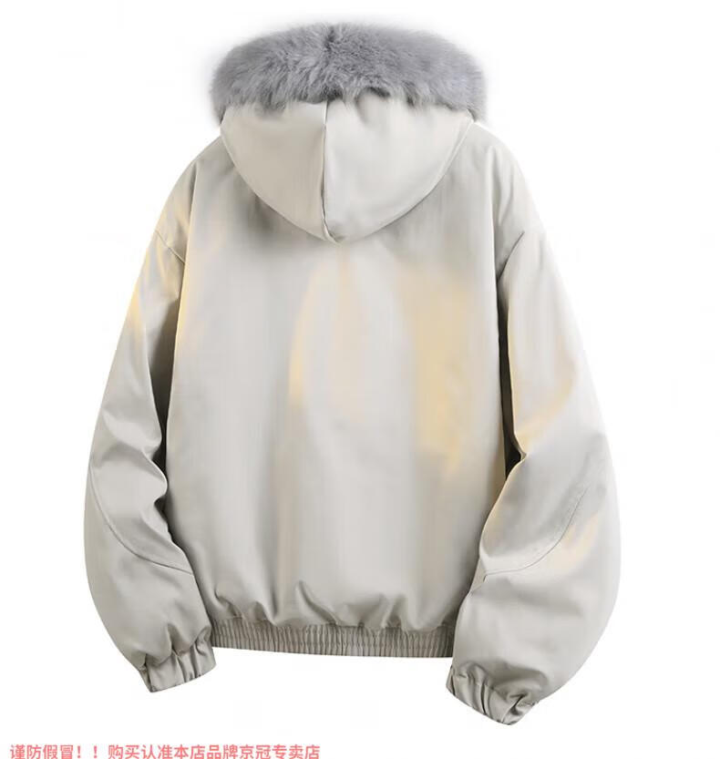 Woodpecker high-end pleated stitching PU fur collar hooded rhombus down jacket winter men's mountain eagle outdoor thermal cotton ivory white L 115 to 135 Jin Jin equals 0.5 kg