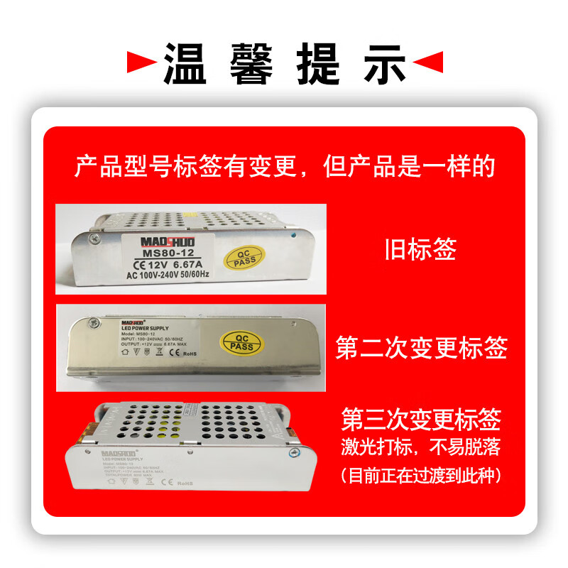 MOSOmaoshuo 12V/24V light strip round LED switching power supply constant voltage transformer 80W/100W/120W fourth generation MS100-12 round 106X34 mm