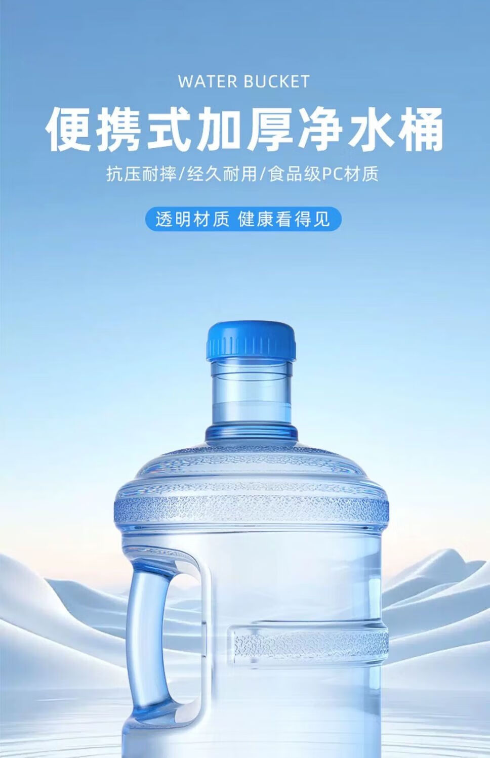 PC thickened water dispenser bucket QS certified household food grade mineral water bucket portable clean water bucket outdoor bucket (thickened high quality) food grade QS certified with handle + spare cover Thin 7.5 liters cannot be filled with hot water No spare cover