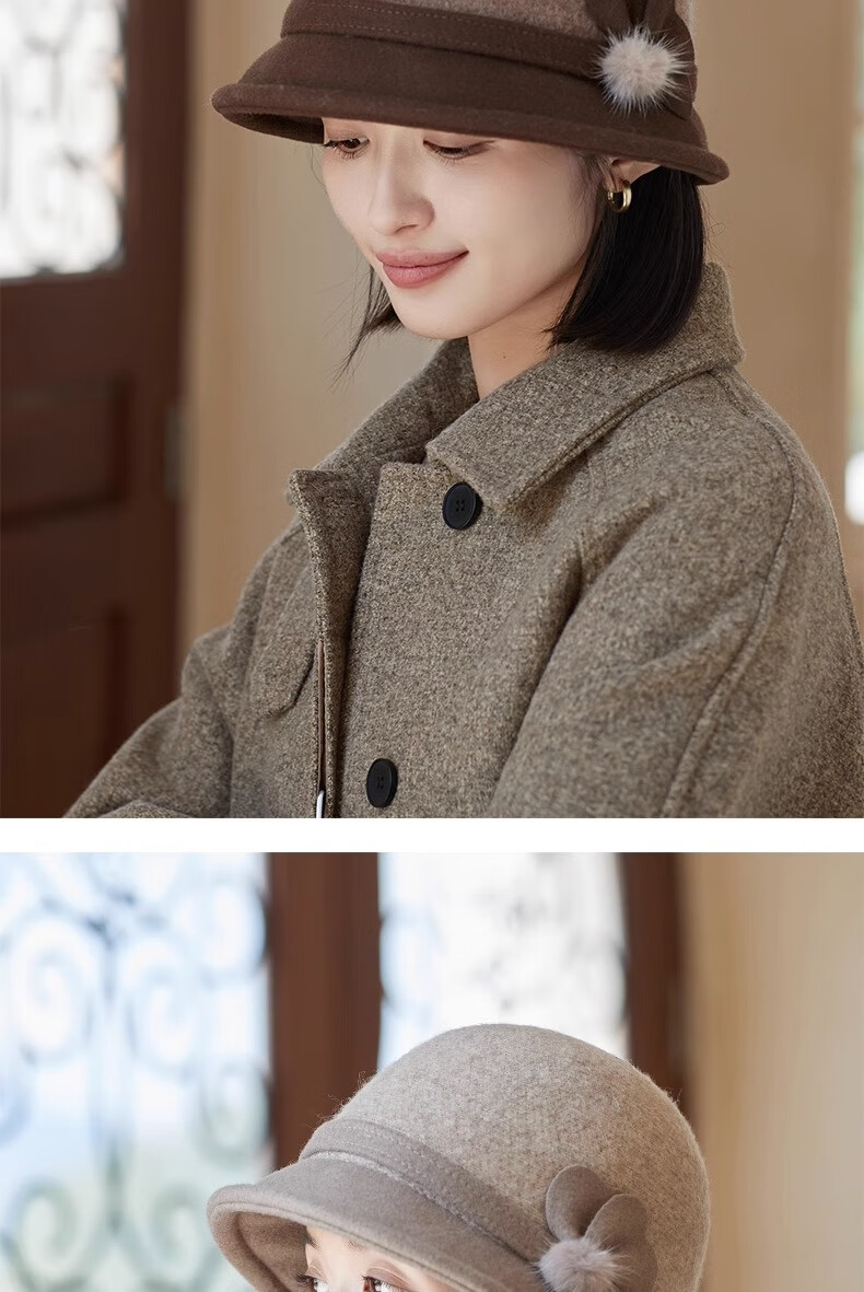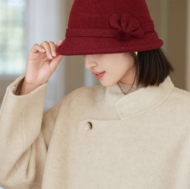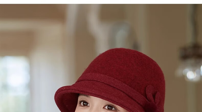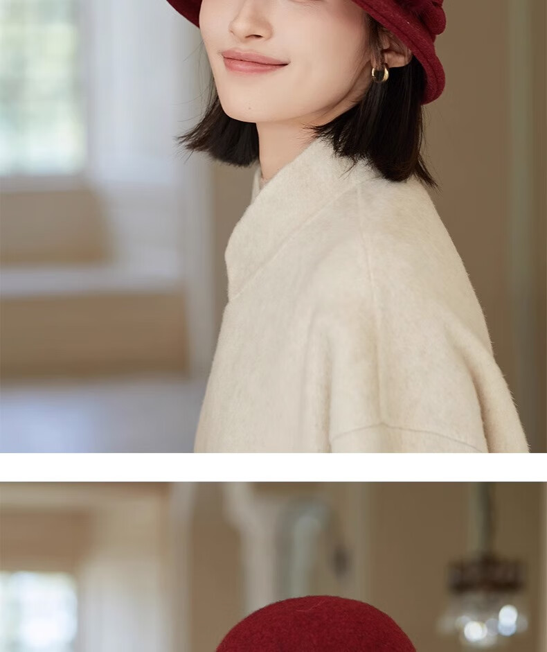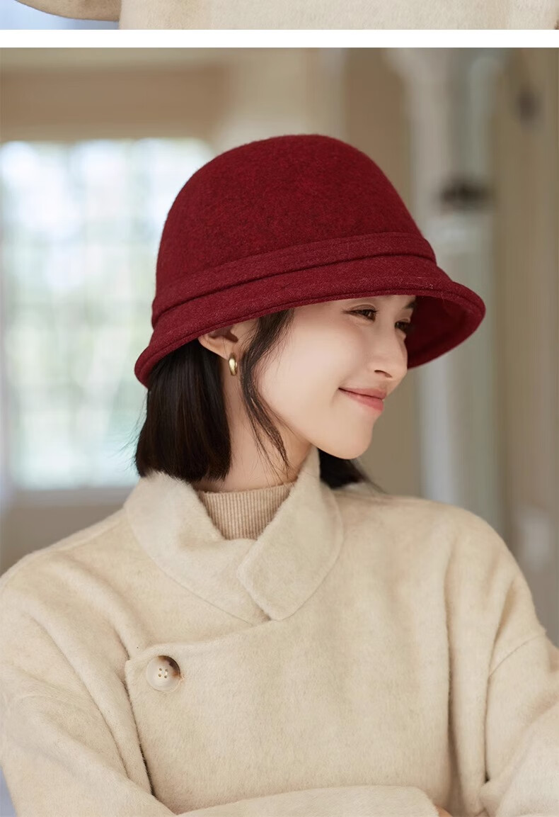 Hengyuanxiang woolen fisherman hat for women in autumn and winter, Korean version, versatile, warm and elegant for middle-aged and elderly people, British retro basin hat, burgundy, one size fits all
