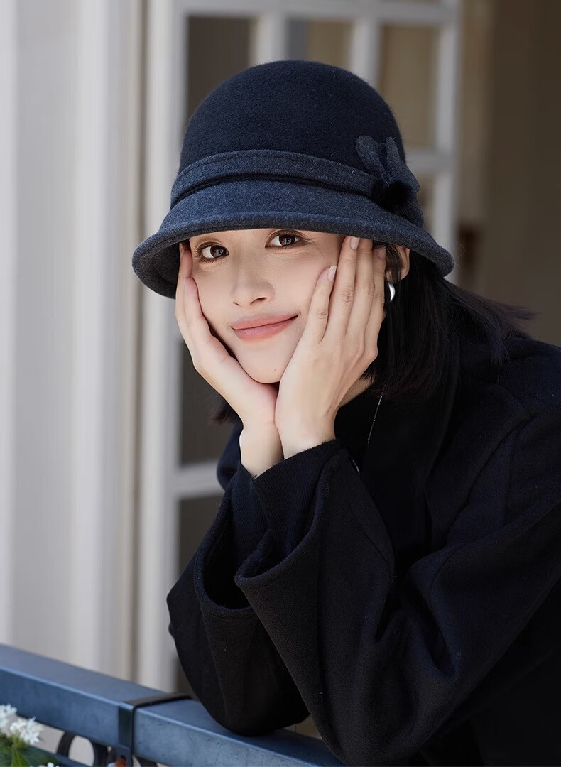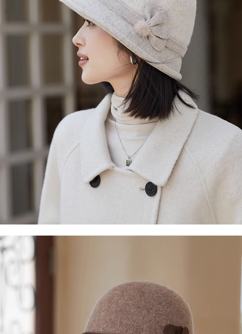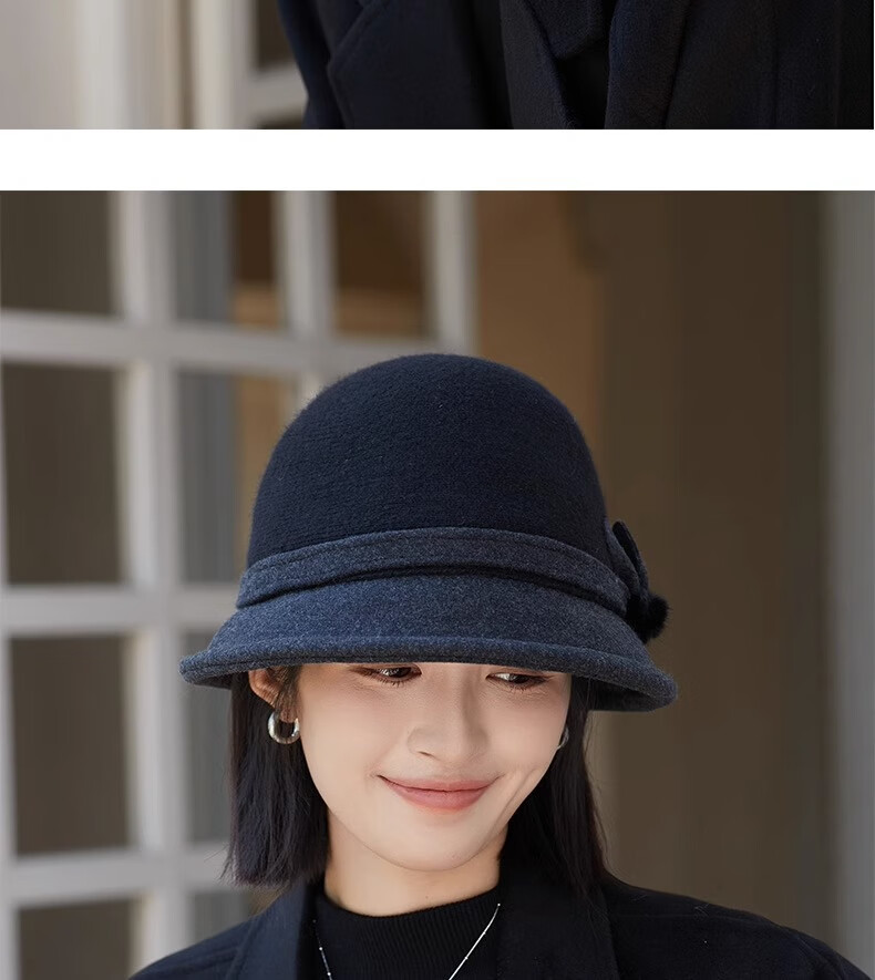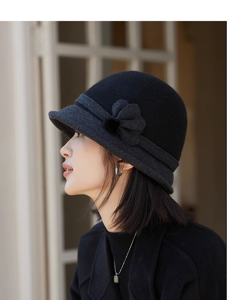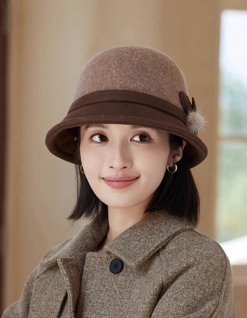 Hengyuanxiang woolen fisherman hat for women in autumn and winter, Korean version, versatile, warm and elegant for middle-aged and elderly people, British retro basin hat, burgundy, one size fits all
