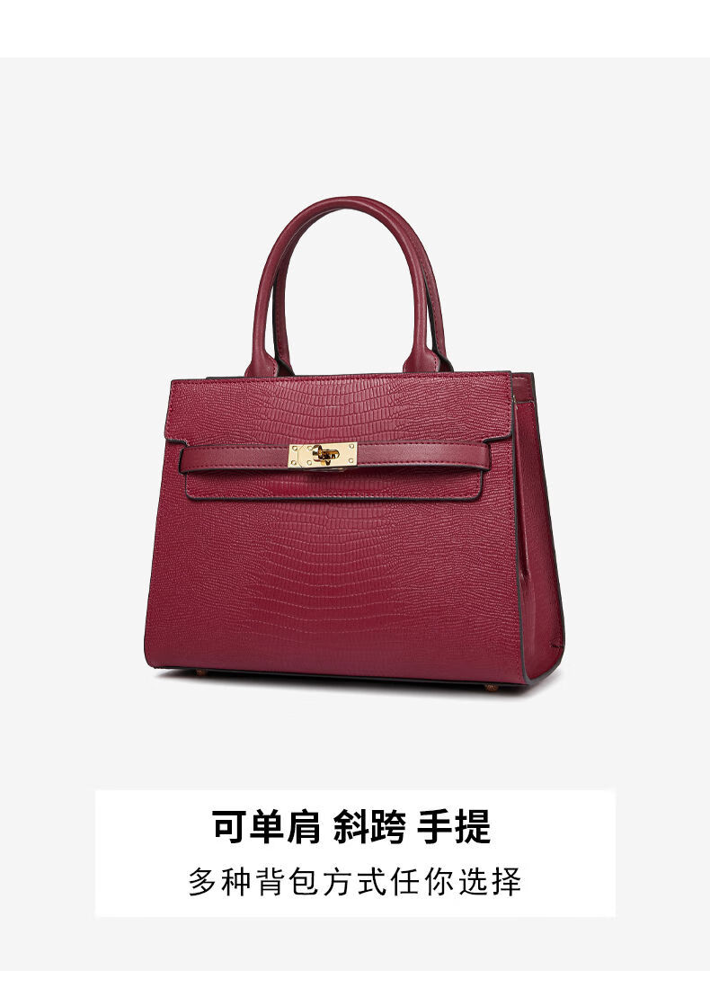 Yusenyi bag women's large capacity 2024 new light luxury brand commuter wedding bag wedding cowhide middle-aged mother handbag women dark red small size