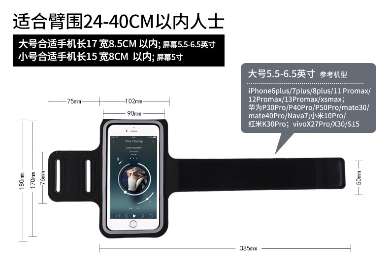 OEING running mobile phone bag arm bag arm wrist men's and women's special equipment mobile phone bag fitness sports mobile phone arm sleeve classic black 5-inch small size universal