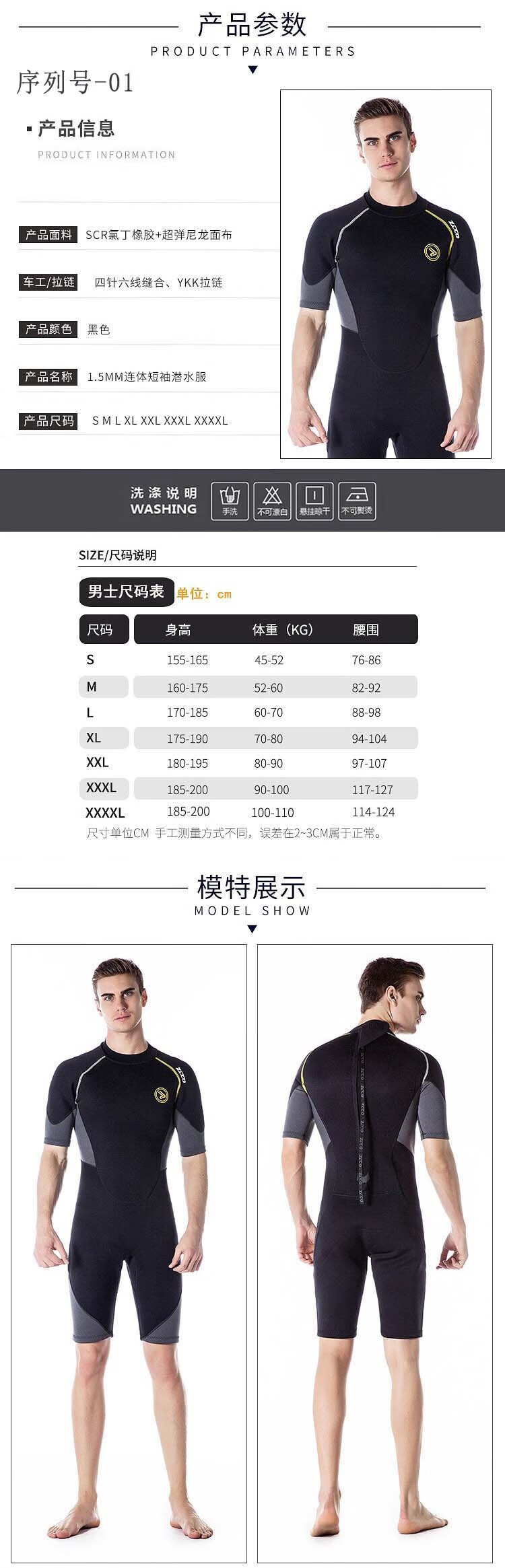 Chuangjingyi selects high-end light luxury 153mm one-piece wetsuit for men, warm swimsuit, women's long-sleeved cold-proof snorkeling wetsuit, 1 men's short style 1.5mm black gray back zipper S S