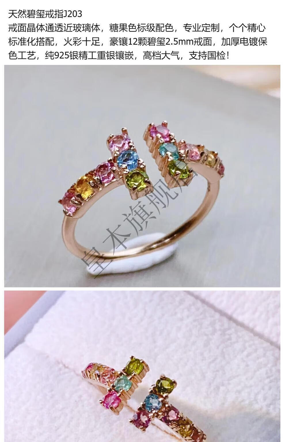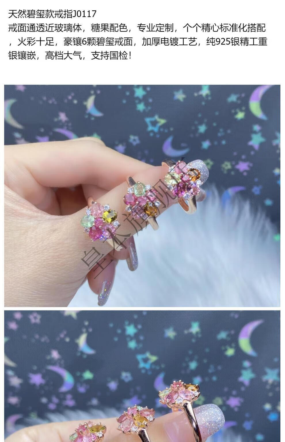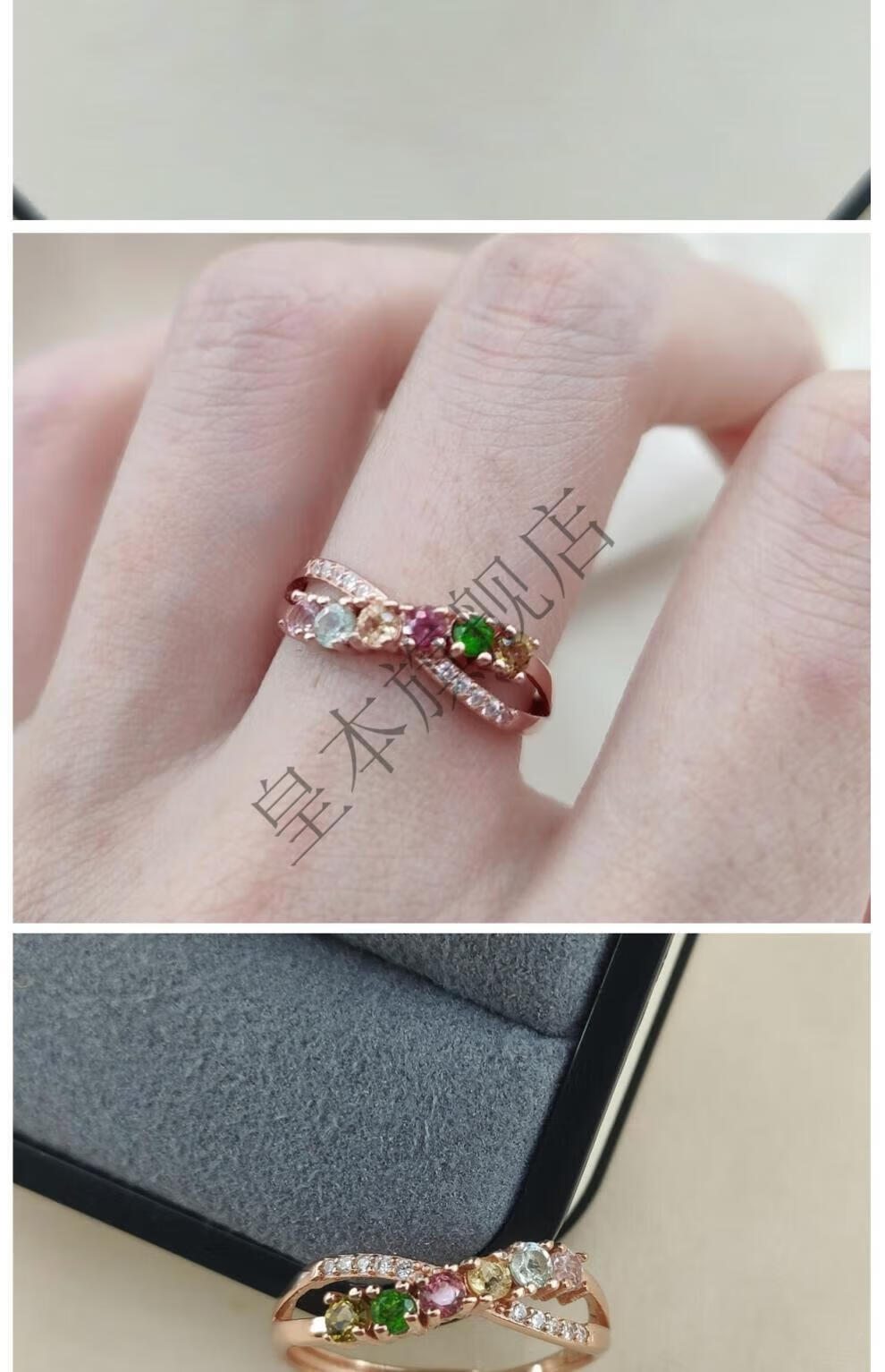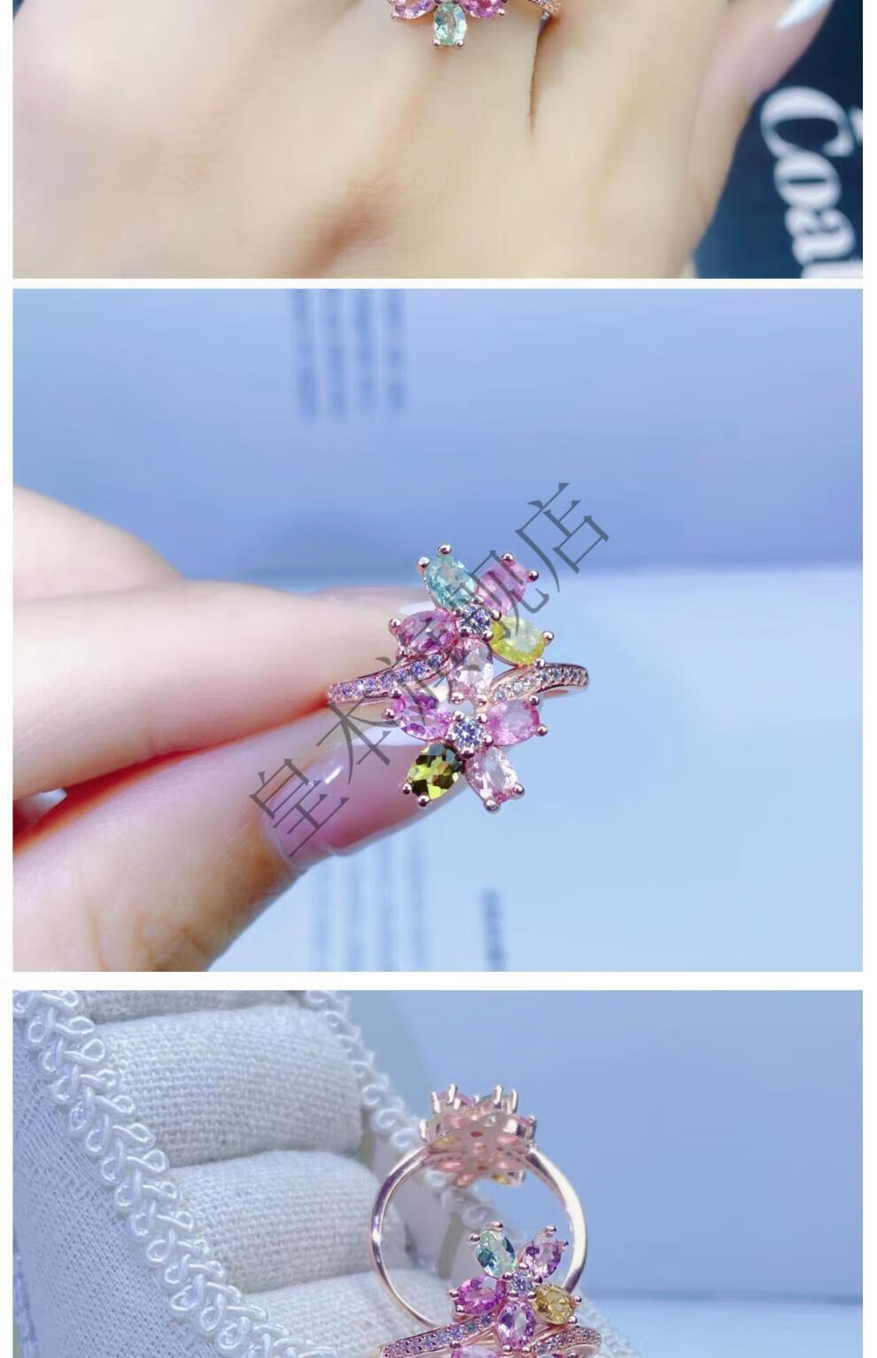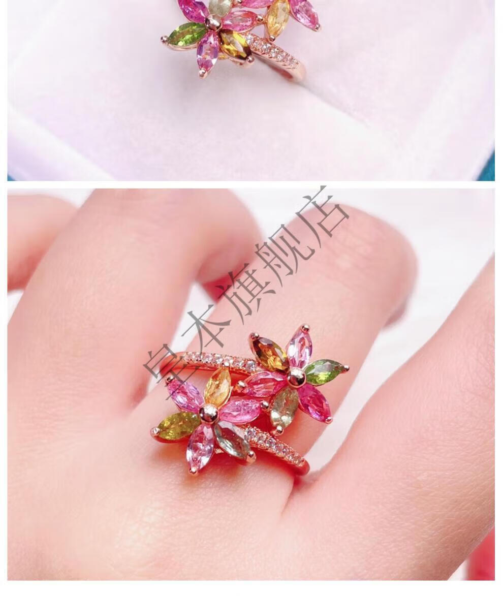 Duyouqin Tourmaline Ring Row Ring Women Candy Rainbow Color S925 Silver Inlaid Gemstone Hand Jewelry Gift Opening Adjustable Tanzanite J274