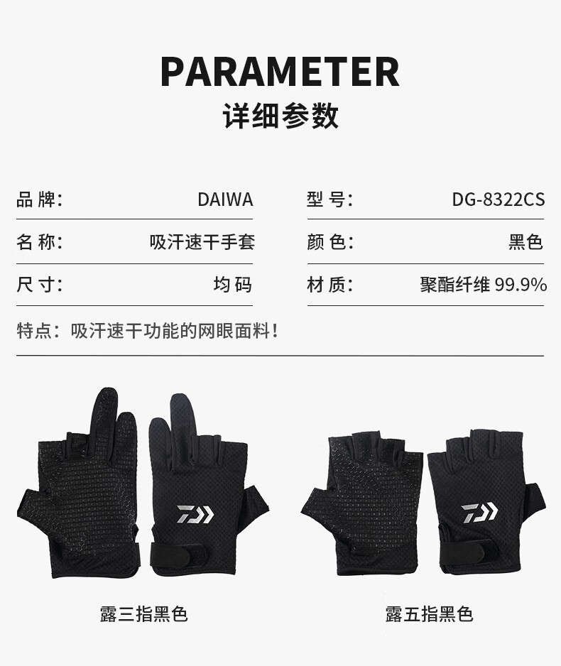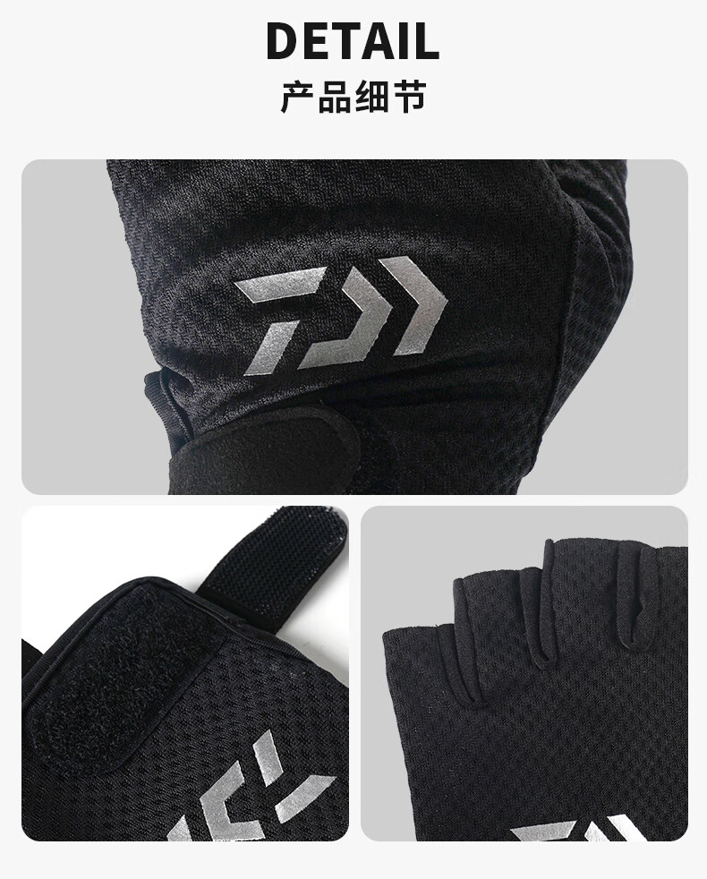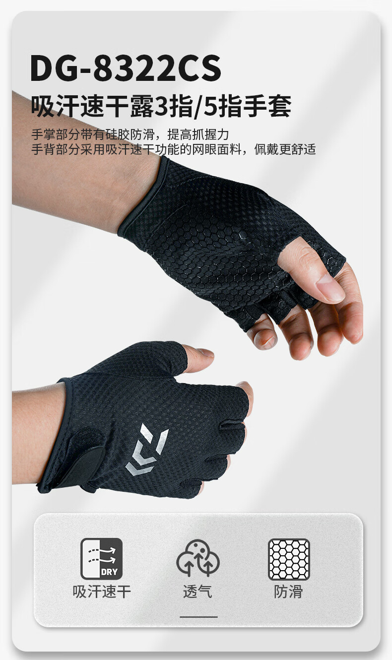 Zailou's new lure gloves, sweat-absorbent and quick-drying fishing gloves, mesh breathable, 35-finger sports gloves, one size fits all, 3-finger black, exposed