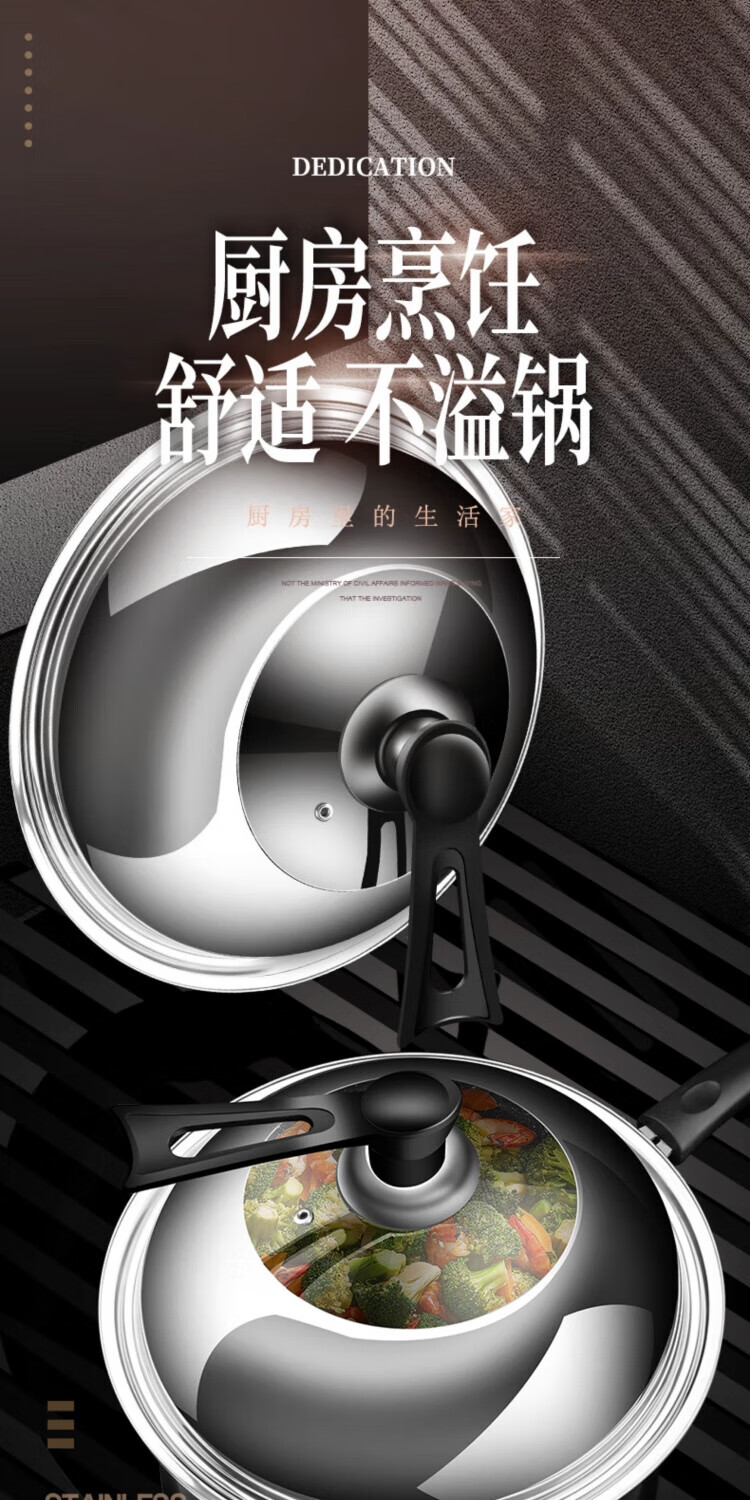 JCZS German pot lid 304 stainless steel household stand-up lid for high-temperature cooking 30-32-34-40cm universal 42cm pot lid stand-up suitable for inner diameter 39.5-41.5cm