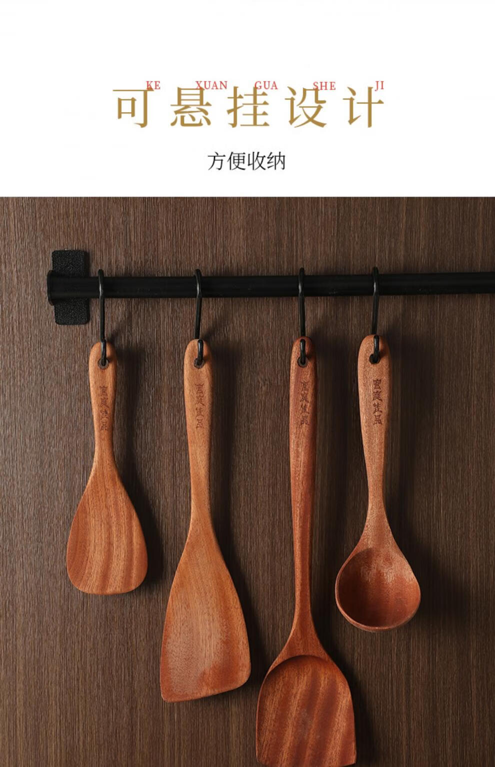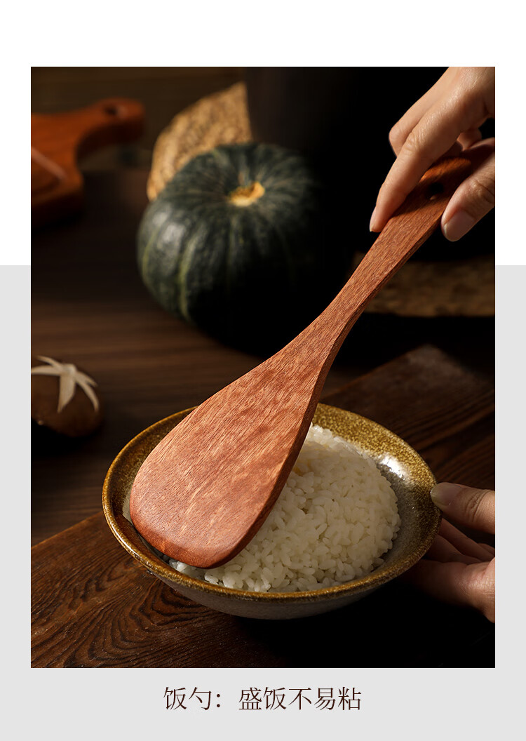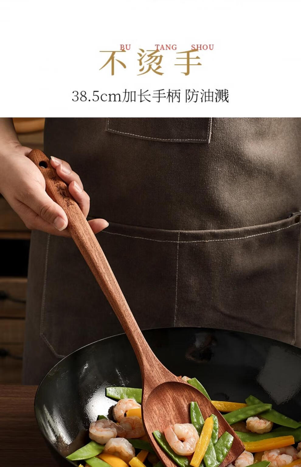 Ebony curved handle wooden spatula, non-stick special cooking spatula that does not damage the pot, extended food grade paint-free wooden spatula, ebony curved handle spatula + rice spoon