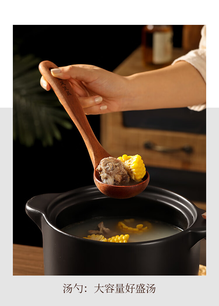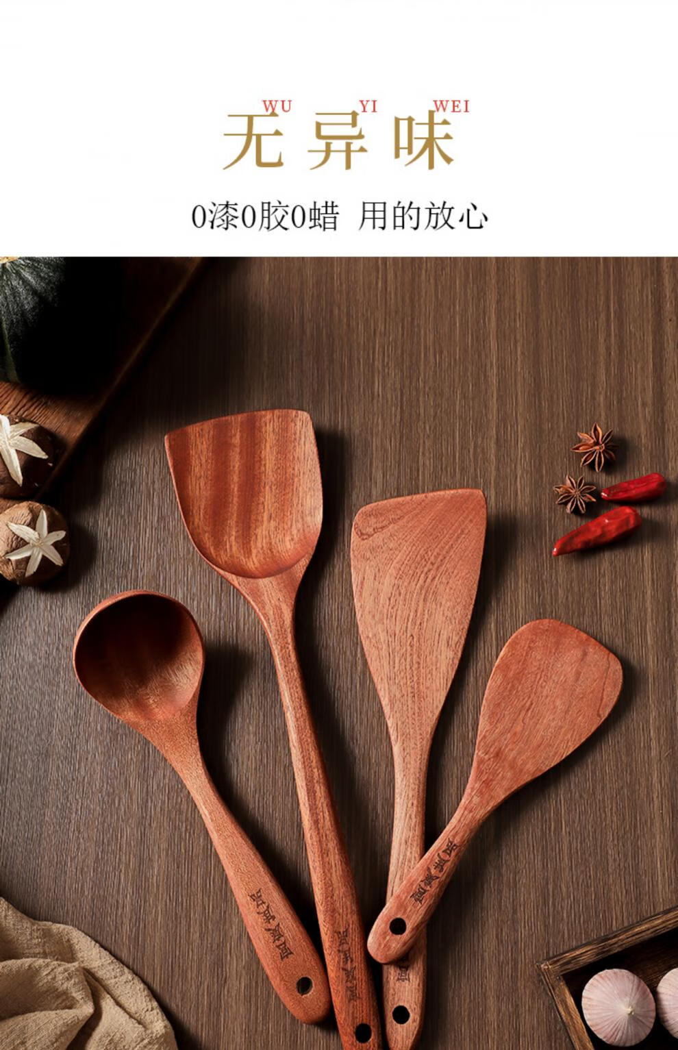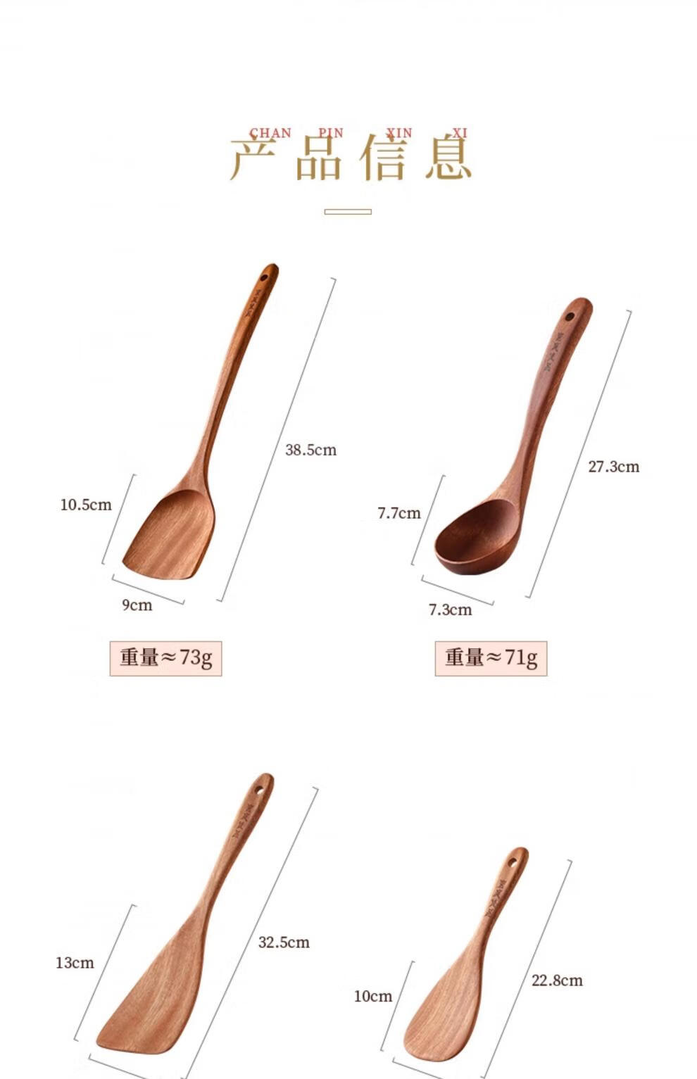 Ebony curved handle wooden spatula, non-stick special cooking spatula that does not damage the pot, extended food grade paint-free wooden spatula, ebony curved handle spatula + rice spoon