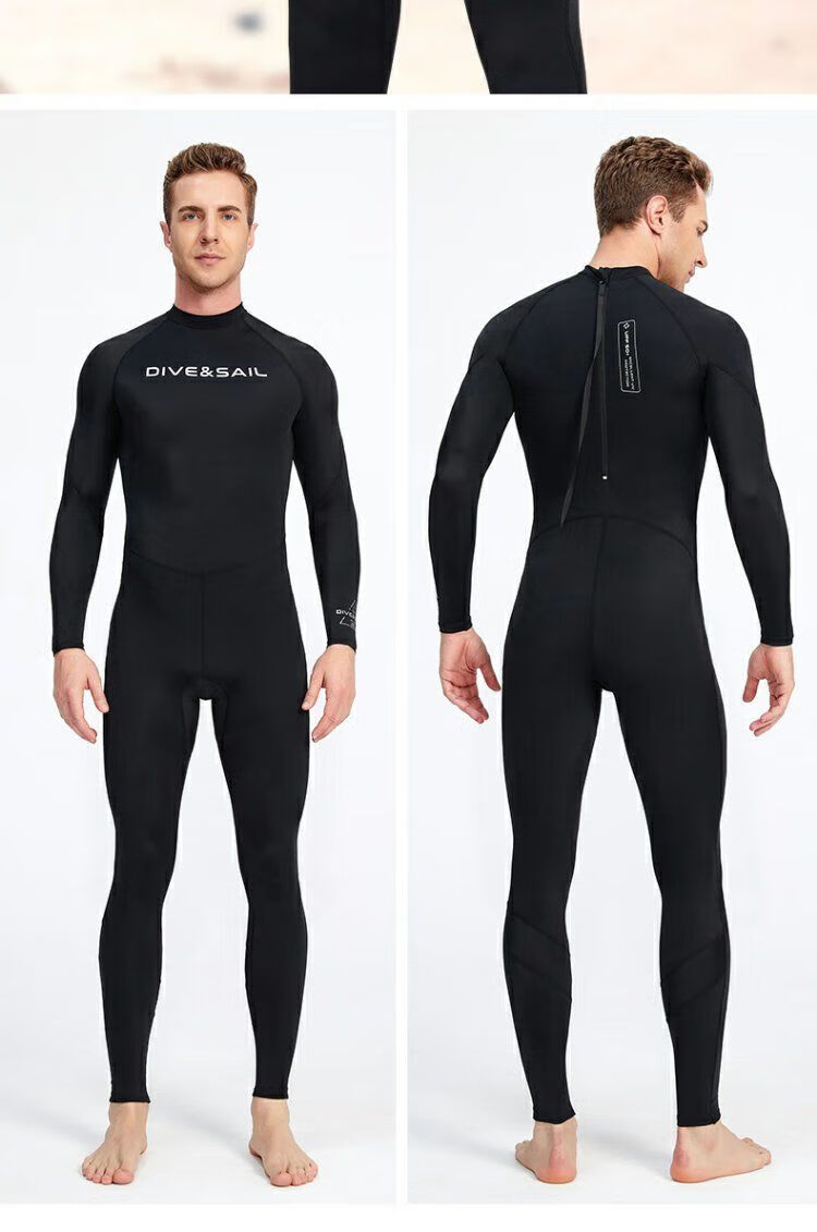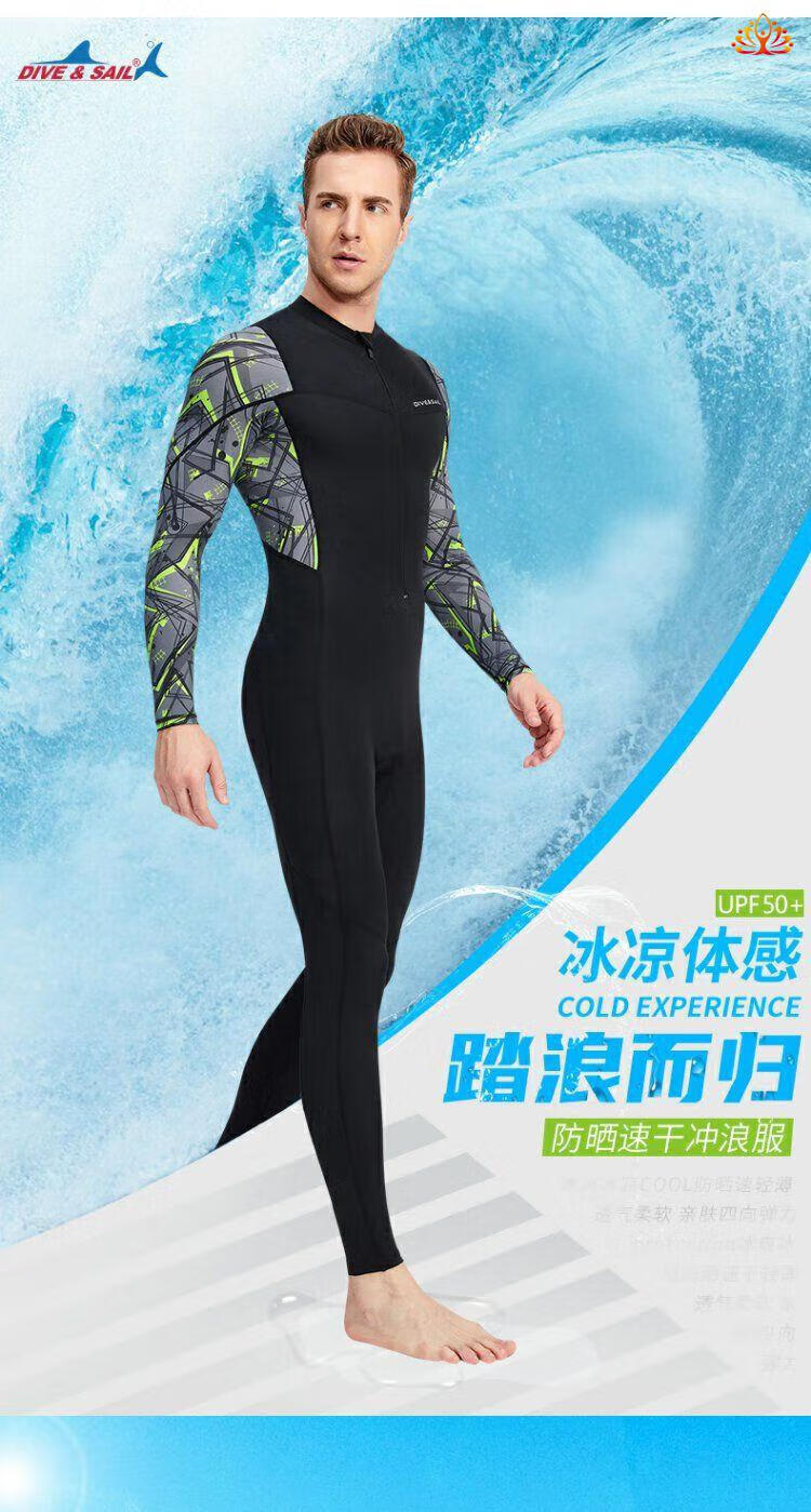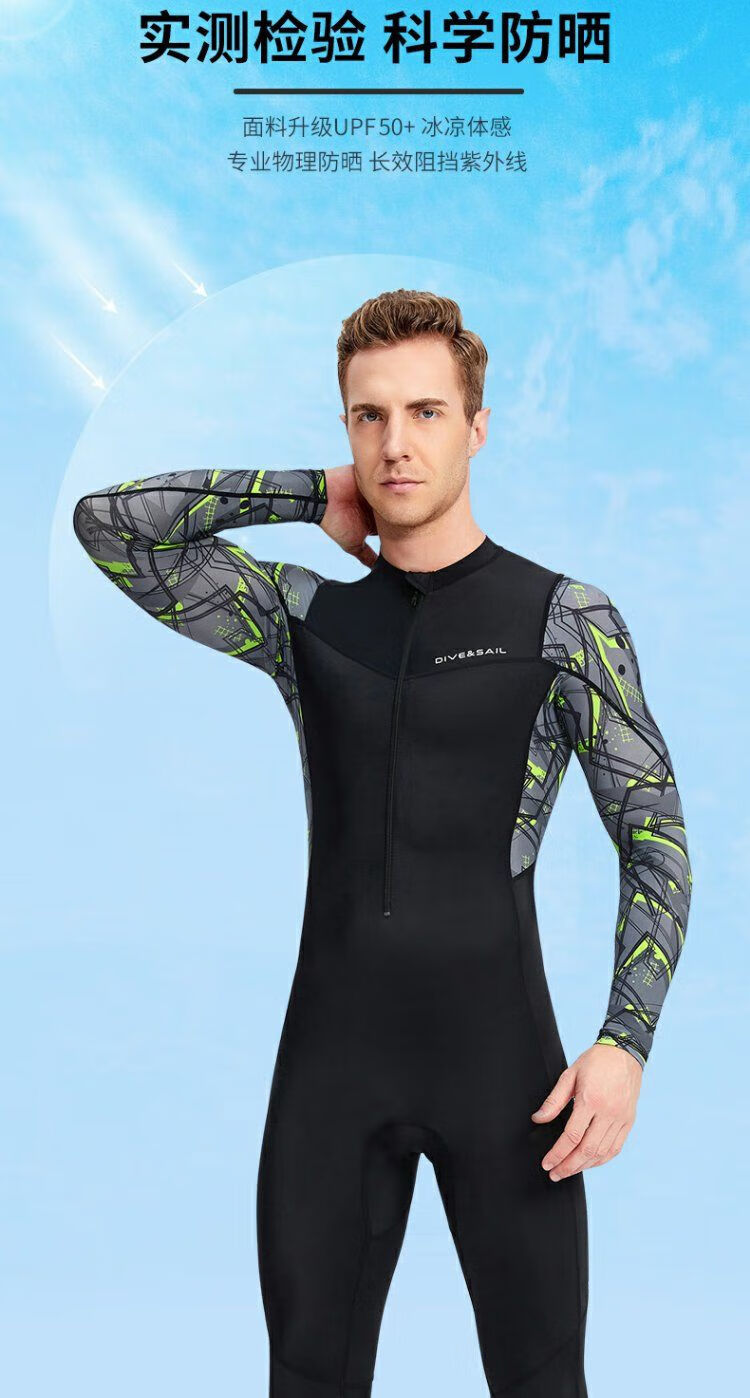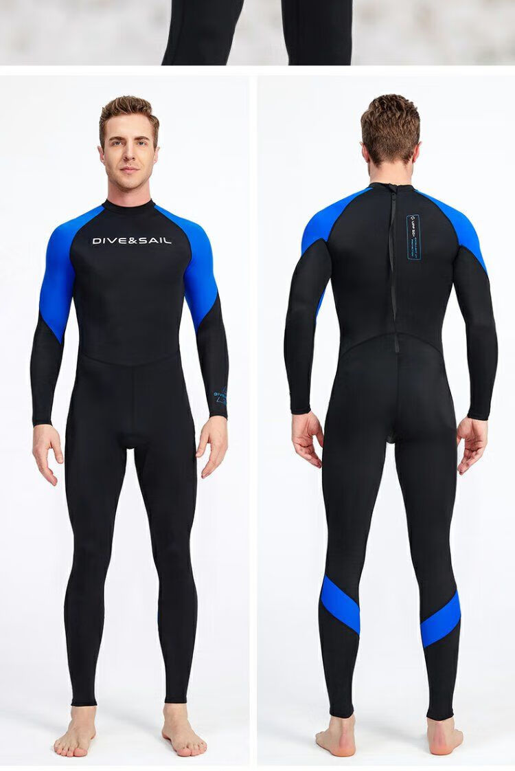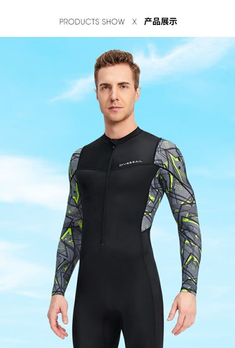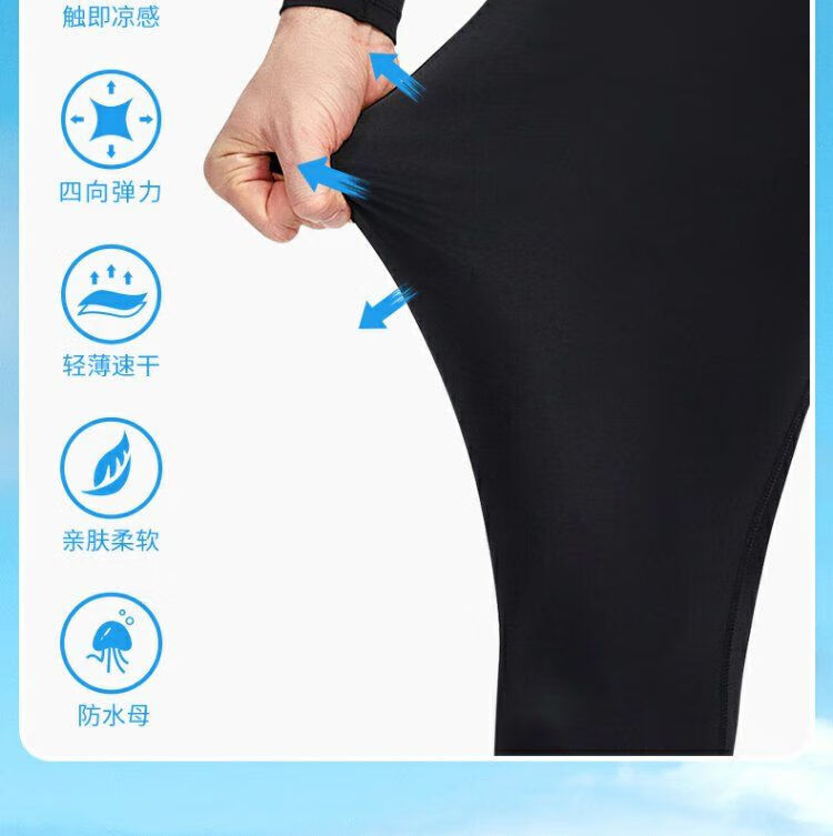 Xianxi 2024 new model motorboat quick-drying wetsuit men's one-piece swimsuit ice sunscreen quick-drying long-sleeved motorboat black blue sleeves 3XL 3XL