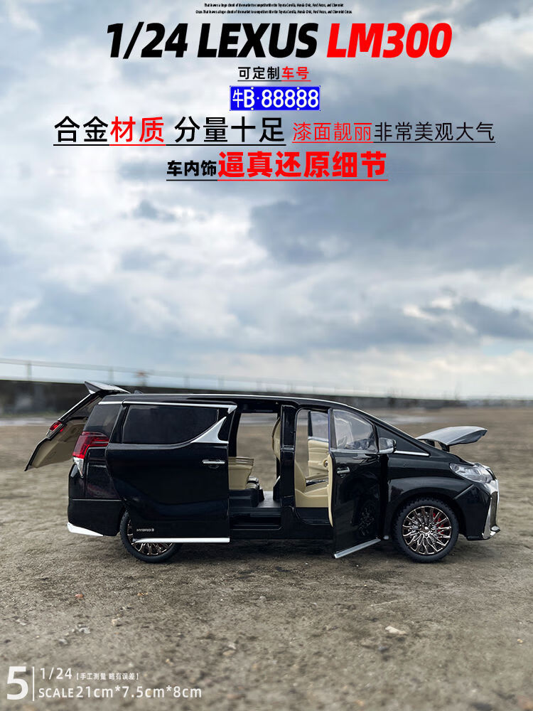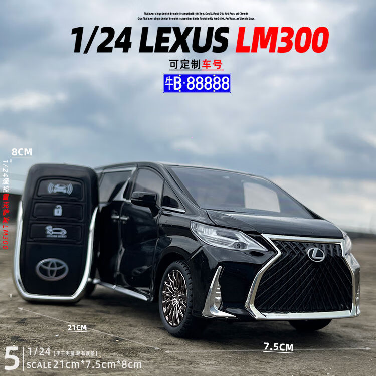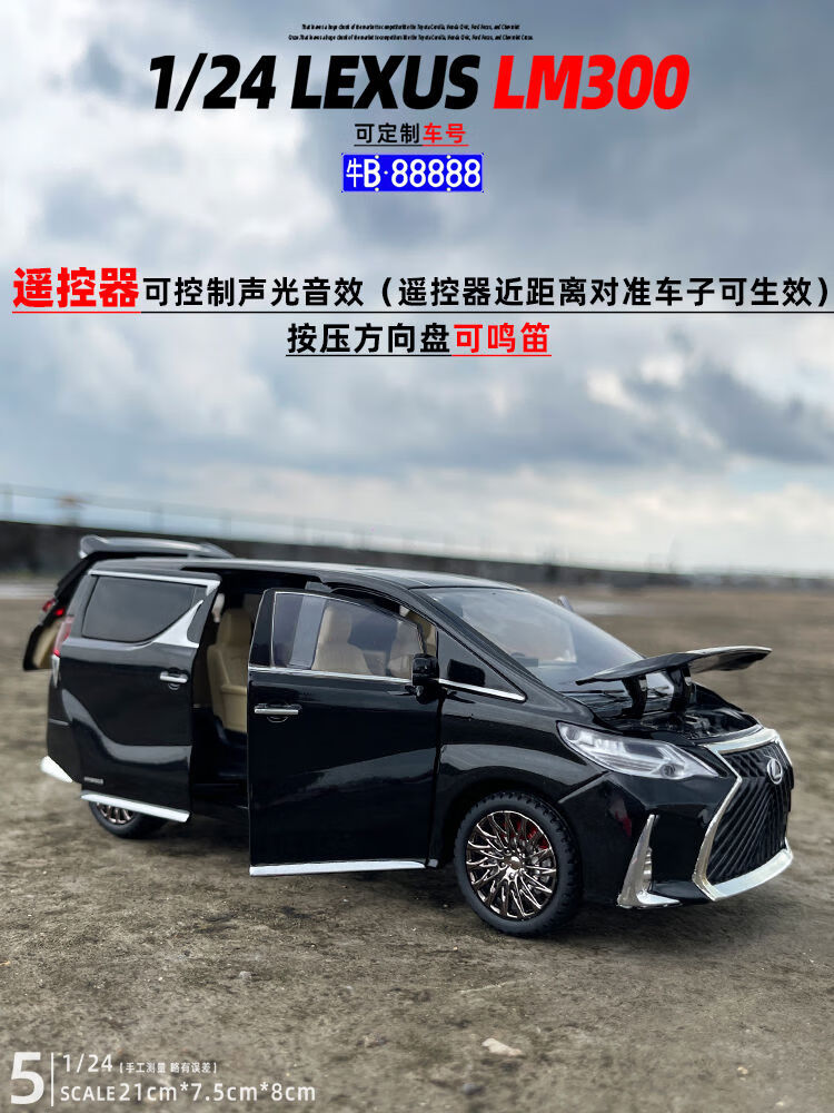 124 remote control Toyota Lexus LM300 alloy car model sound and light pull back children's toy gift Lexus LM300 remote control version liquid white off-road vehicle