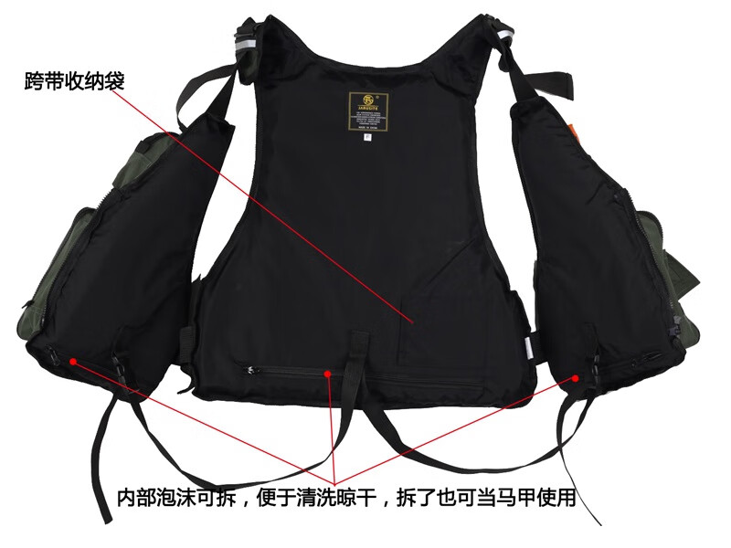 Fishing life jacket, fishing clothing, large buoyancy, portable Luaji fishing, sea fishing, one-size-fits-all, multi-function, one-size-fits-all, black